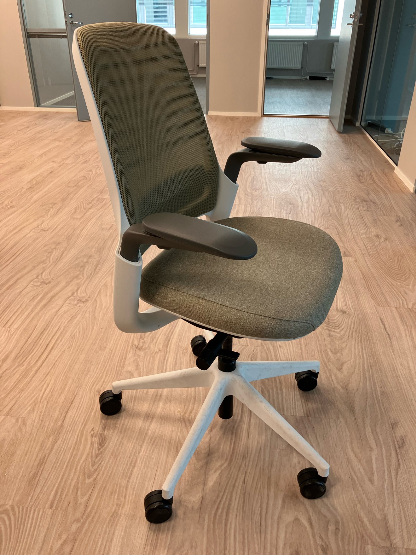 Back: 3D Microknit, Melt beige membrane & lumbar support. Base finish: Seagull 6053