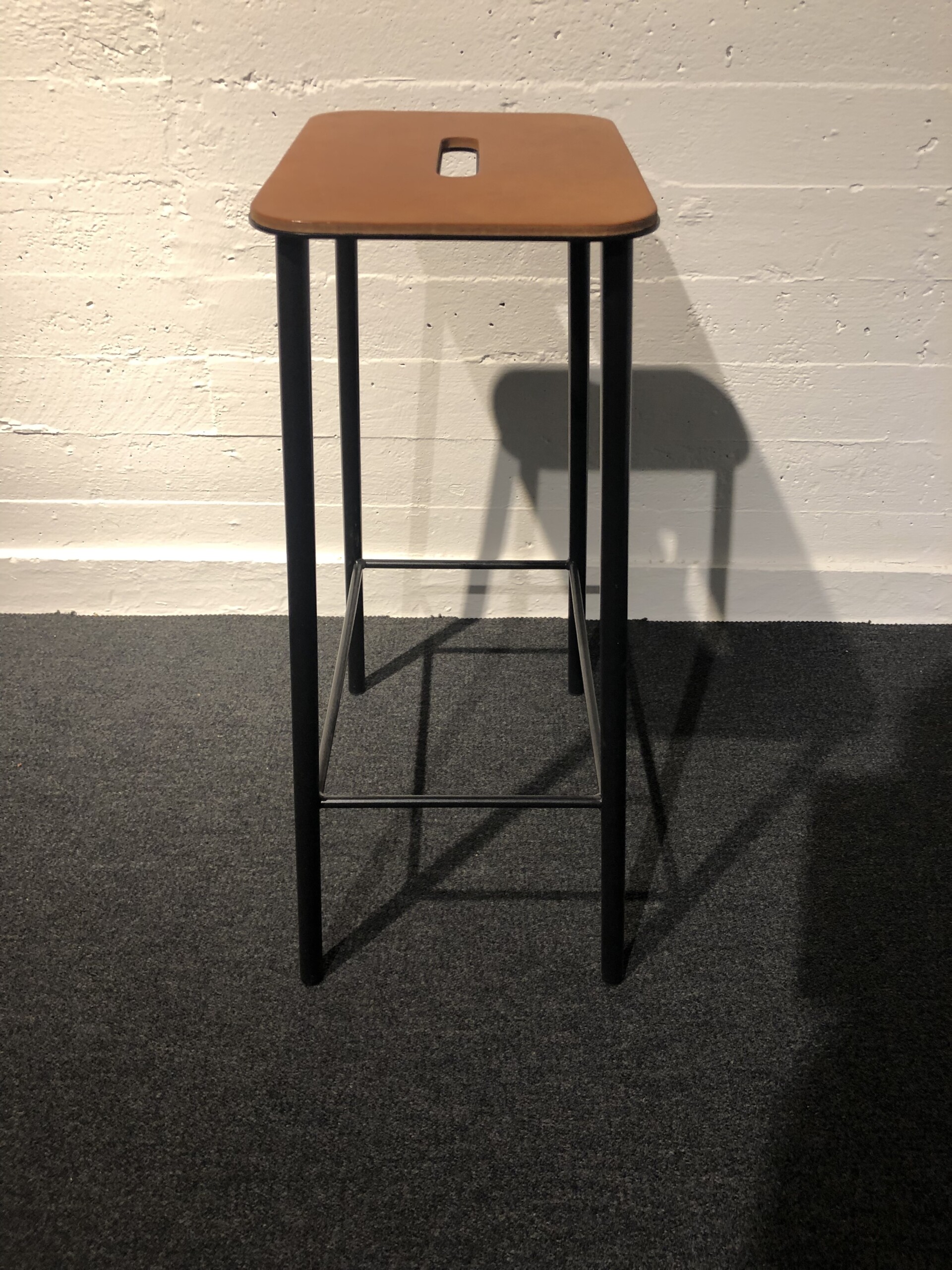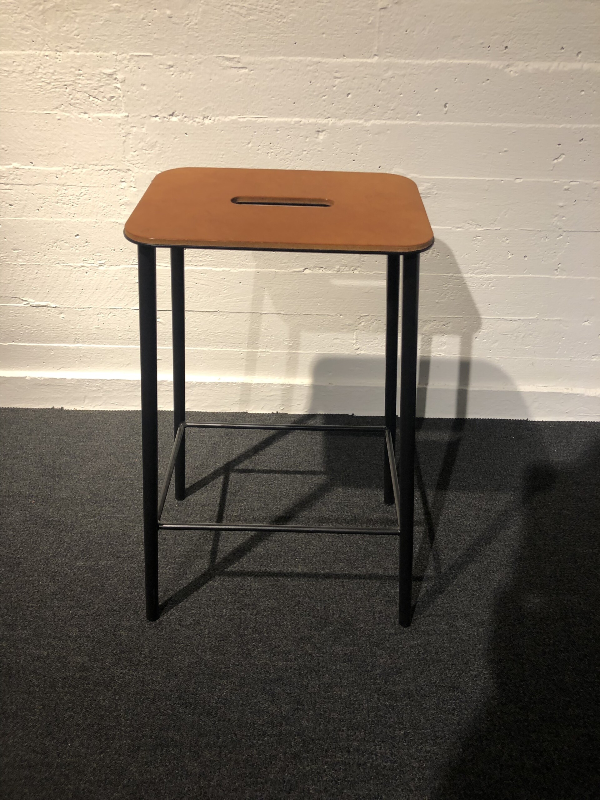 Sæde i læder (brun). 4-bensstel i metal (sort).