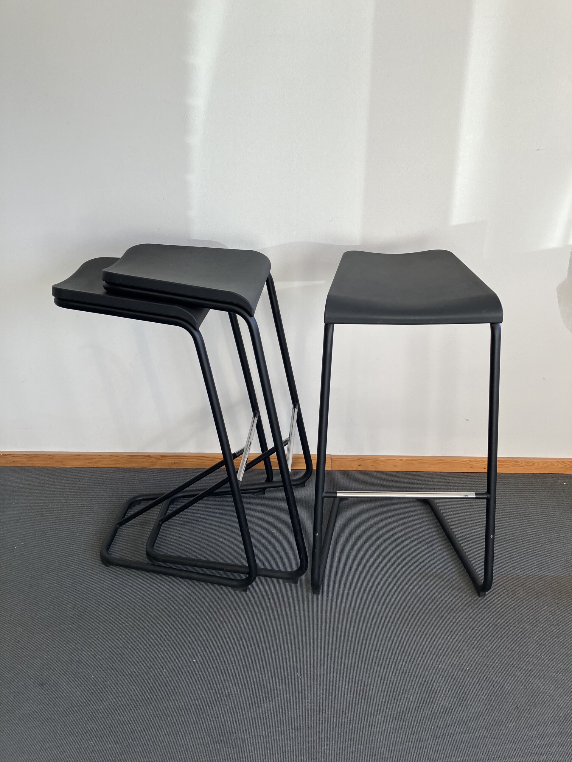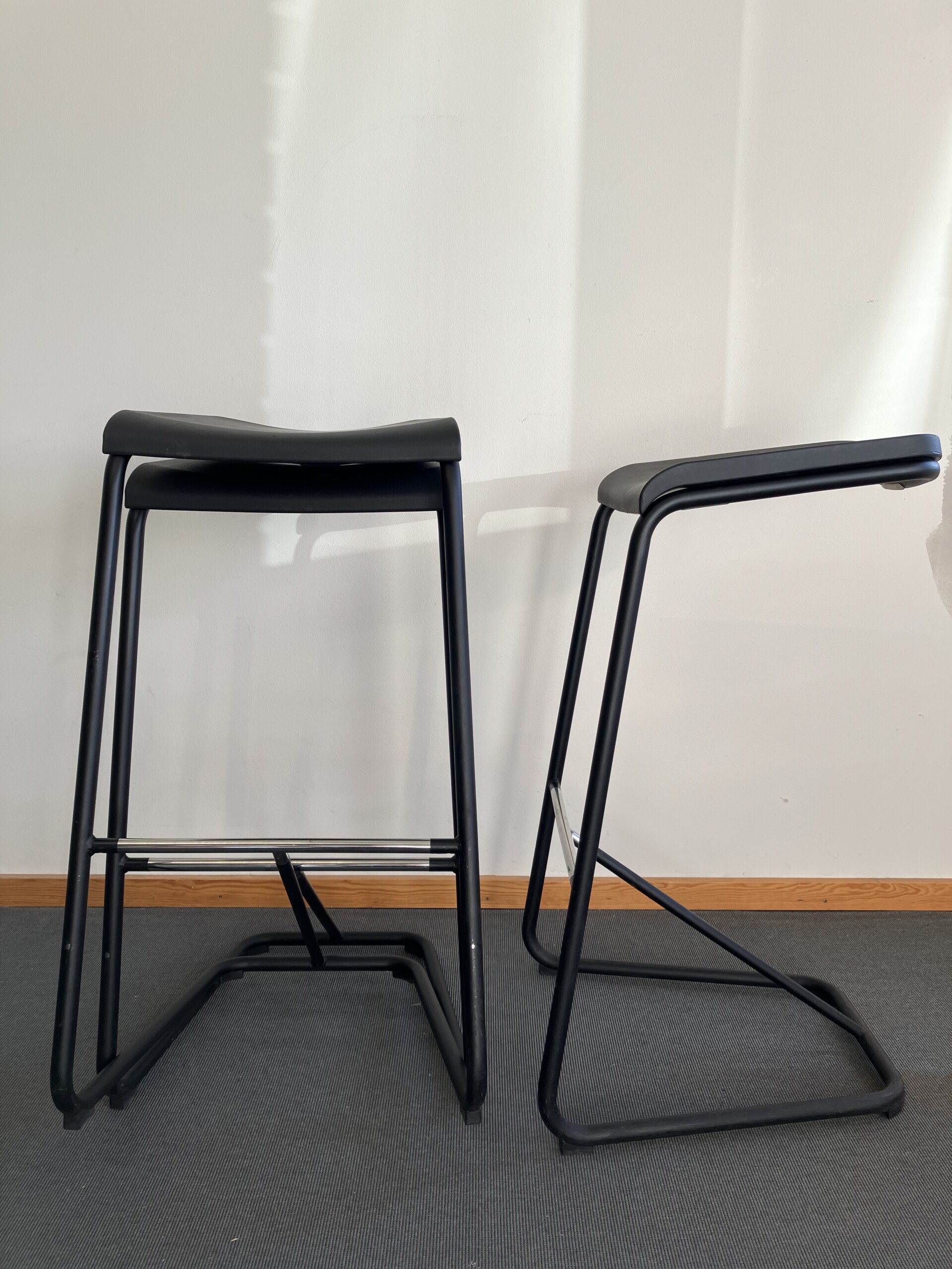 Sæde i plast (sort). Medestel i metal (sort).