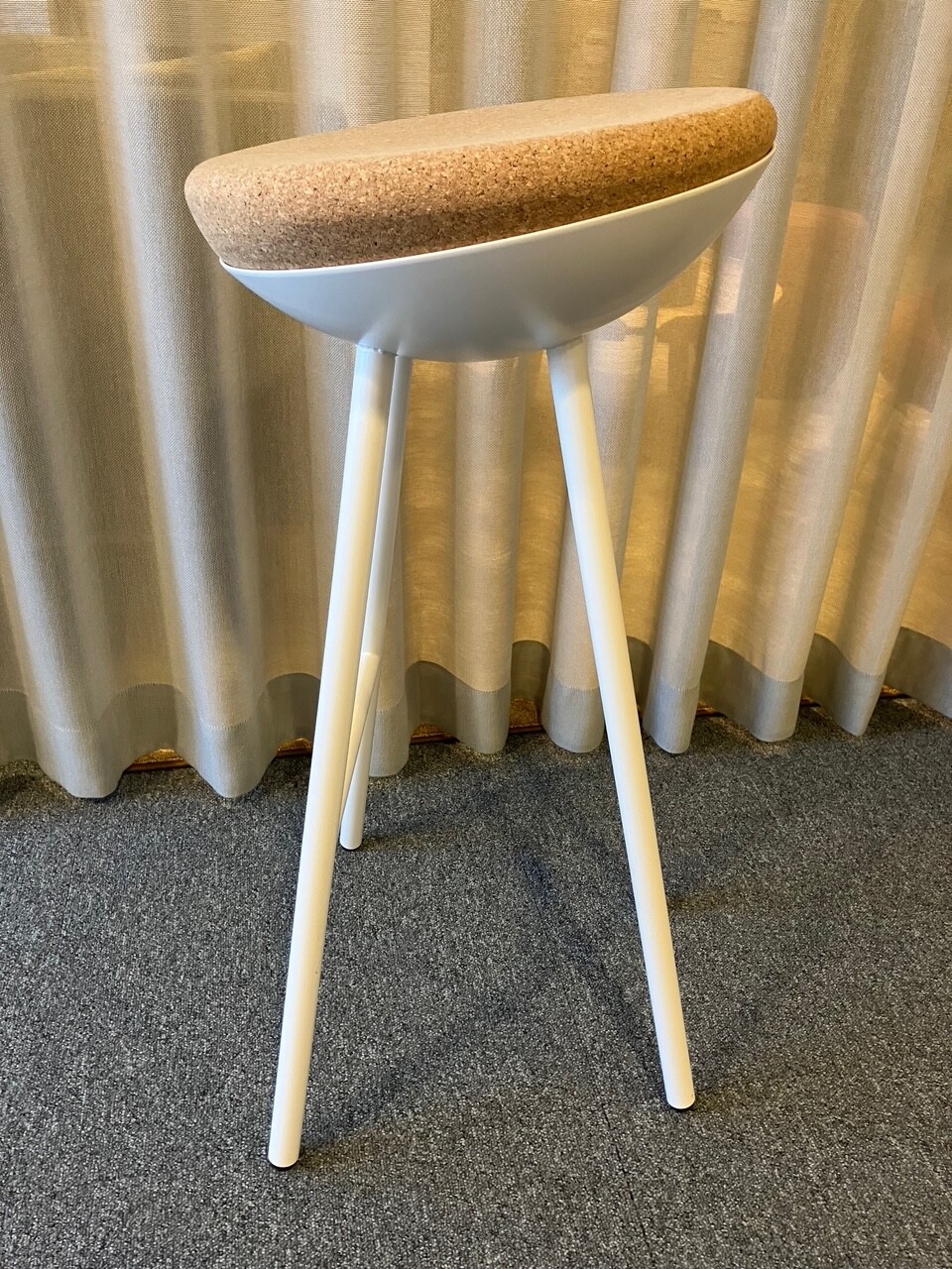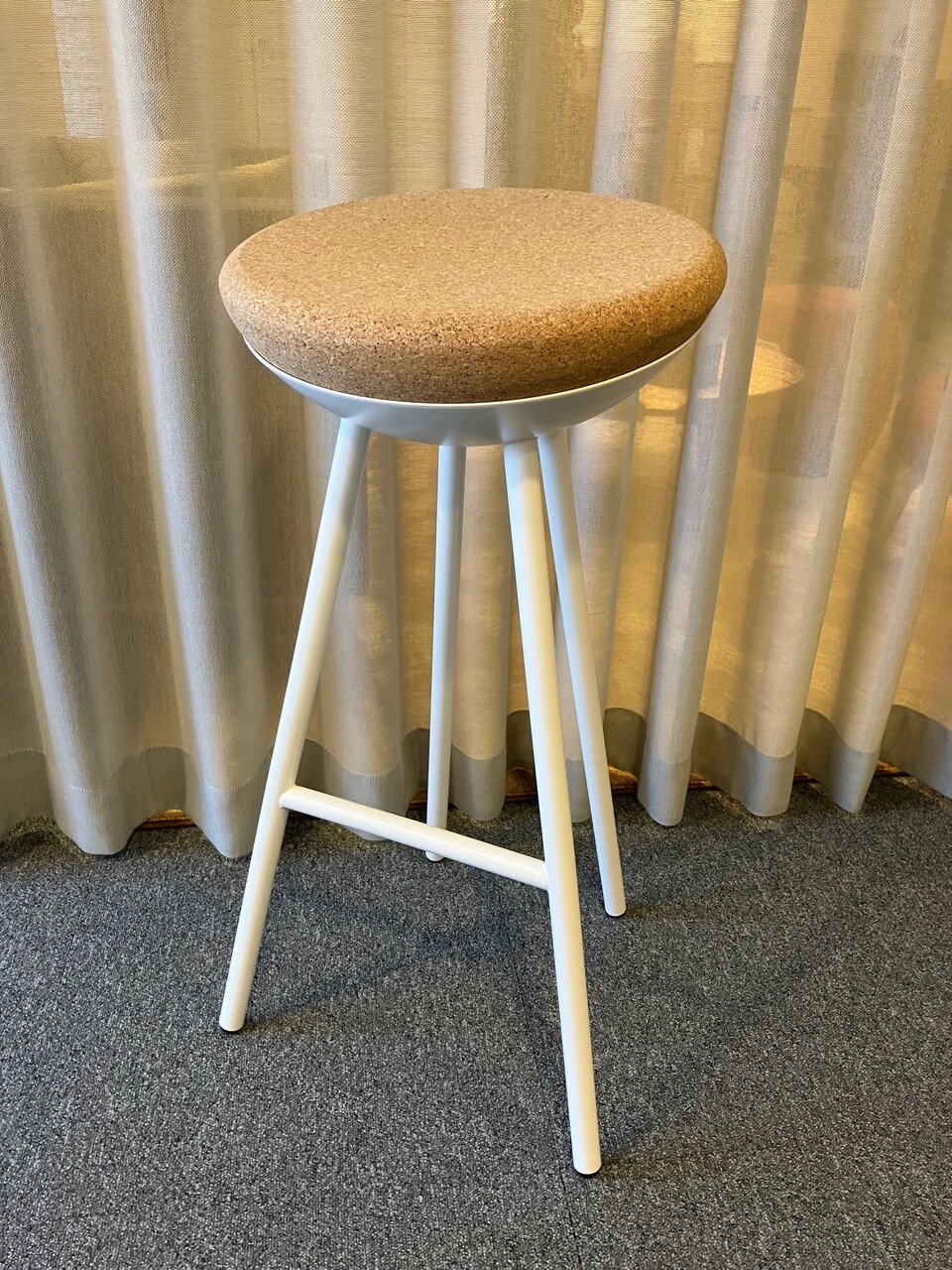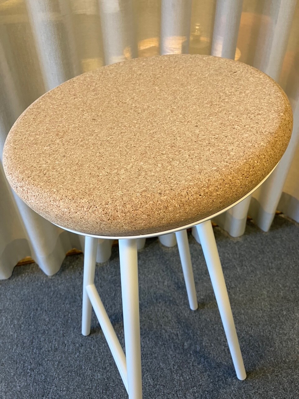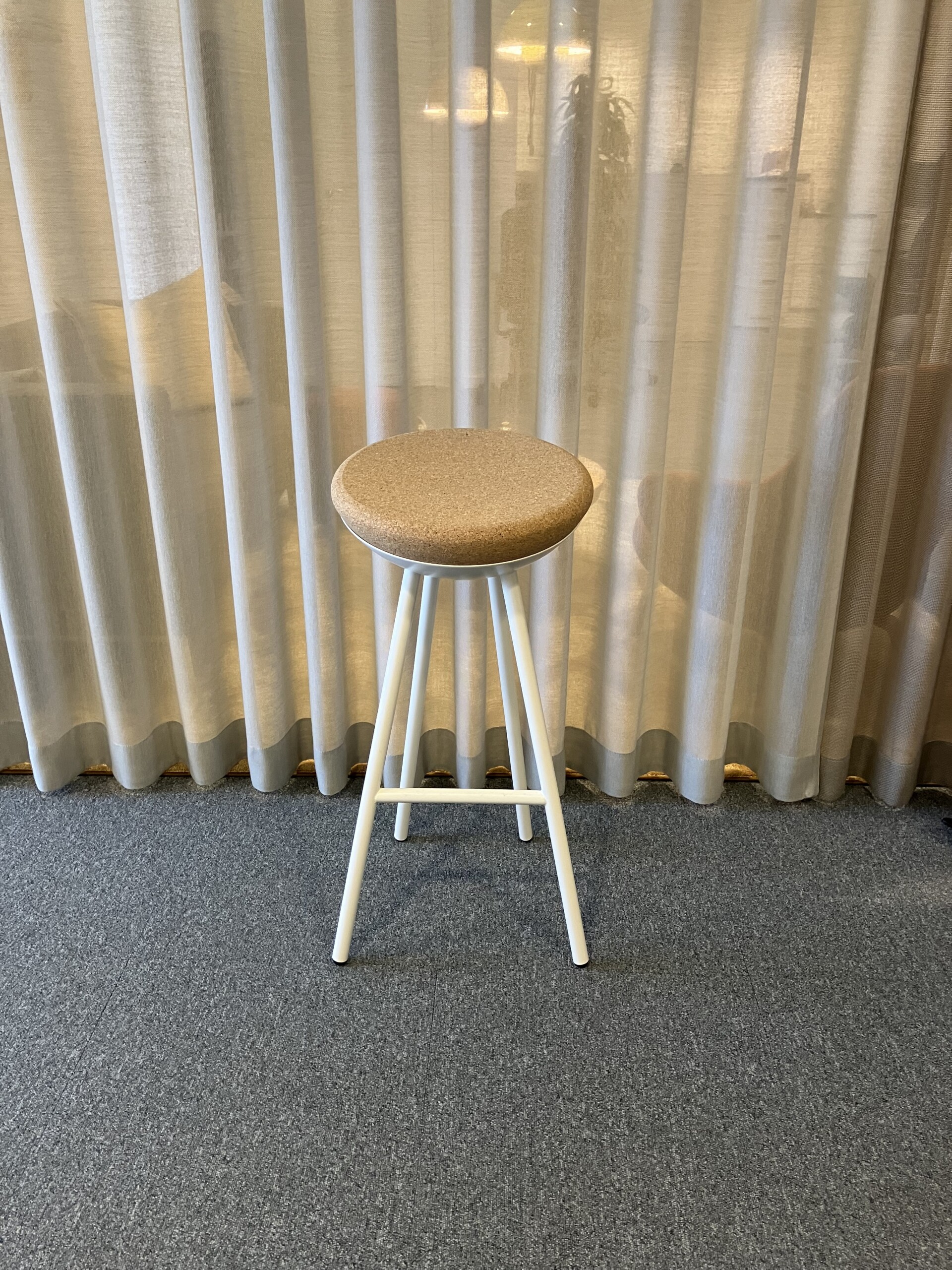 Sæde i kork. 4-bensstel i metal (hvid).