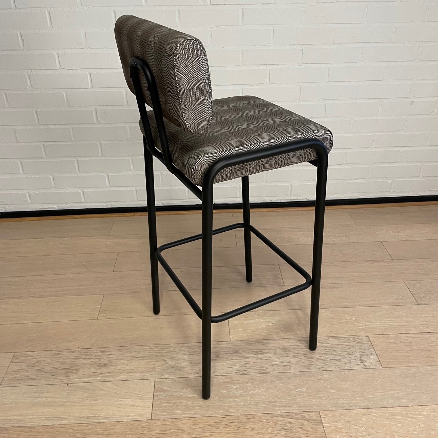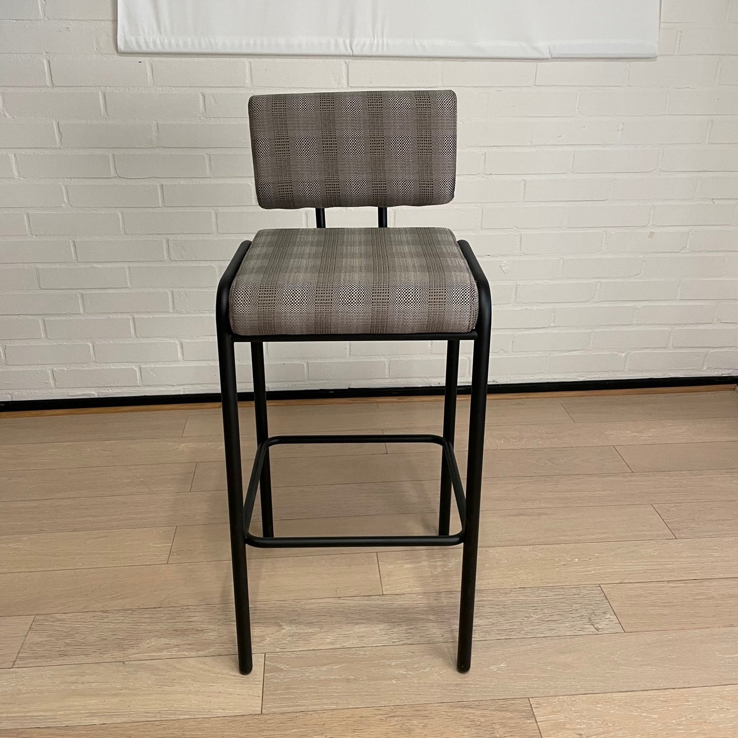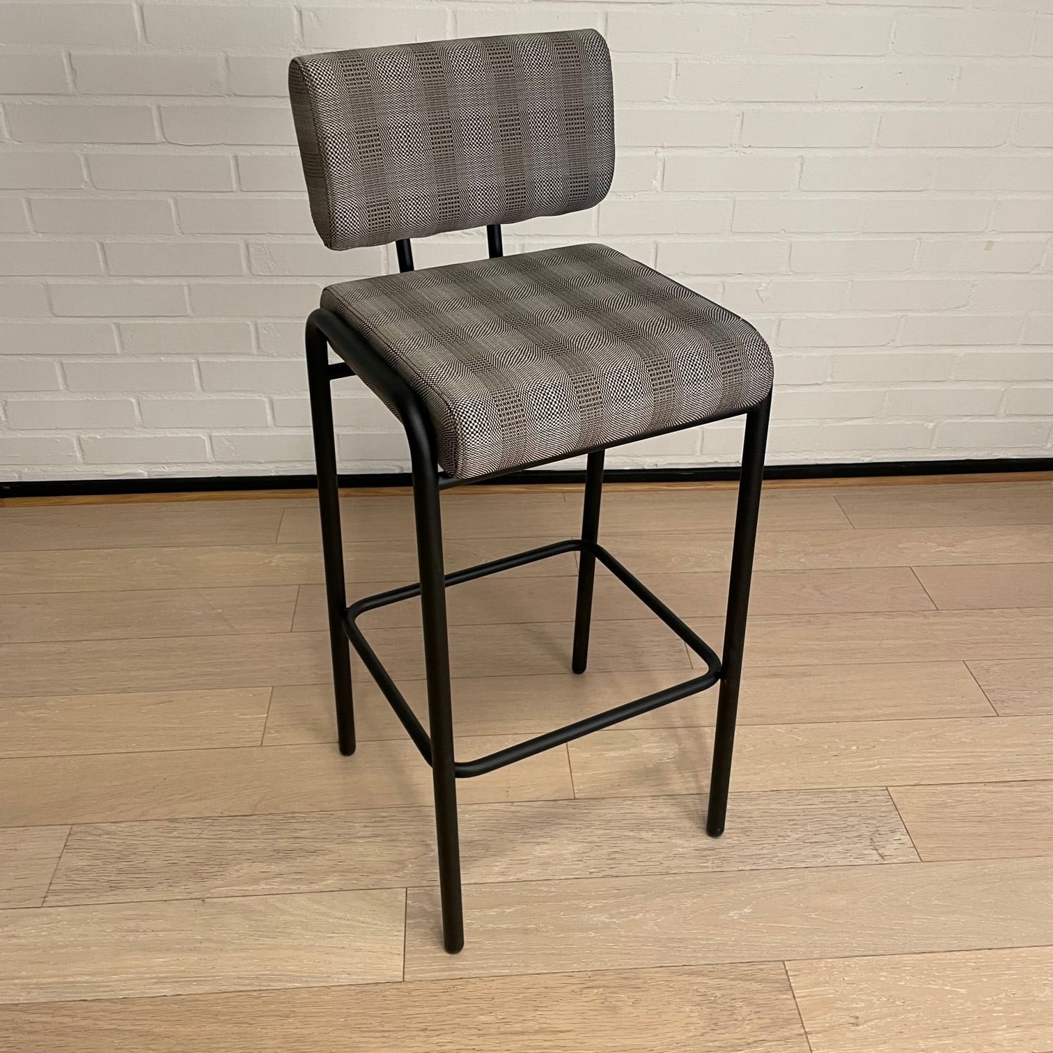 Sæde og ryg i stof. 4-bensstel i metal (sort).