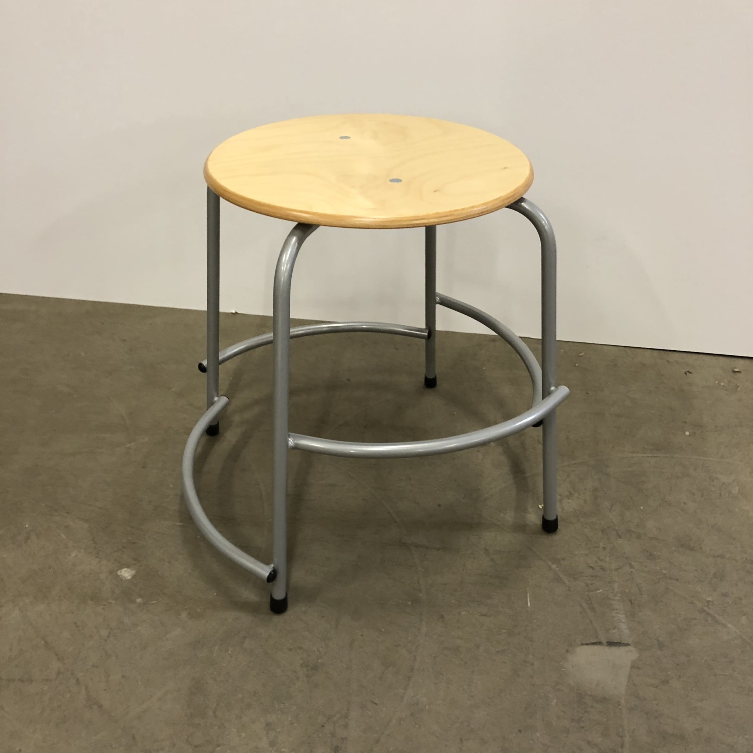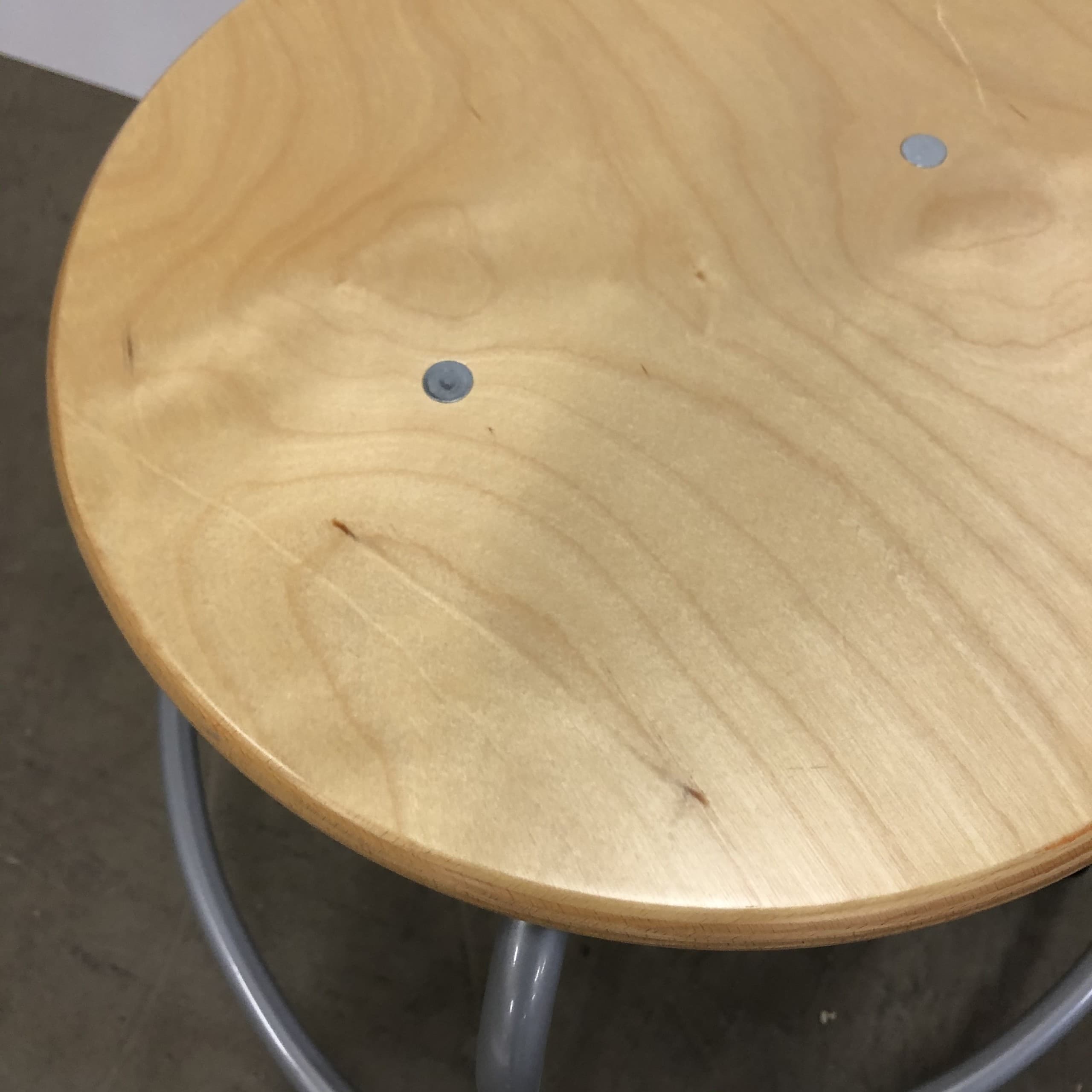 Sæde i træ (birk). 4-bensstel i metal (sølv).