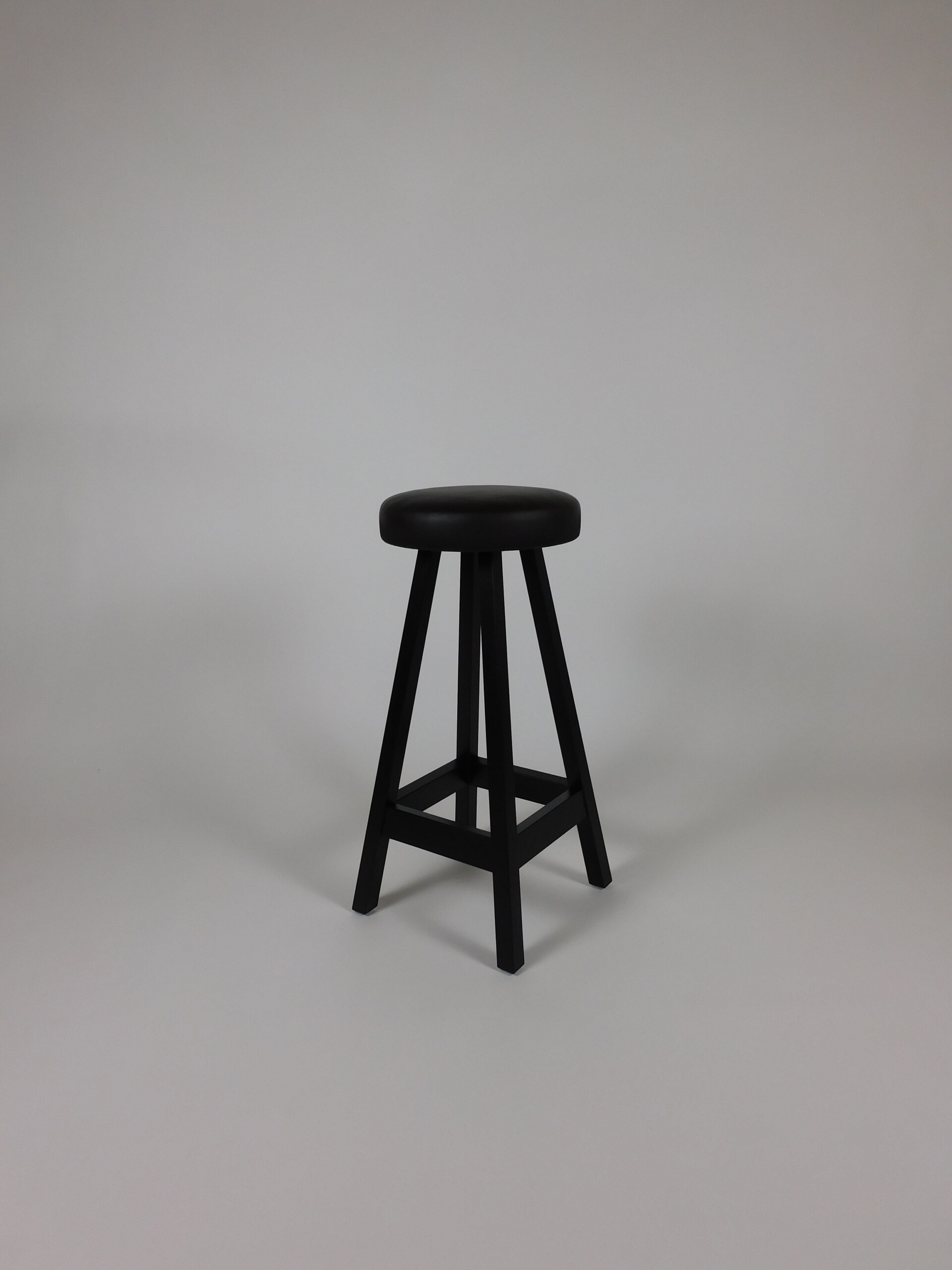 Sæde i læder (sort). 4-bensstel i træ (ask).