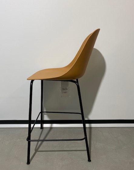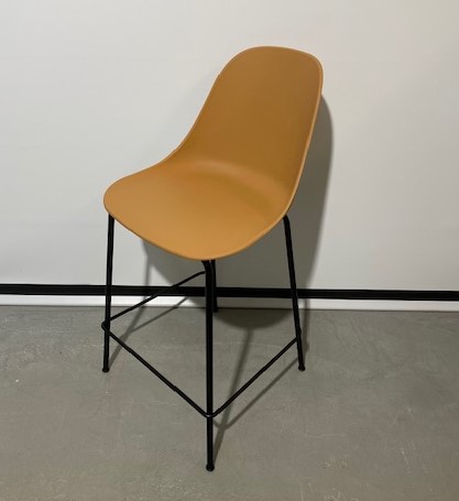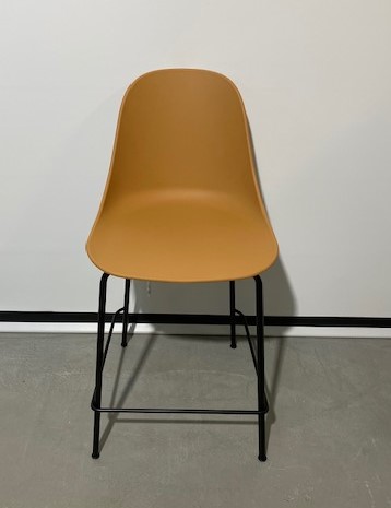 Sæde og ryg i plast (brun). 4-bensstel i metal (sort).