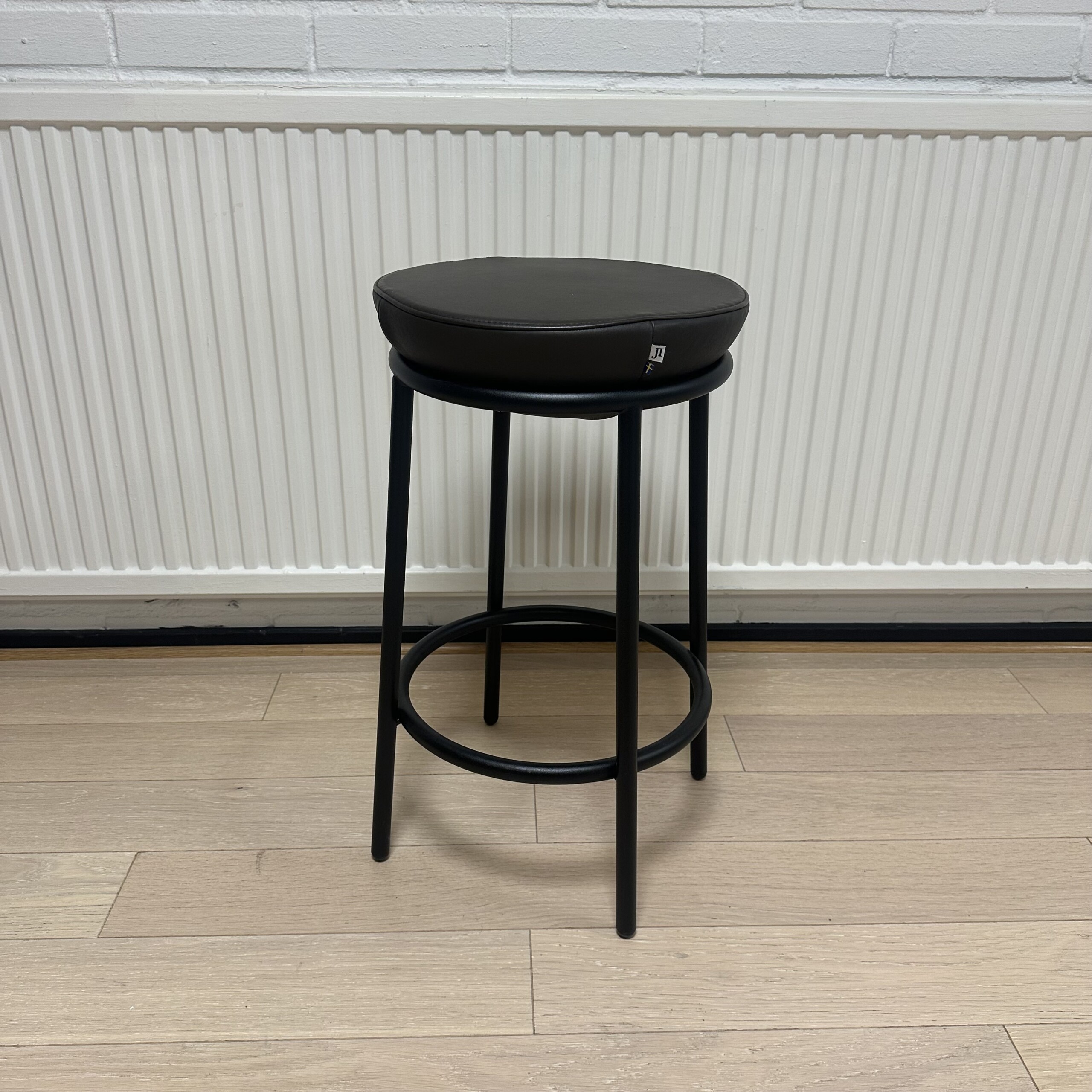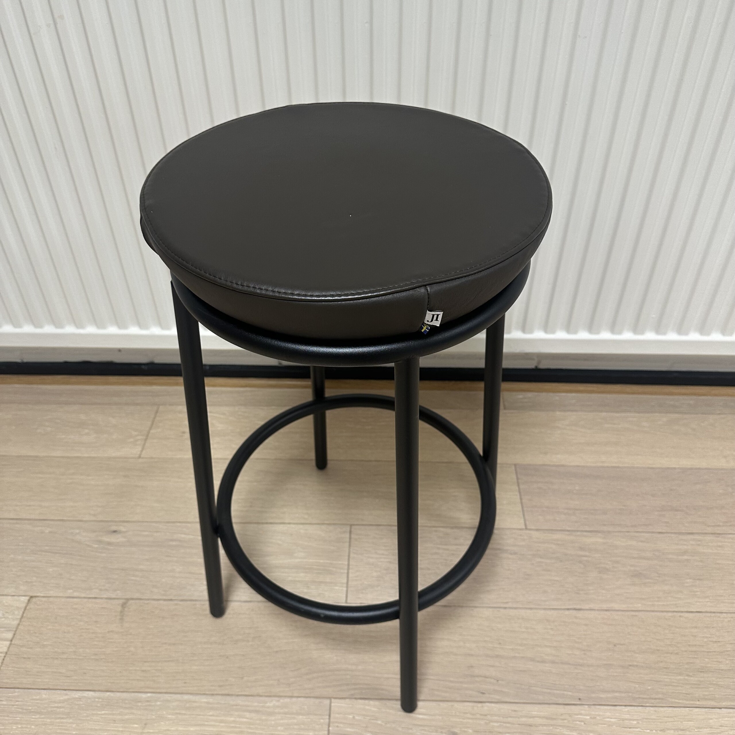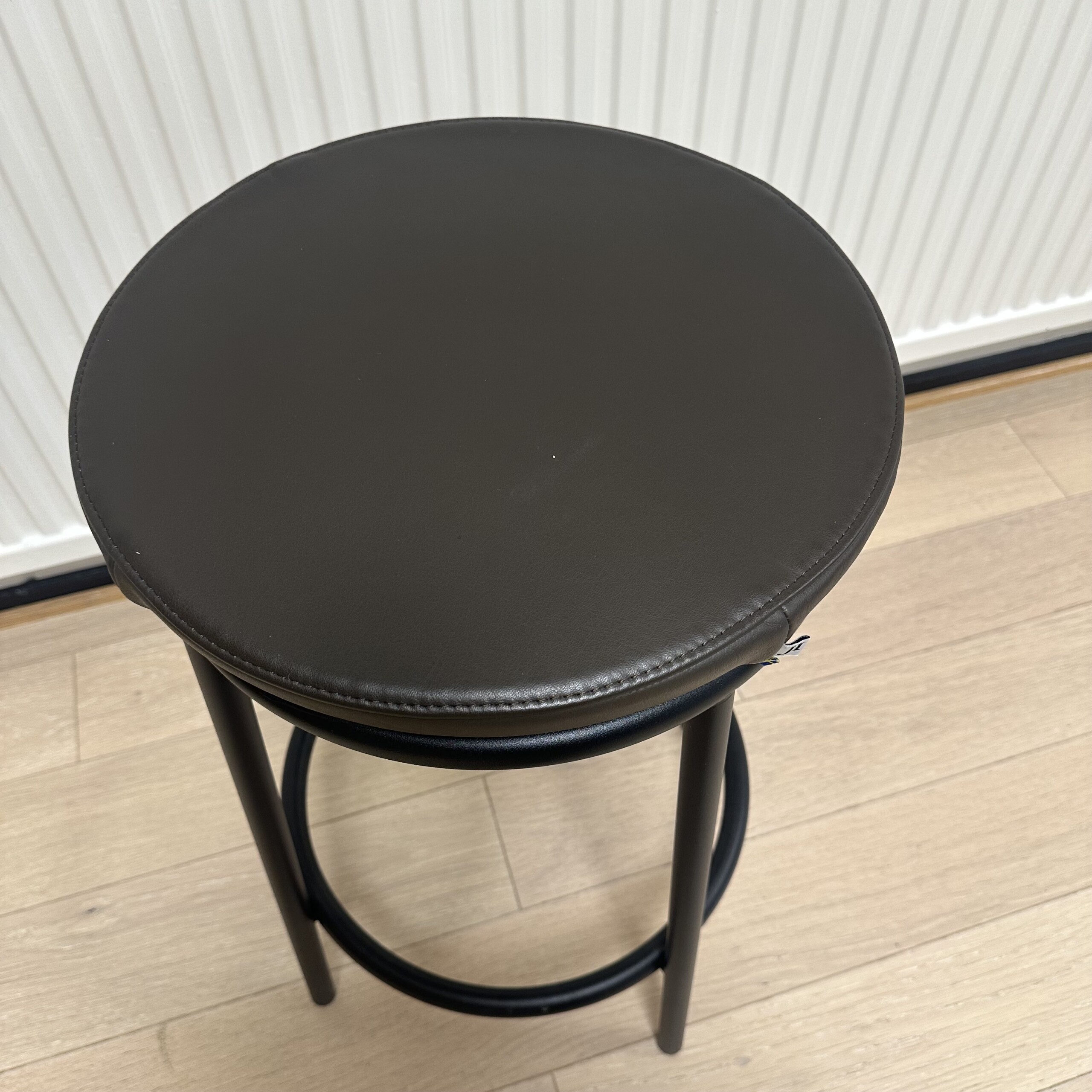 Sæde i læder (brun). 4-bensstel i metal (sort).