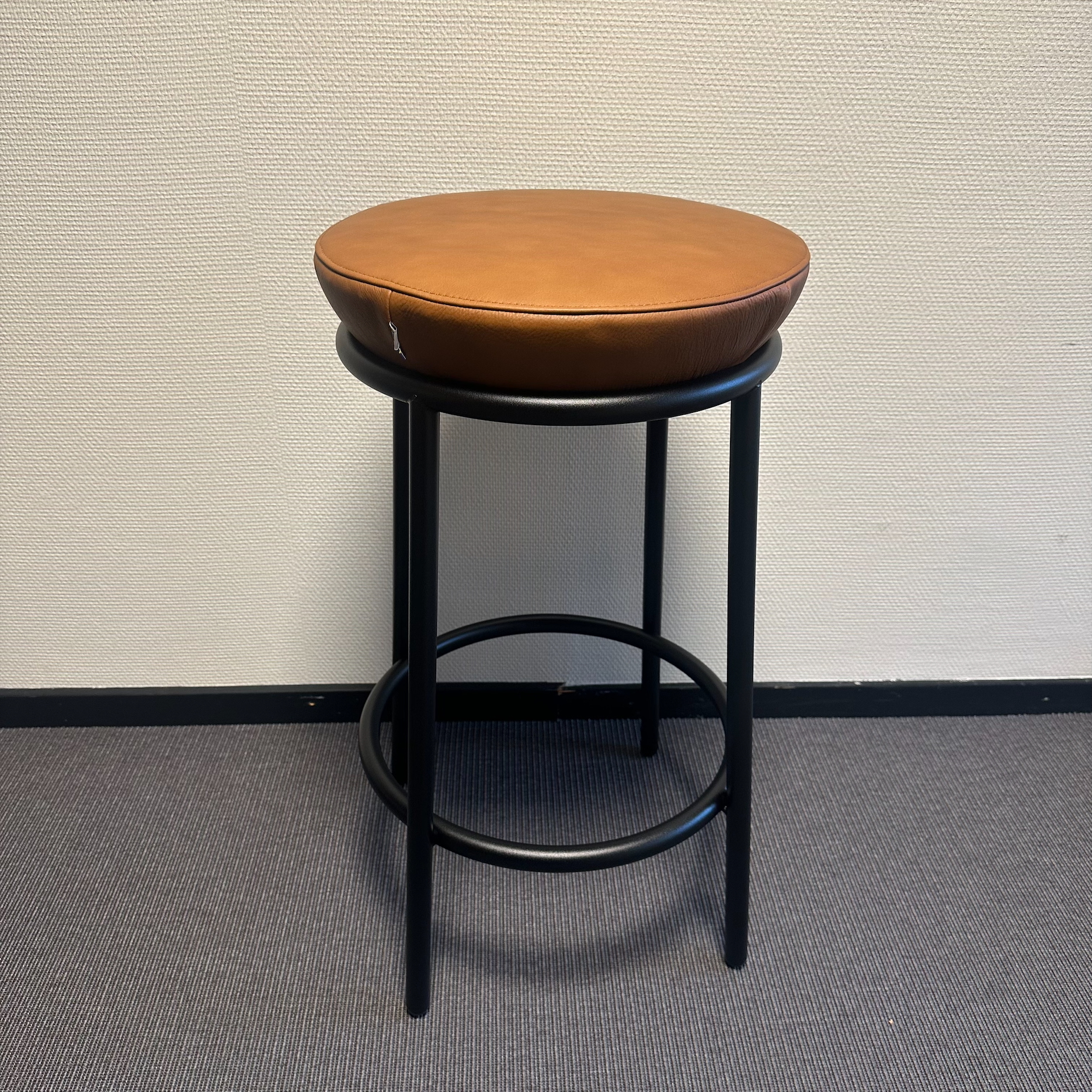 Sæde i læder (brun). 4-bensstel i metal (sort).