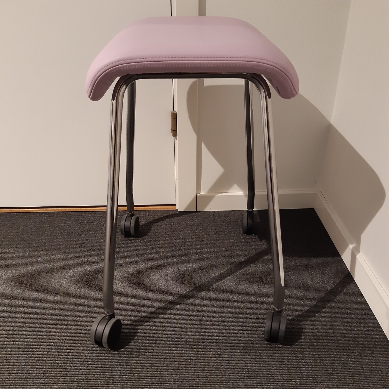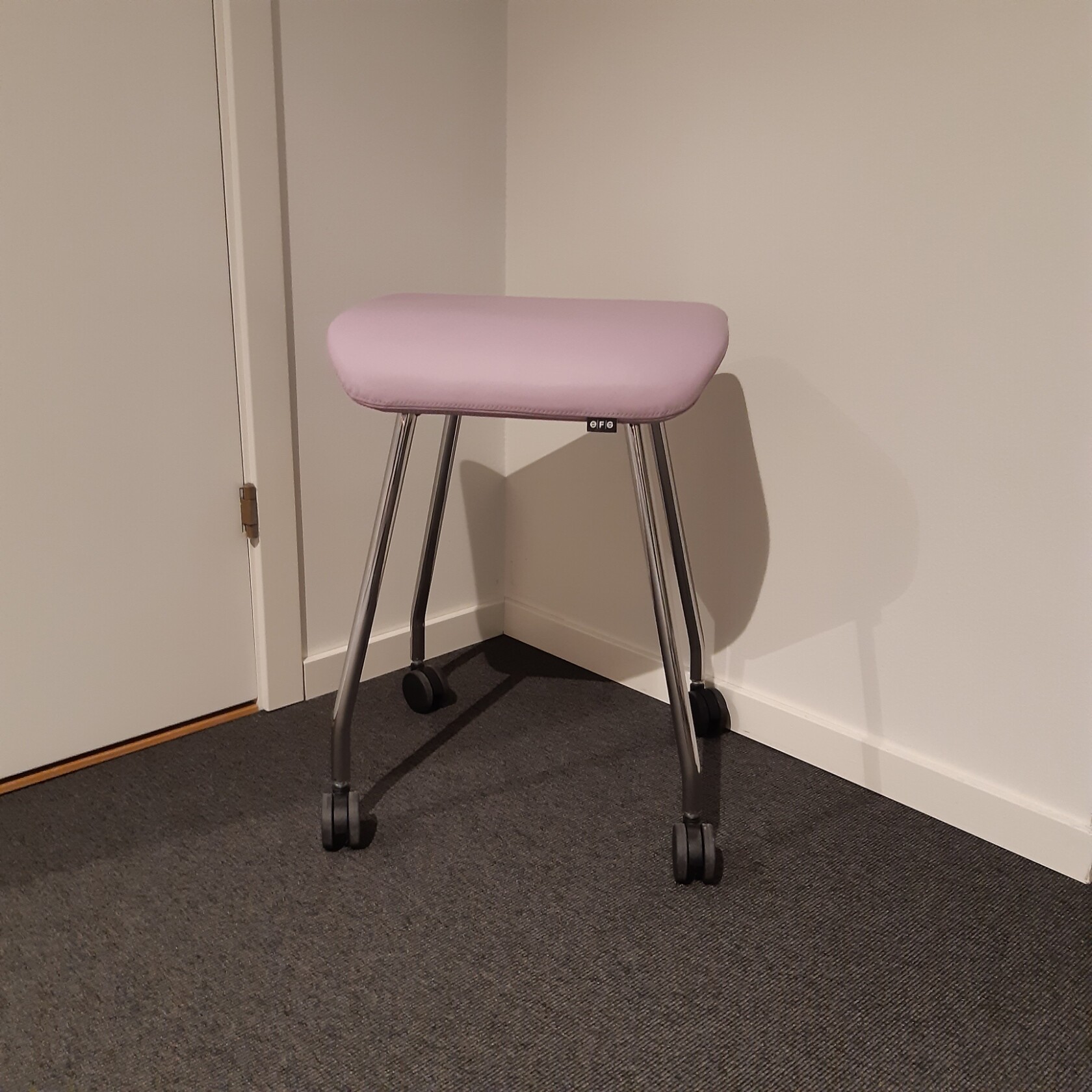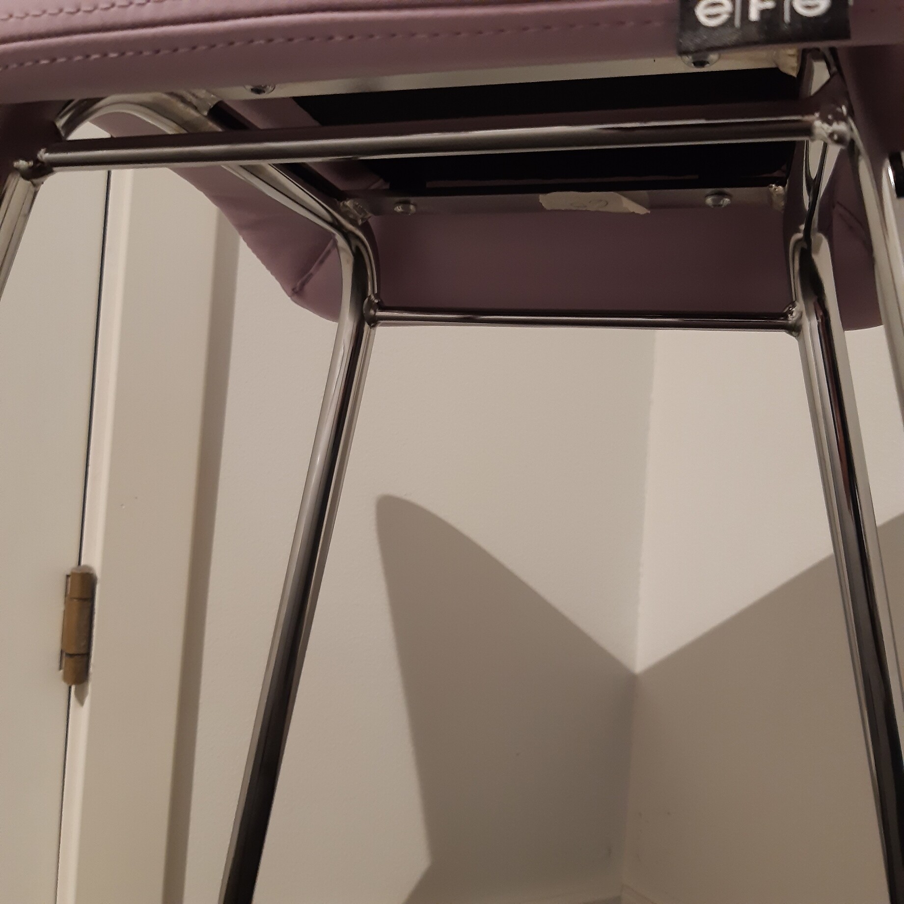Sæde i læder (lyserød). 4-bensstel i metal (krom).