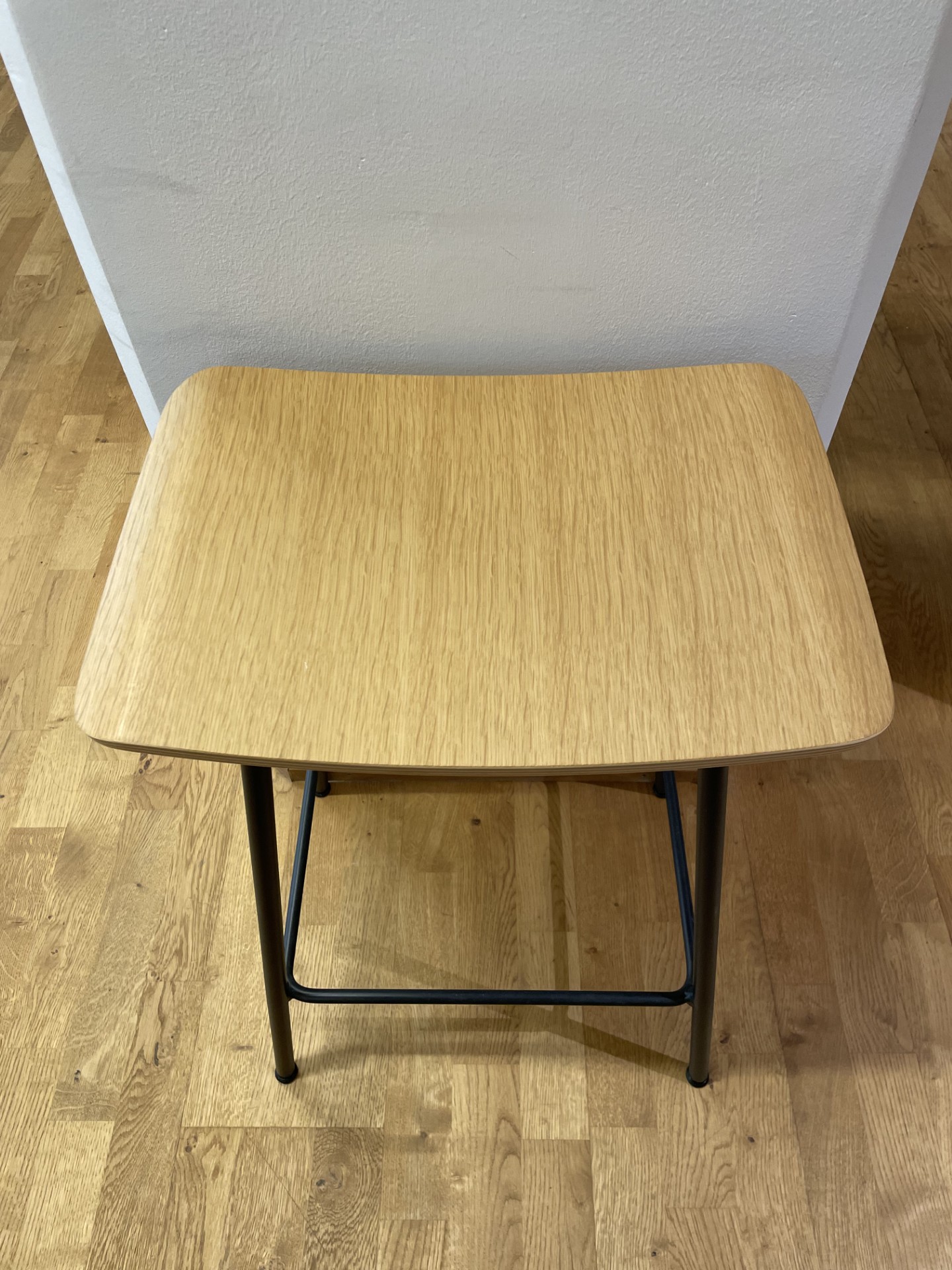 Sæde i træ (eg). 4-bensstel i metal (sort).
