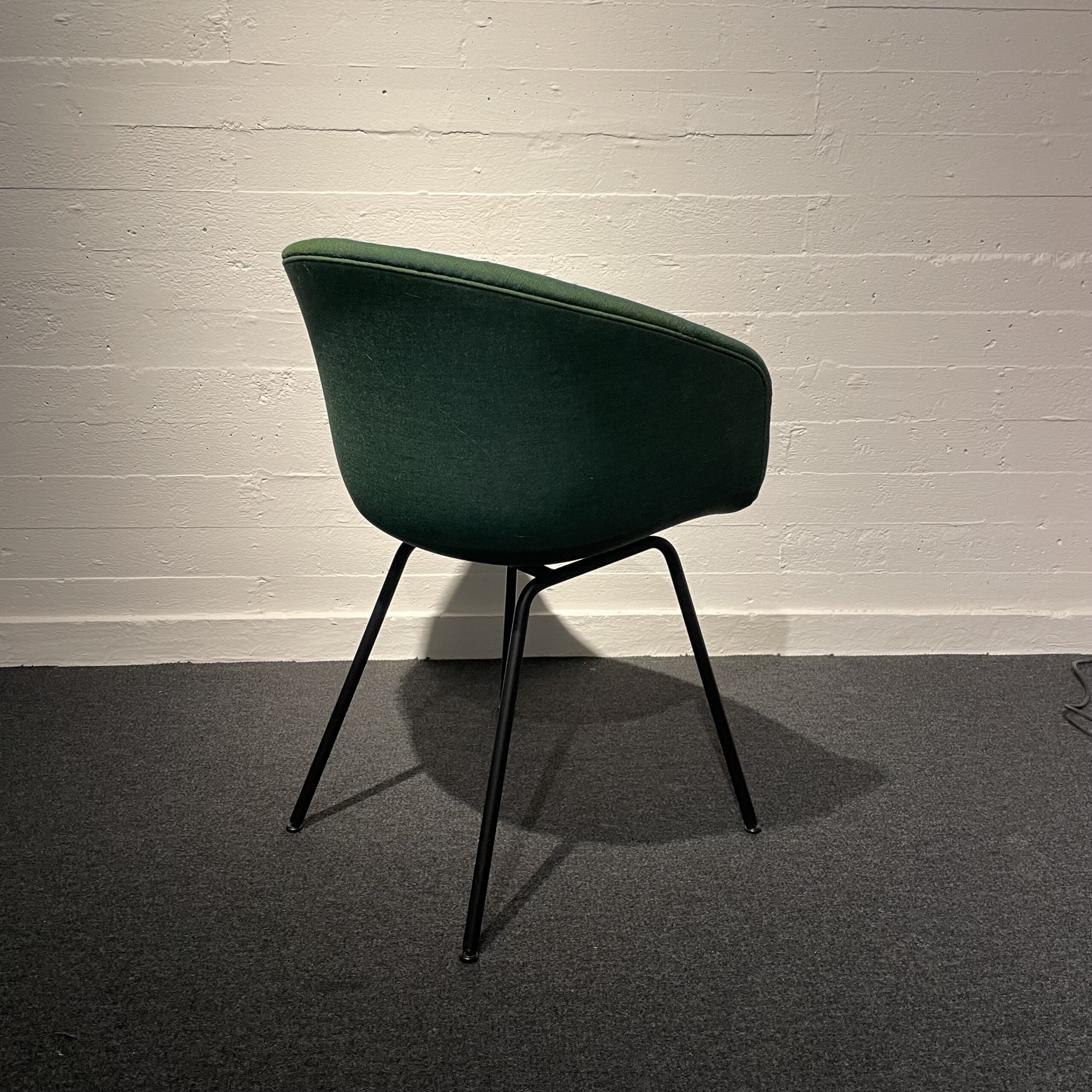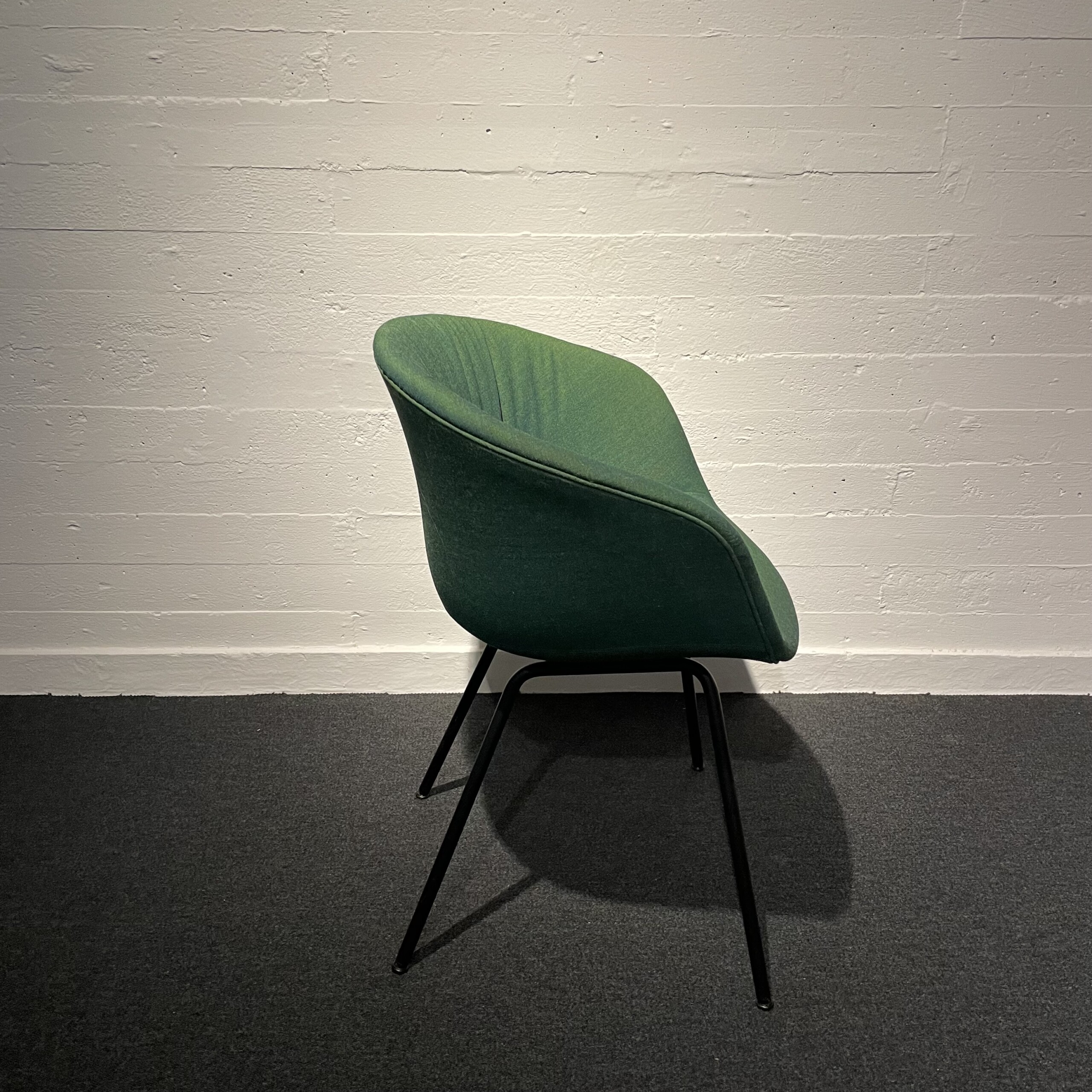 Sæde og ryg i stof (grøn). 4-bensstel i metal (sort).