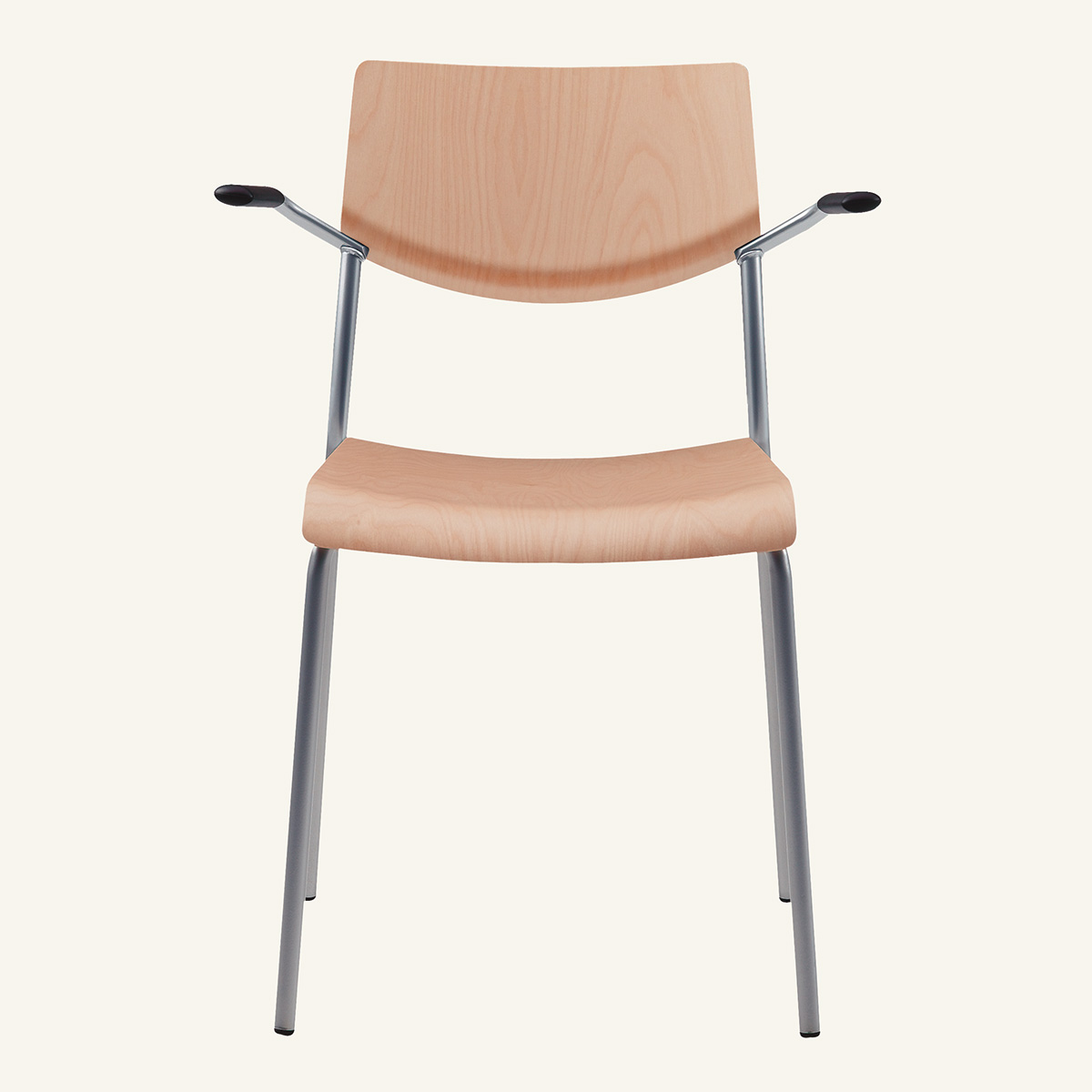 Sæde og ryg i træ (bok). 4-bensstel i metal (krom).
