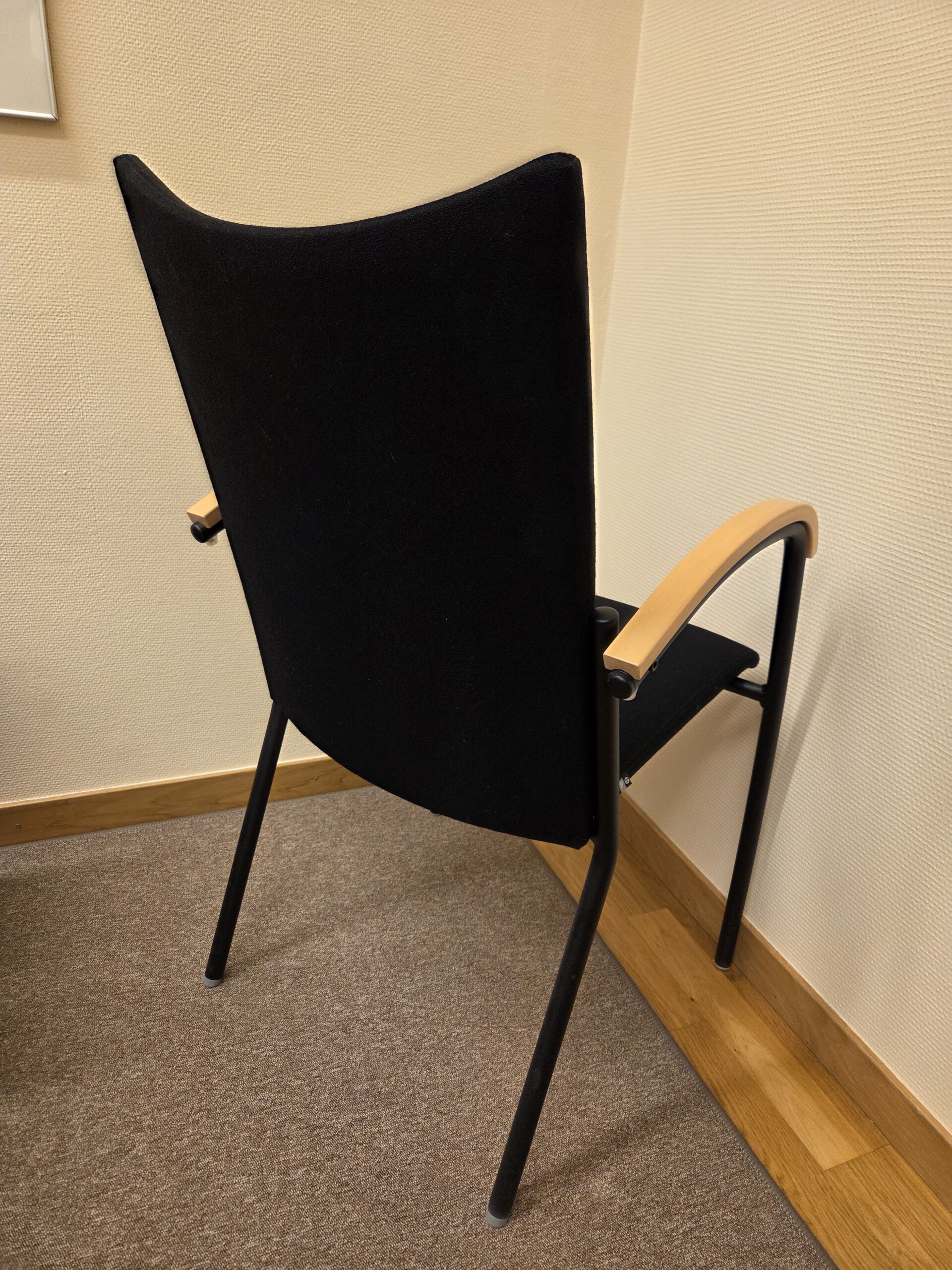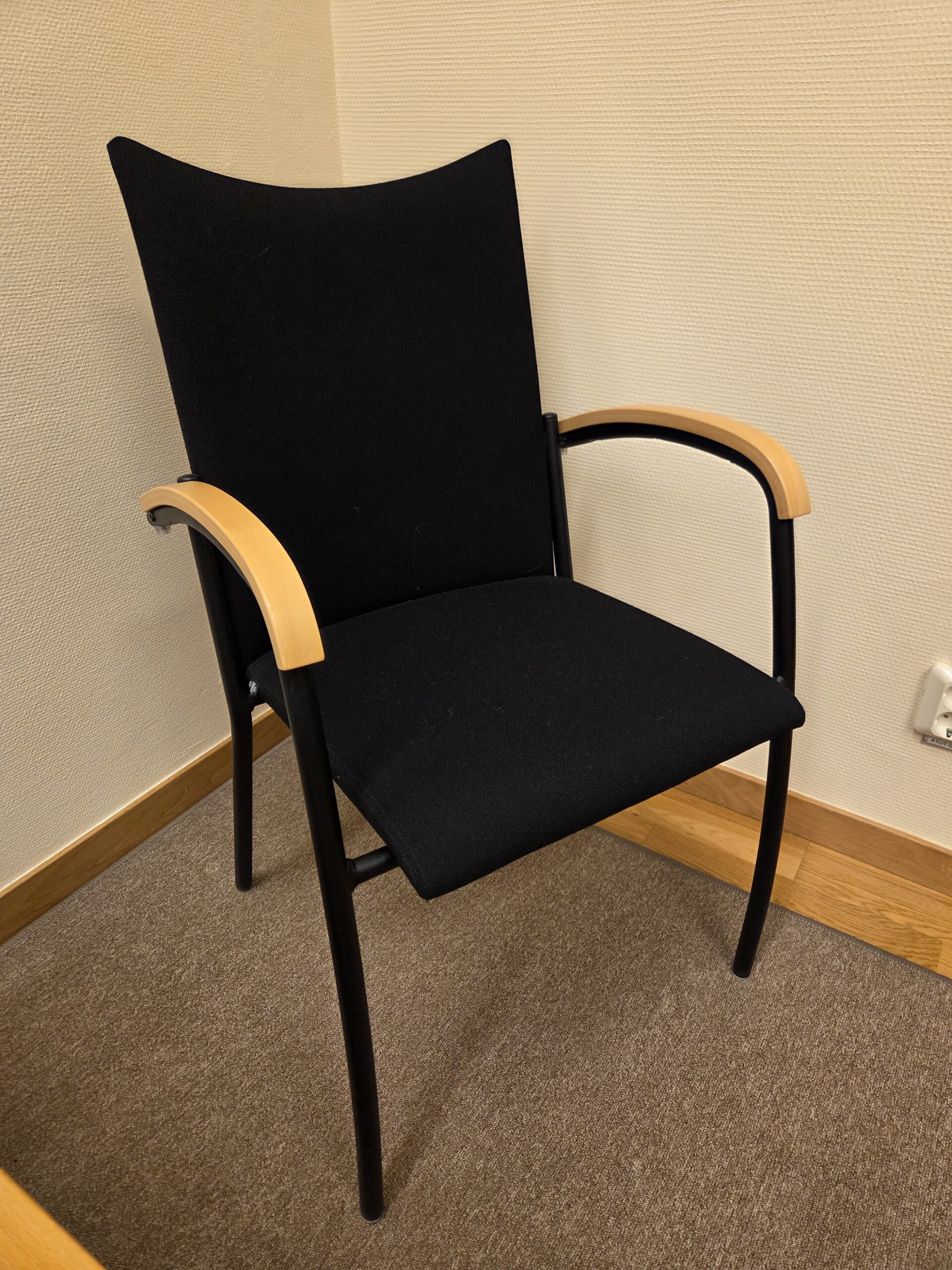 Sæde og ryg i stof (sort). 4-bensstel i metal (sort).