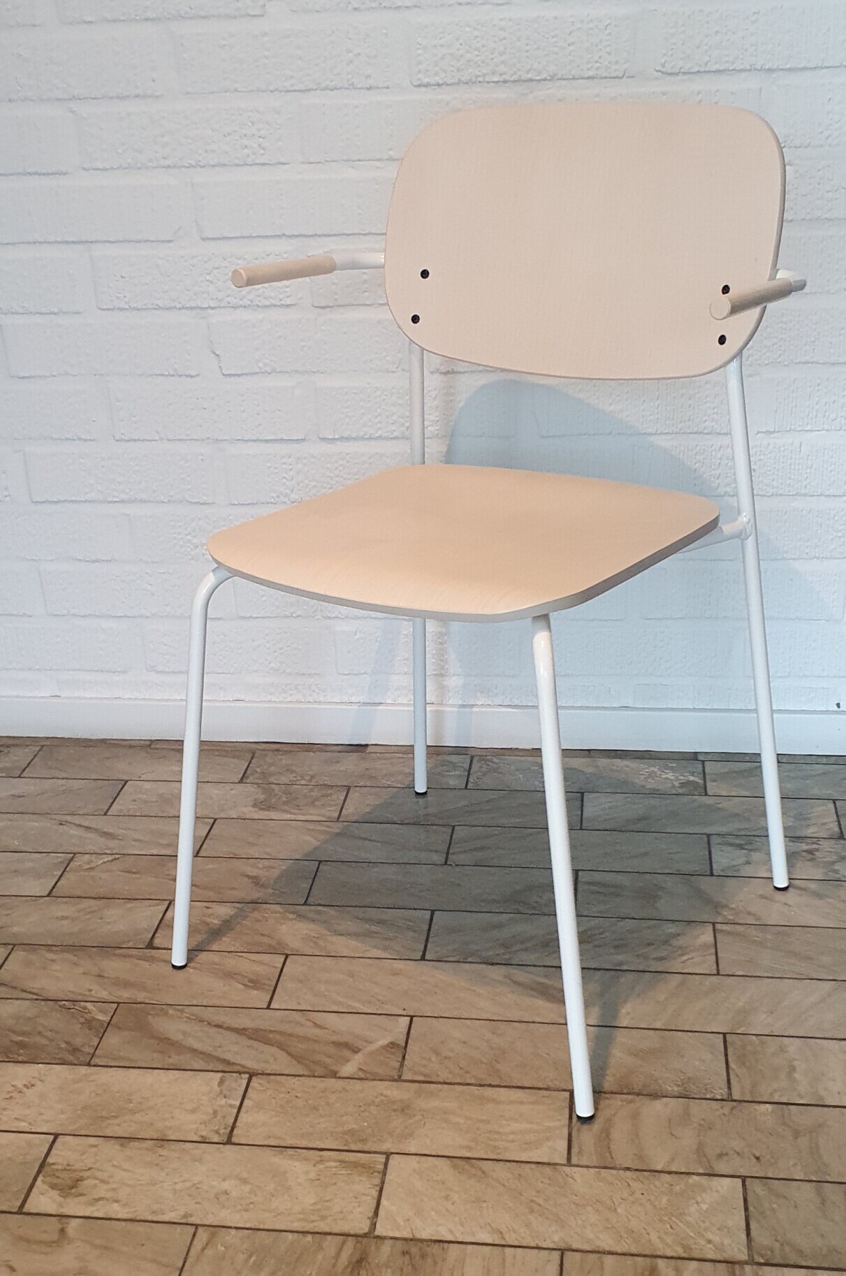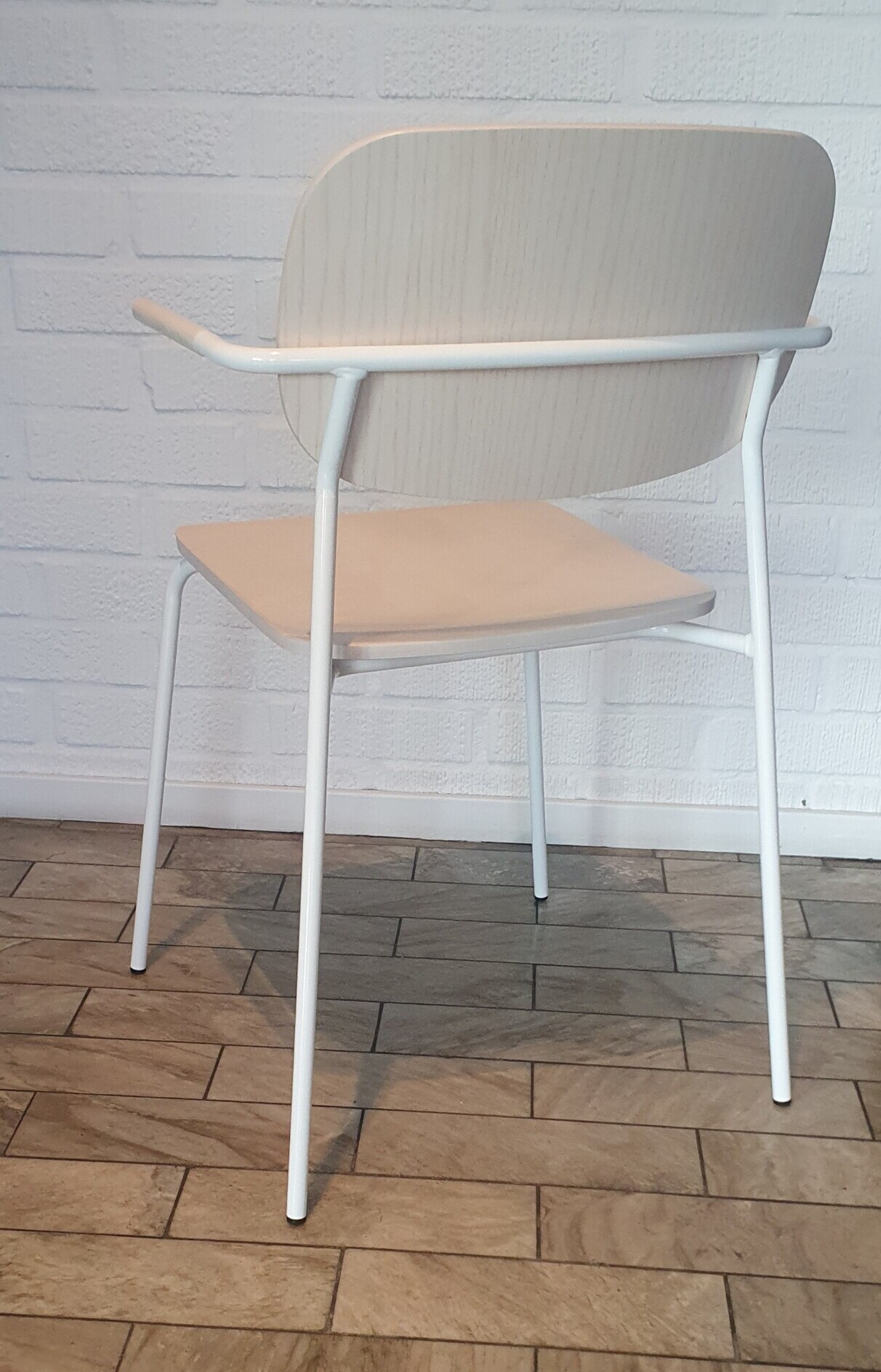 Sæde og ryg i træ (ask). 4-bensstel i metal (hvid).