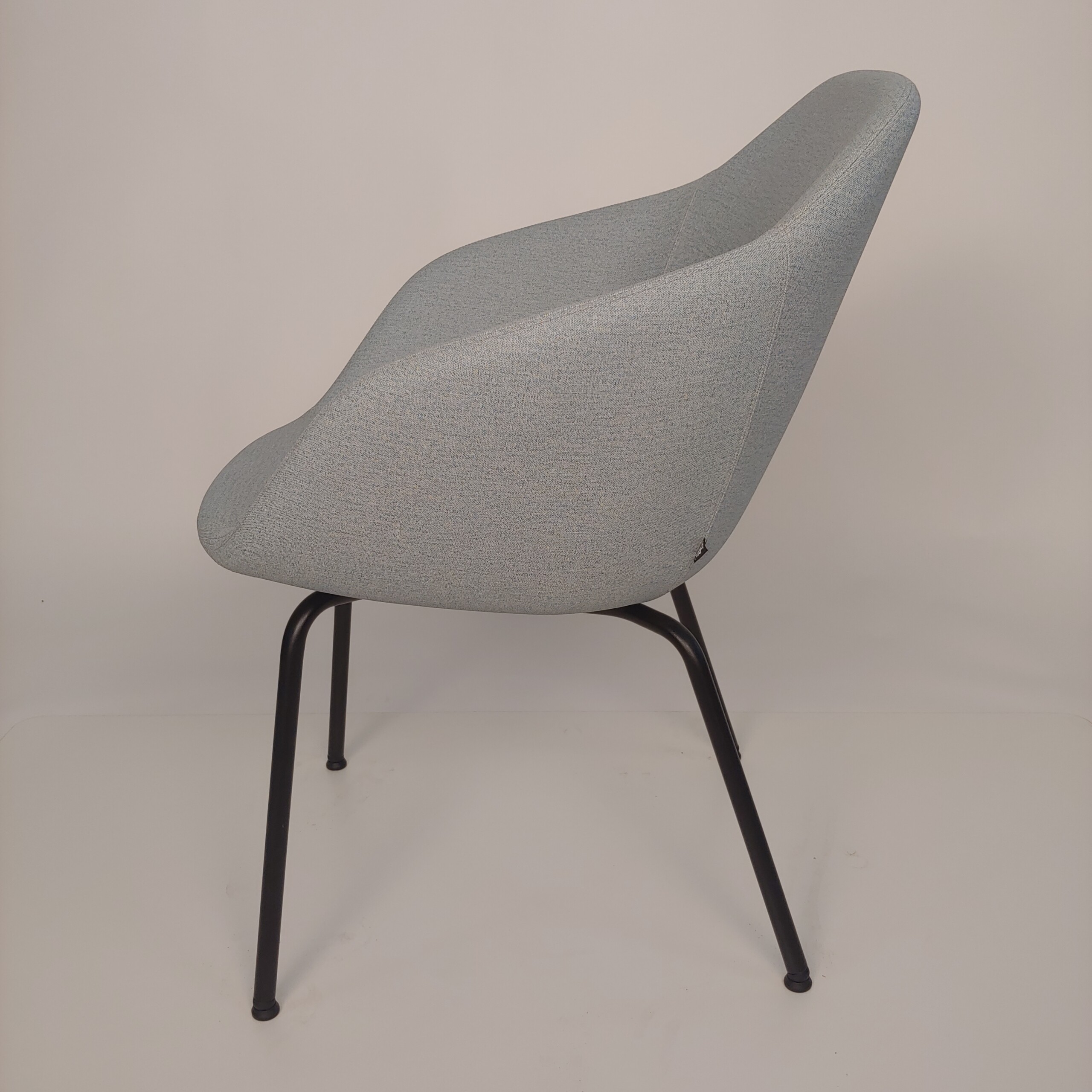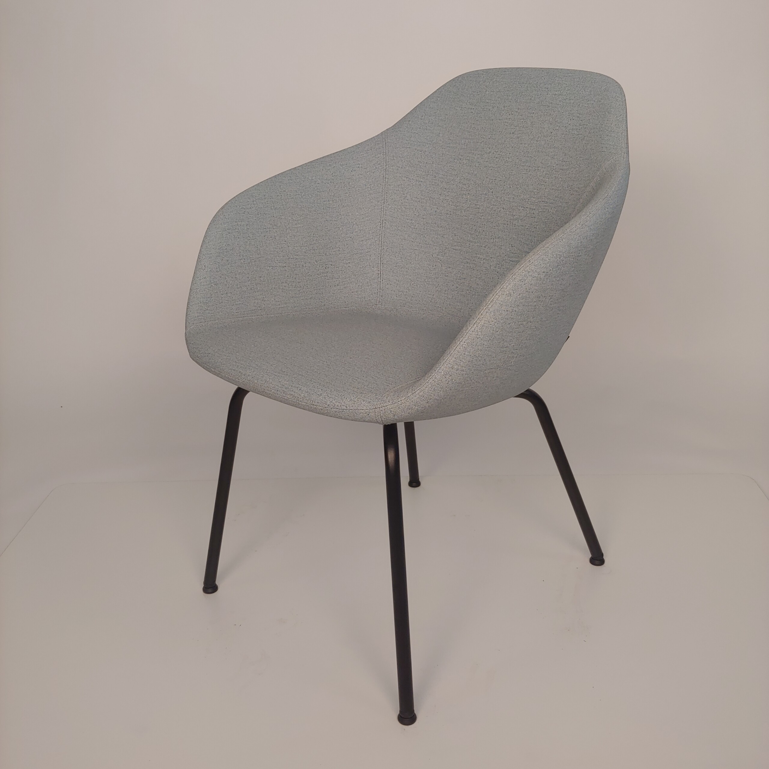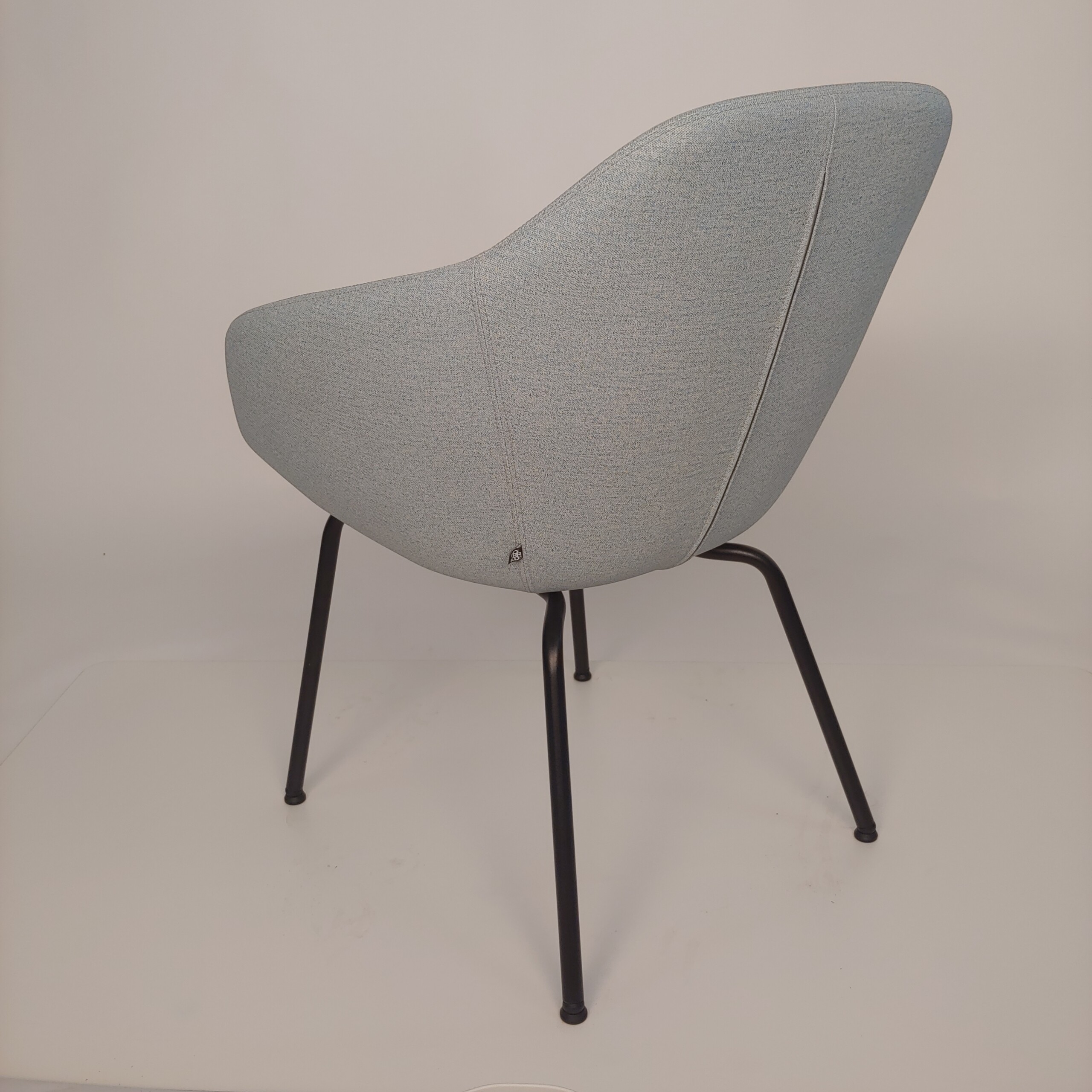 Sæde og ryg i stof (blå). 4-bensstel i metal (sort).