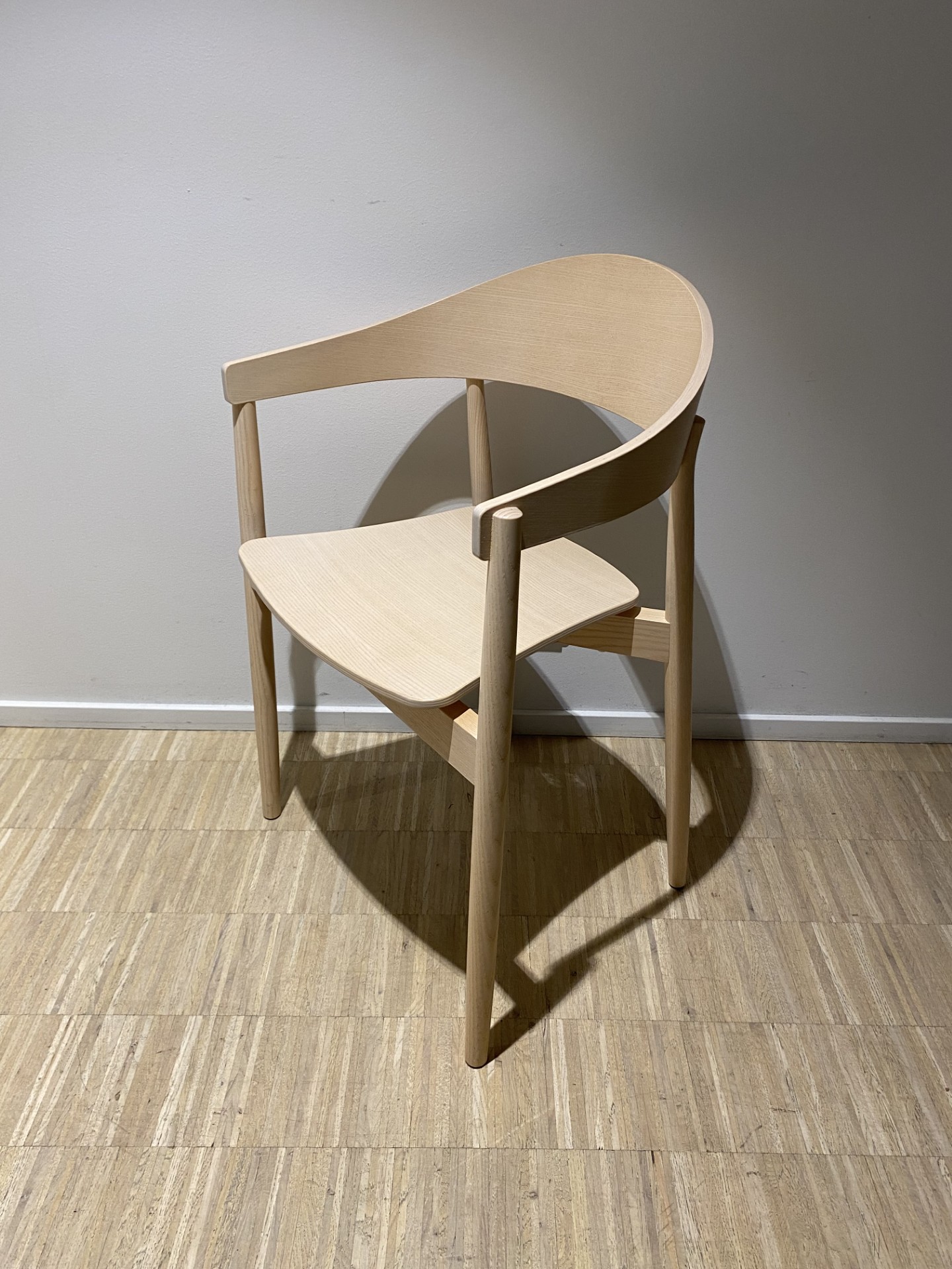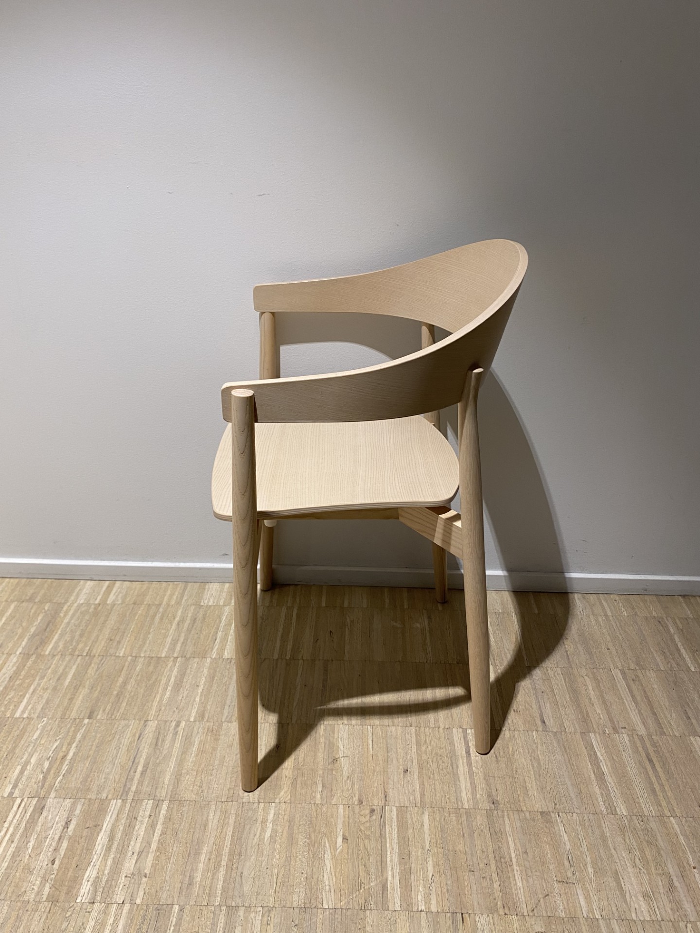 Sæde, ryg og 4-bensstel i træ (ask).