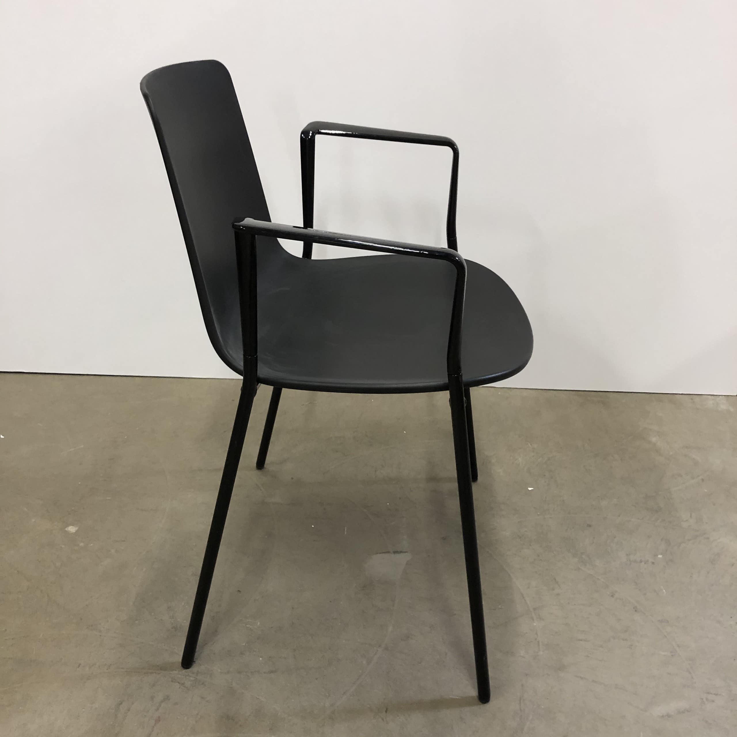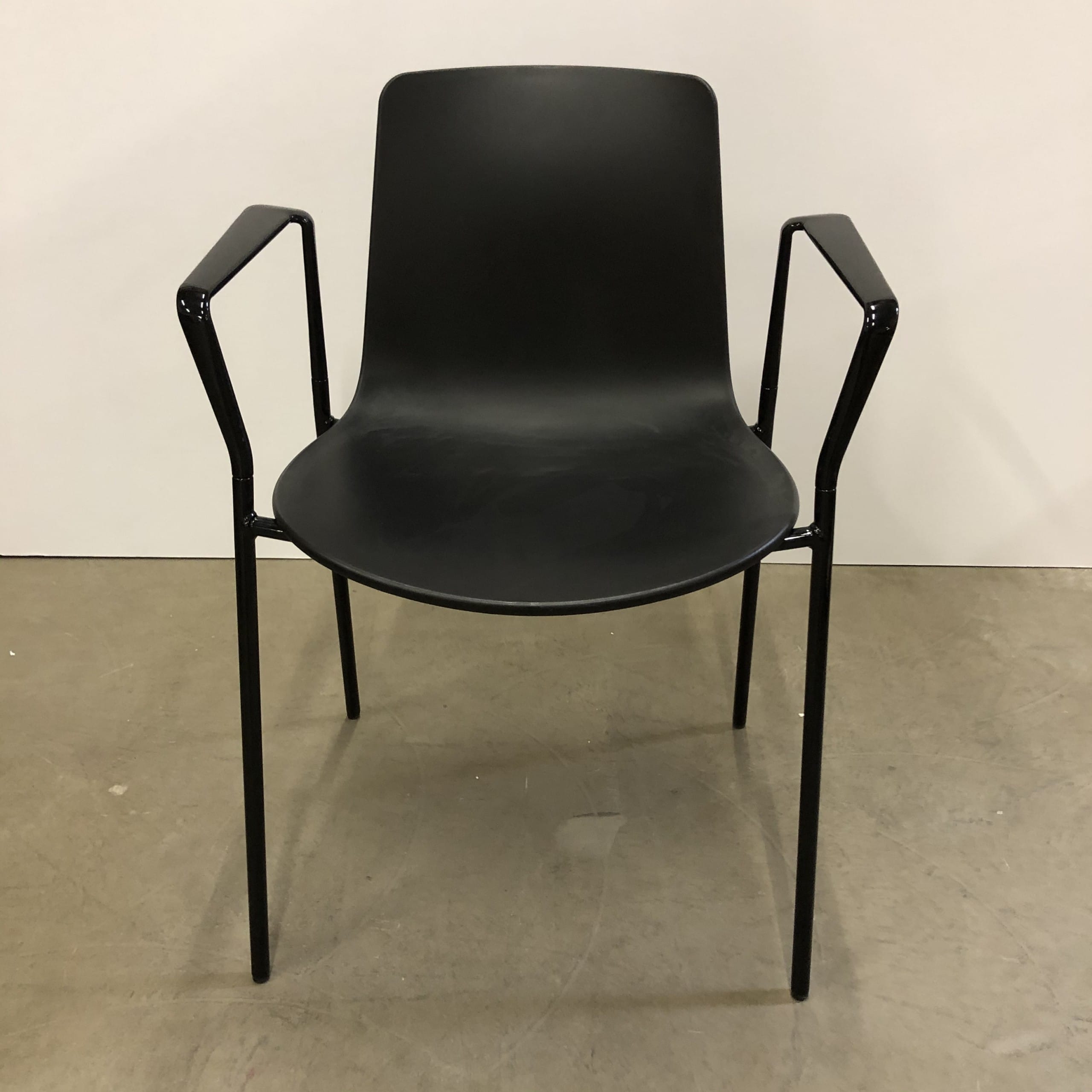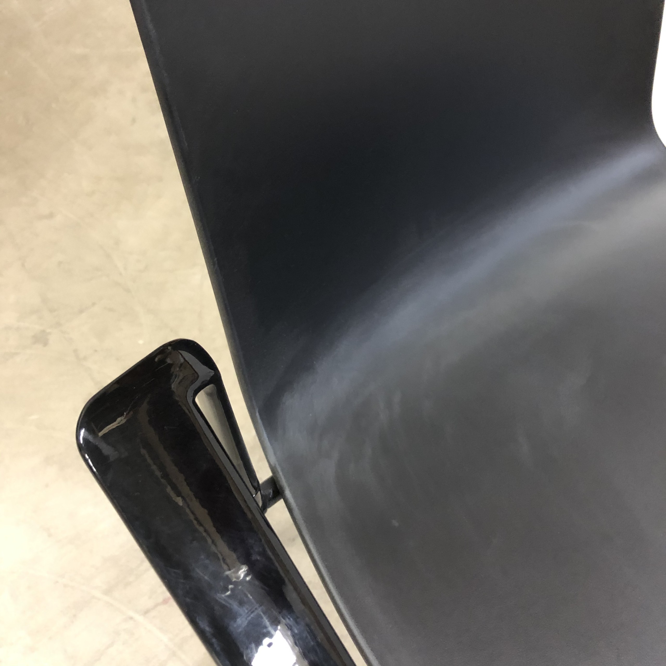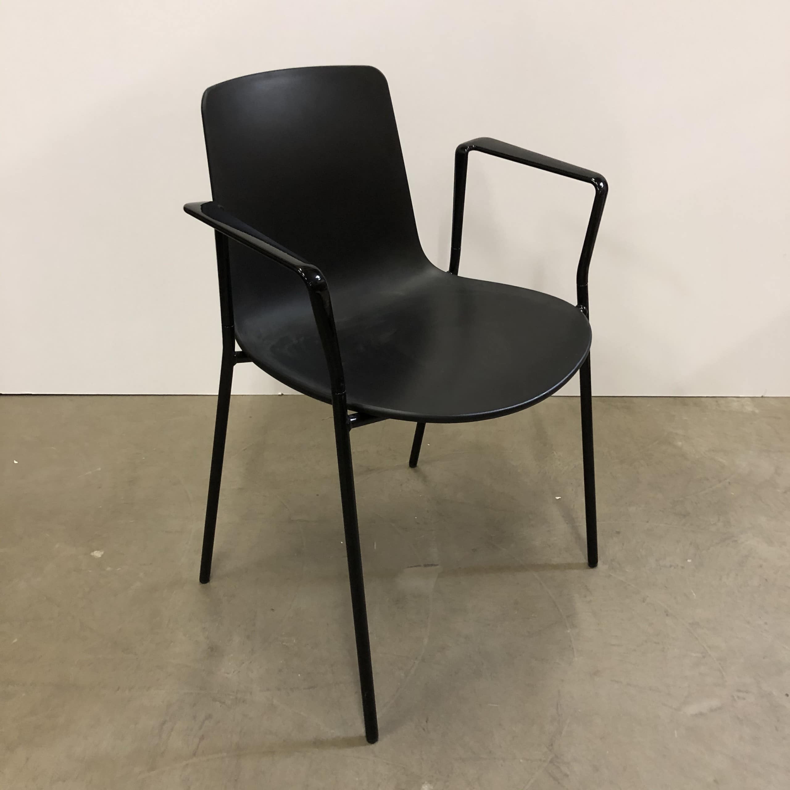 Sæde og ryg i plast (sort). 4-bensstel i metal (sort).