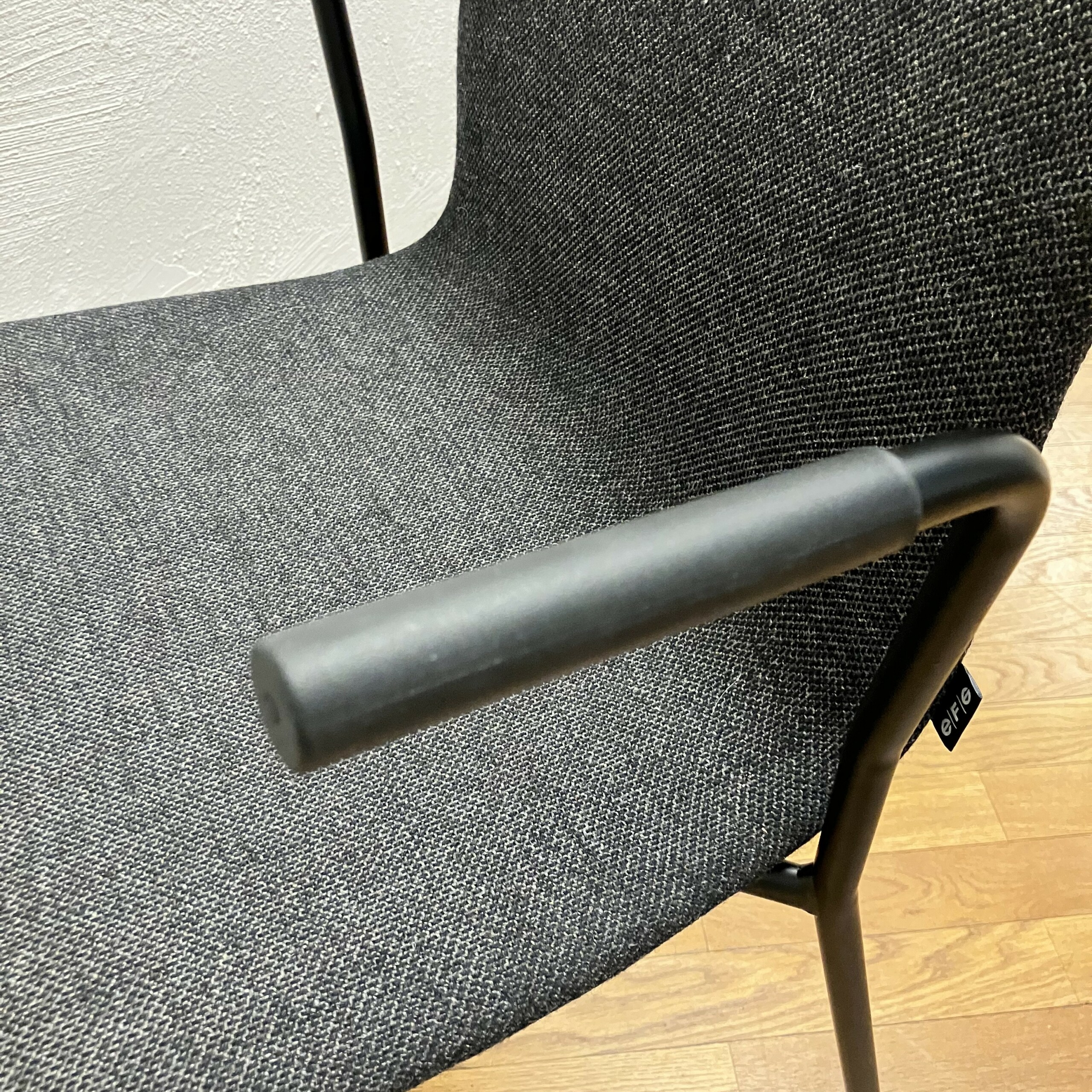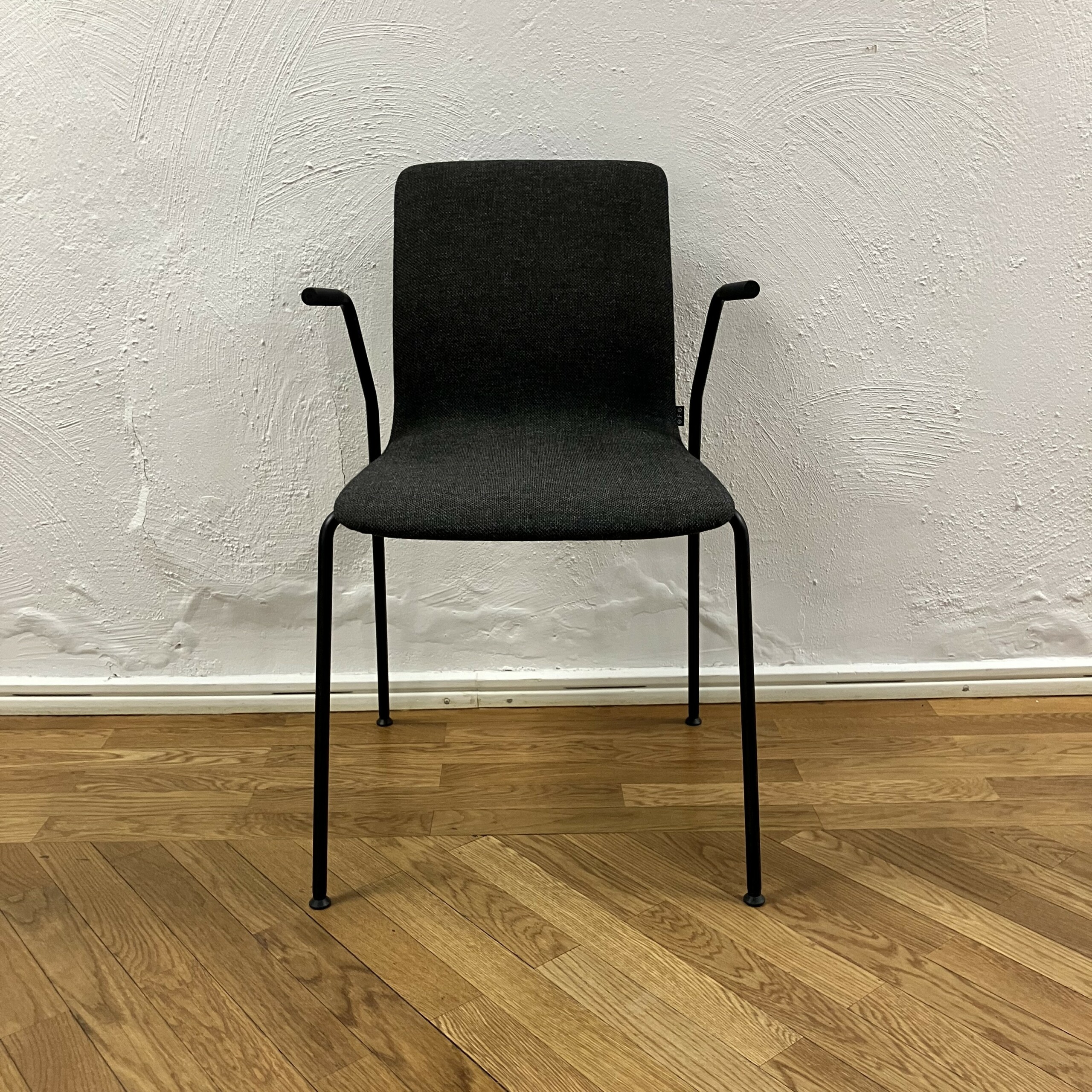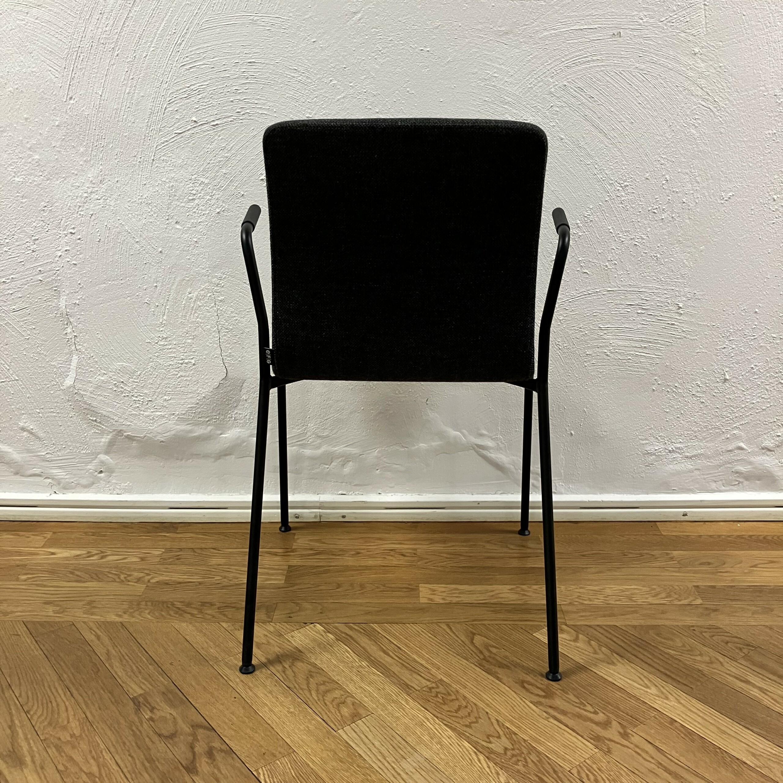 Sæde og ryg i stof (sort). 4-bensstel i metal (sort).