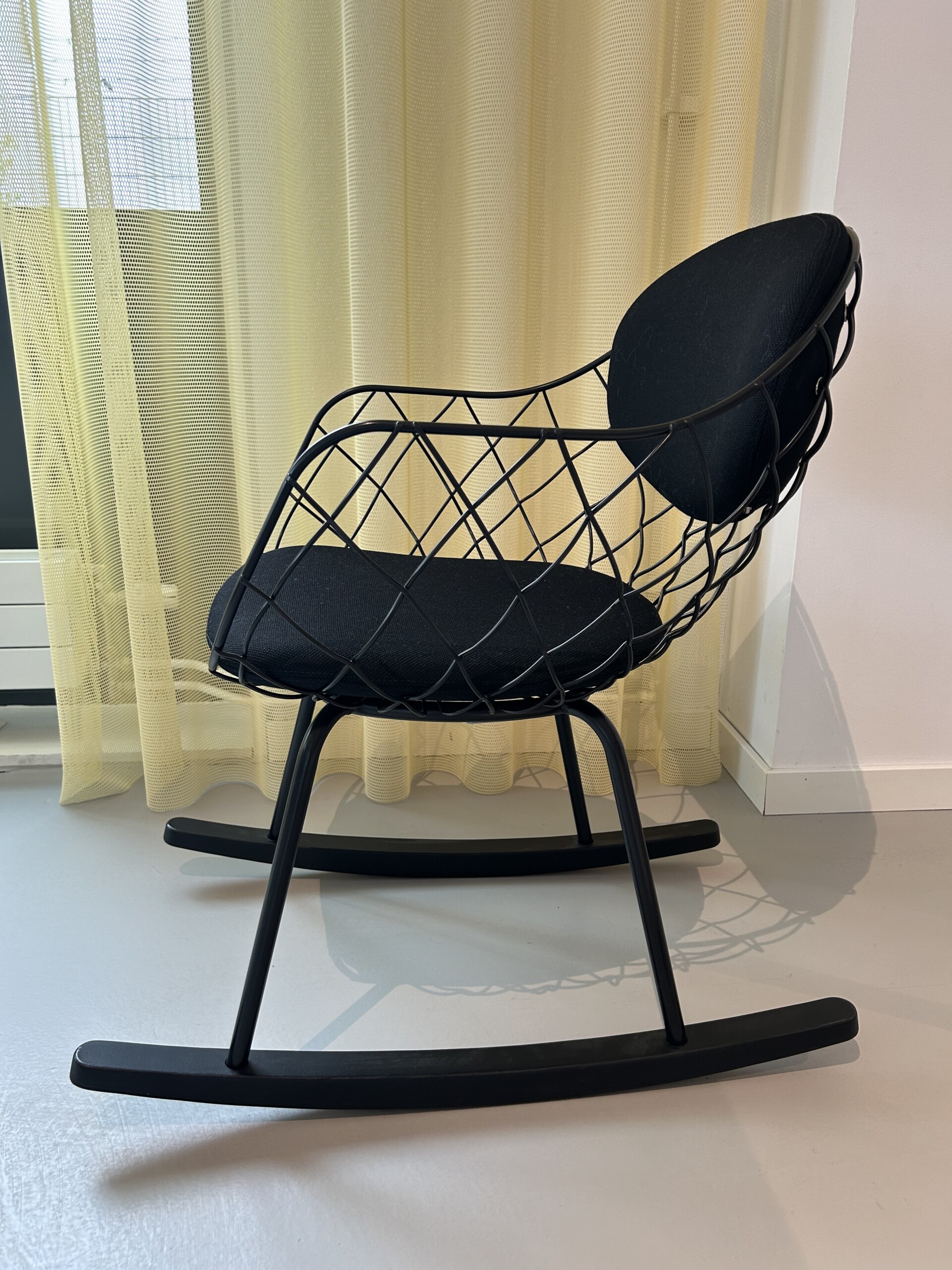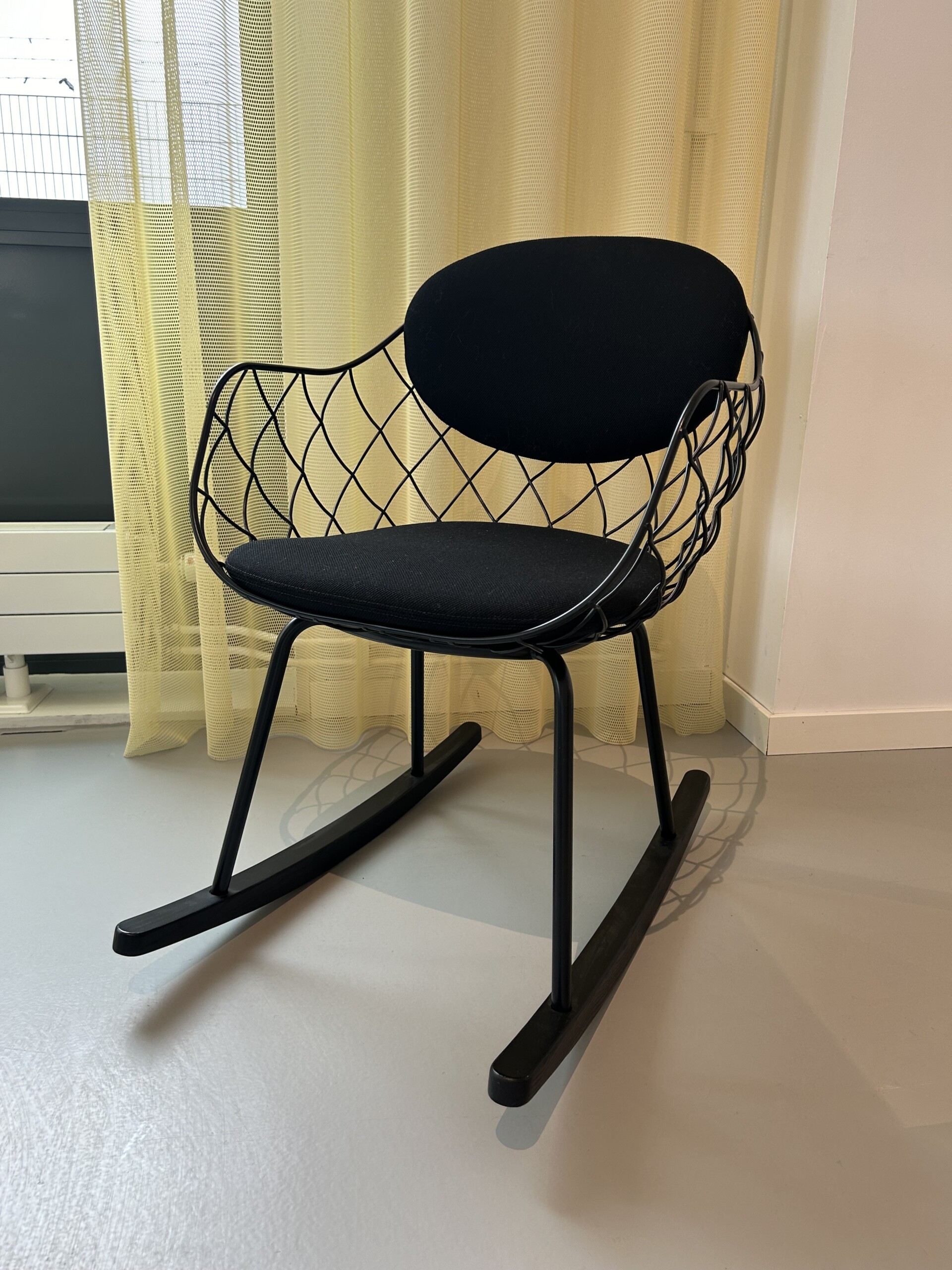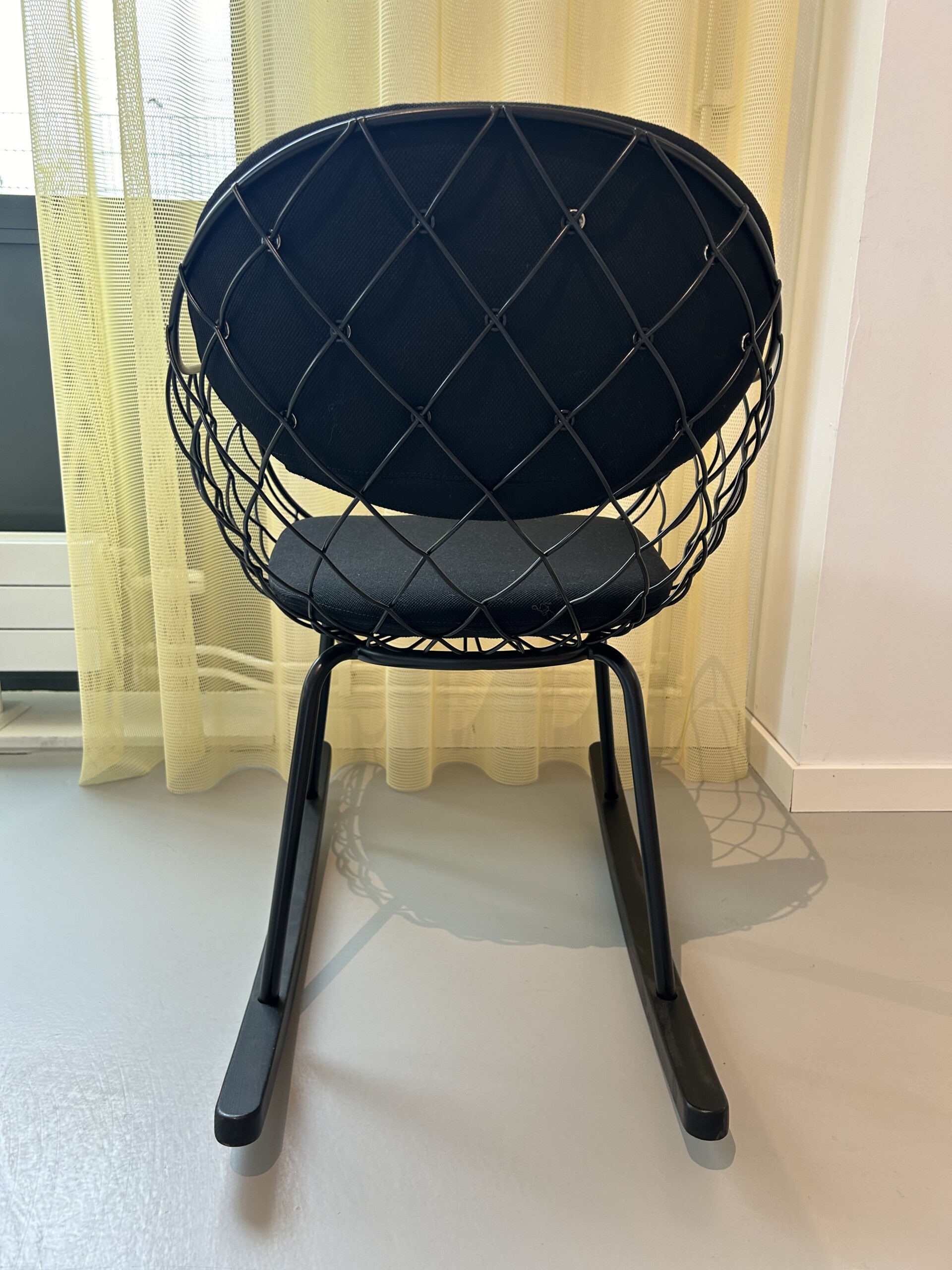 Sæde og ryg i stof (sort). Medestel i metal (sort).