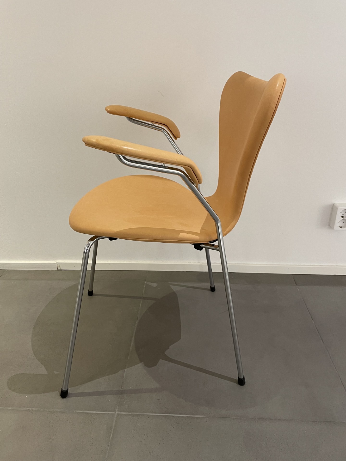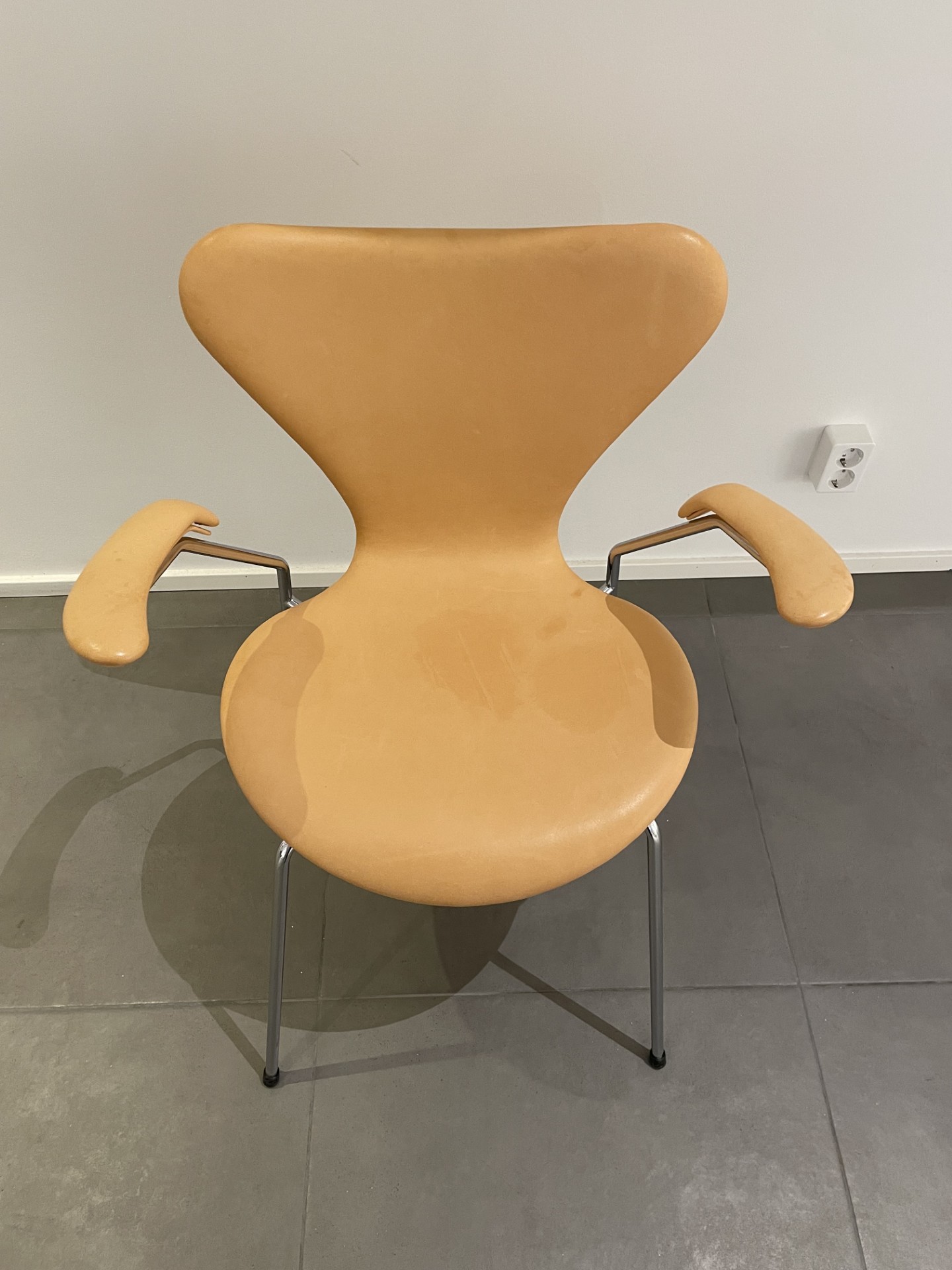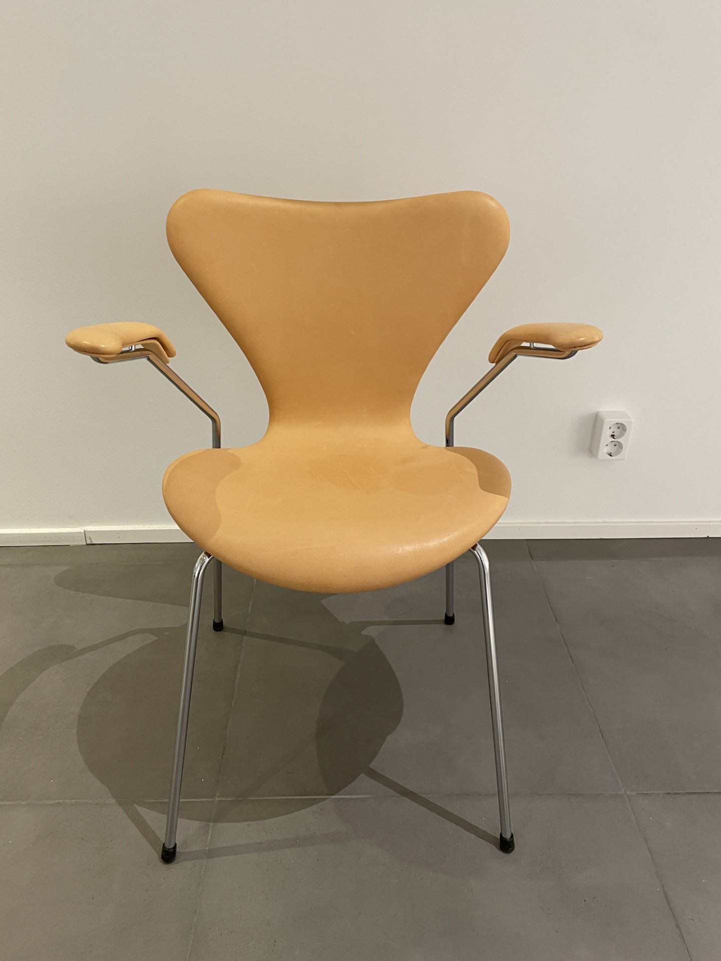 Sæde og ryg i læder. 4-bensstel i metal (krom).