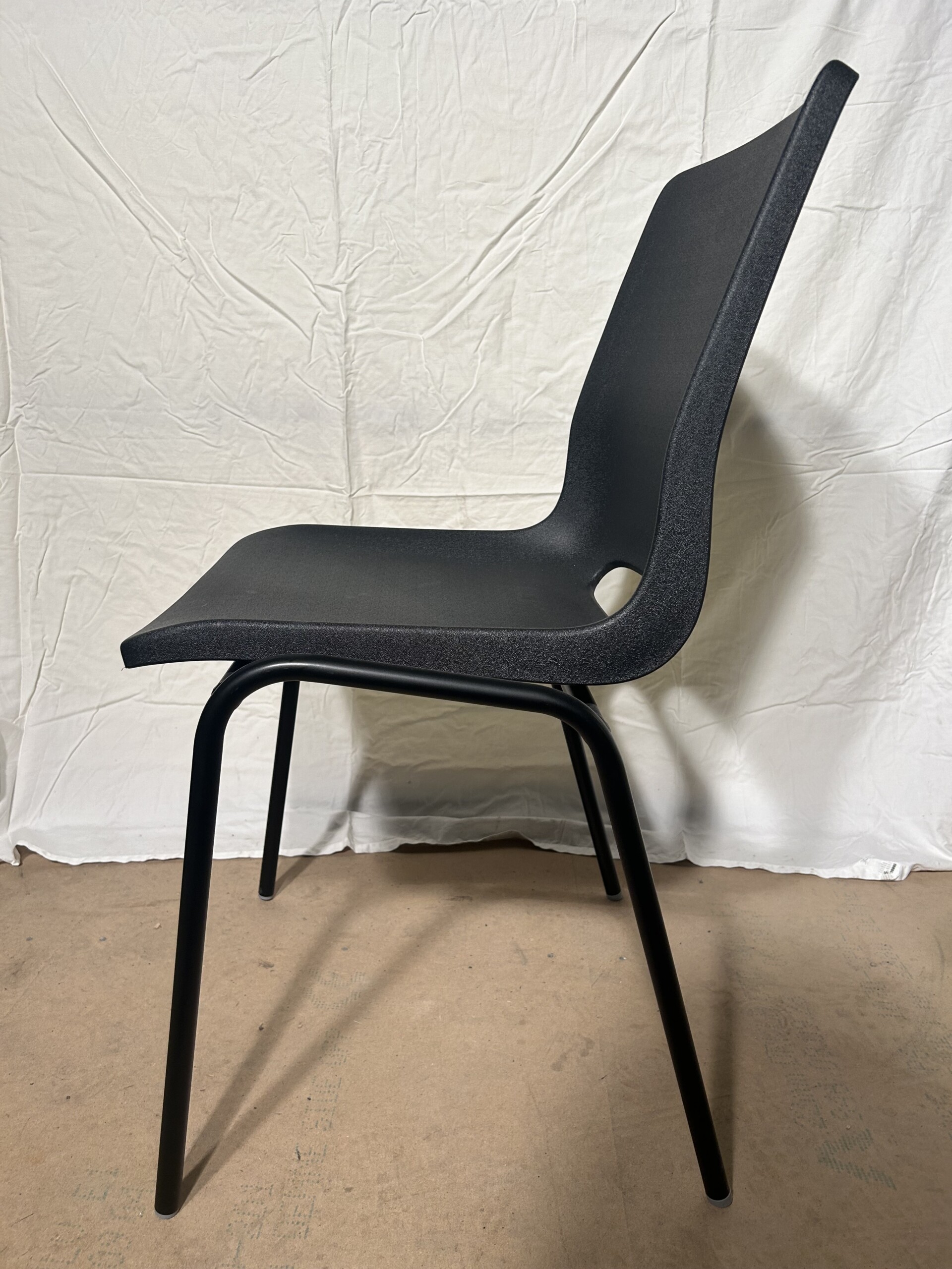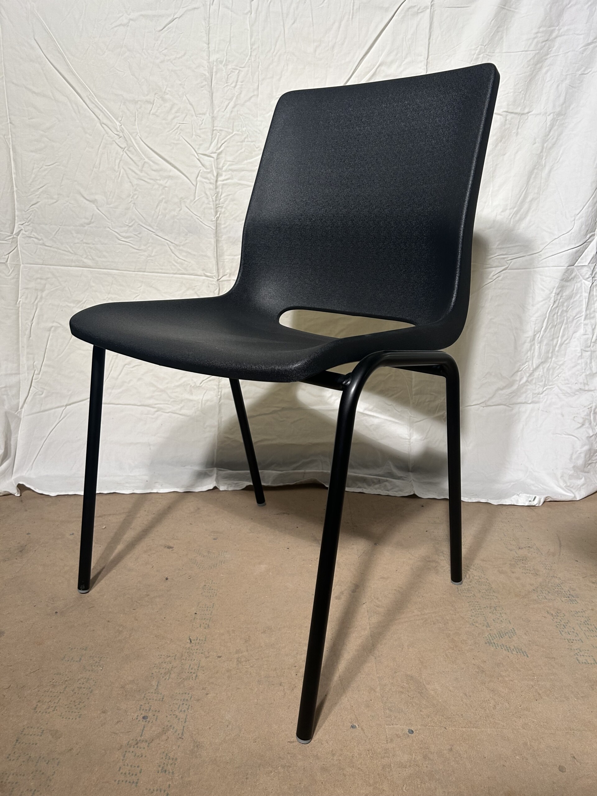 Sæde og ryg i plast (sort). 4-bensstel i metal (sort).