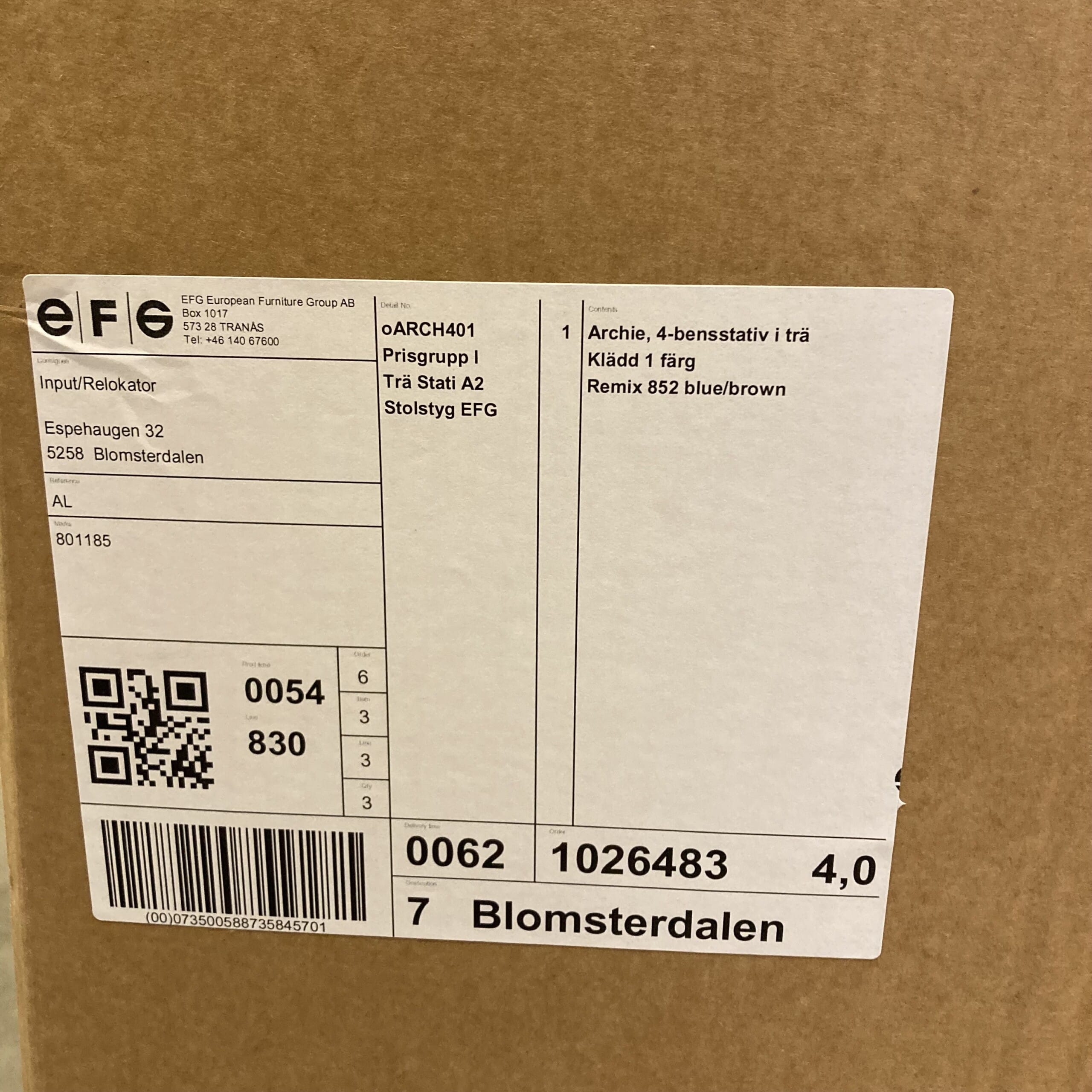 | Tyg | brun | Kvadrat, Remix, 852. | 1 | Ben | Trä | ask |
