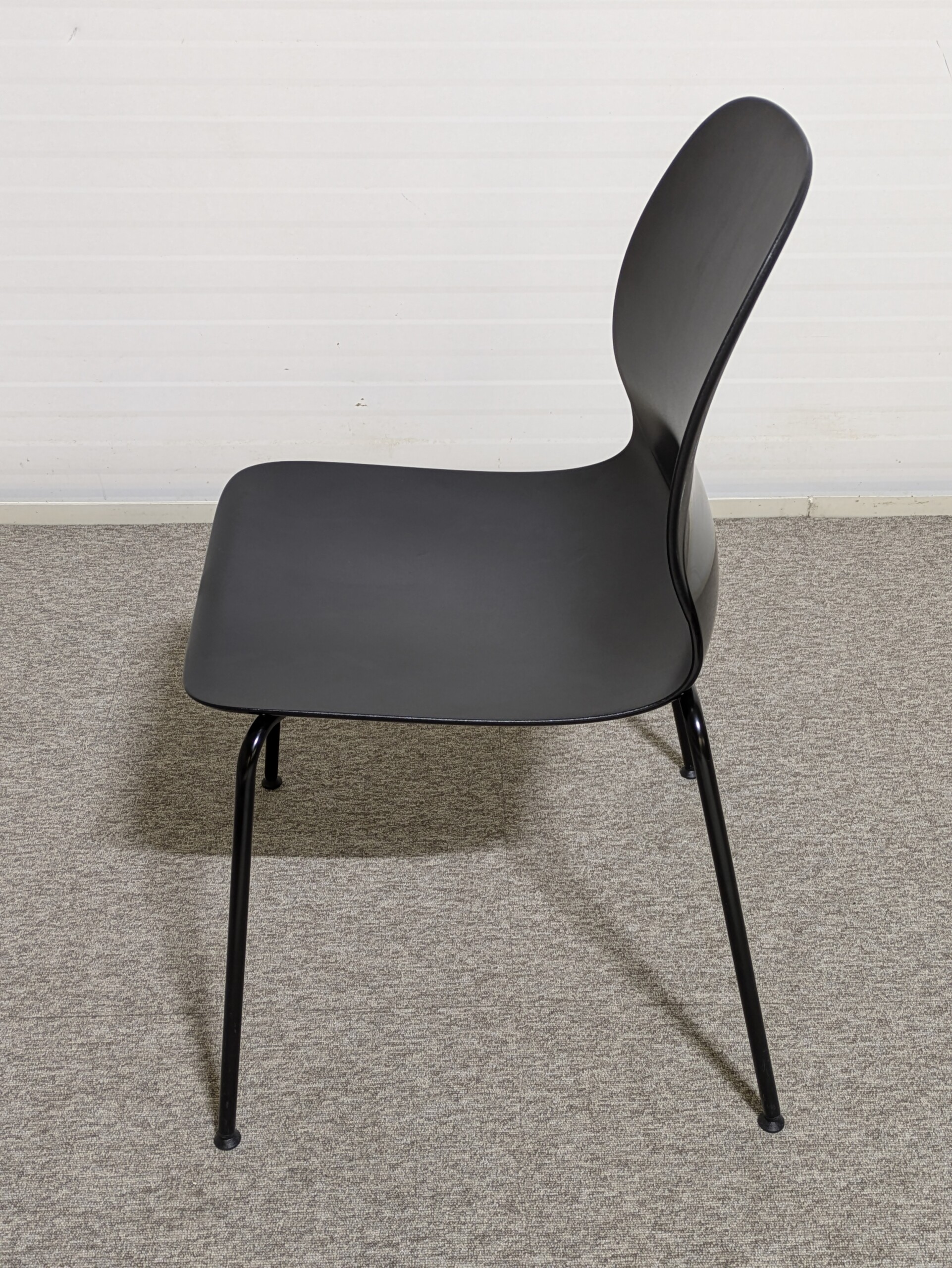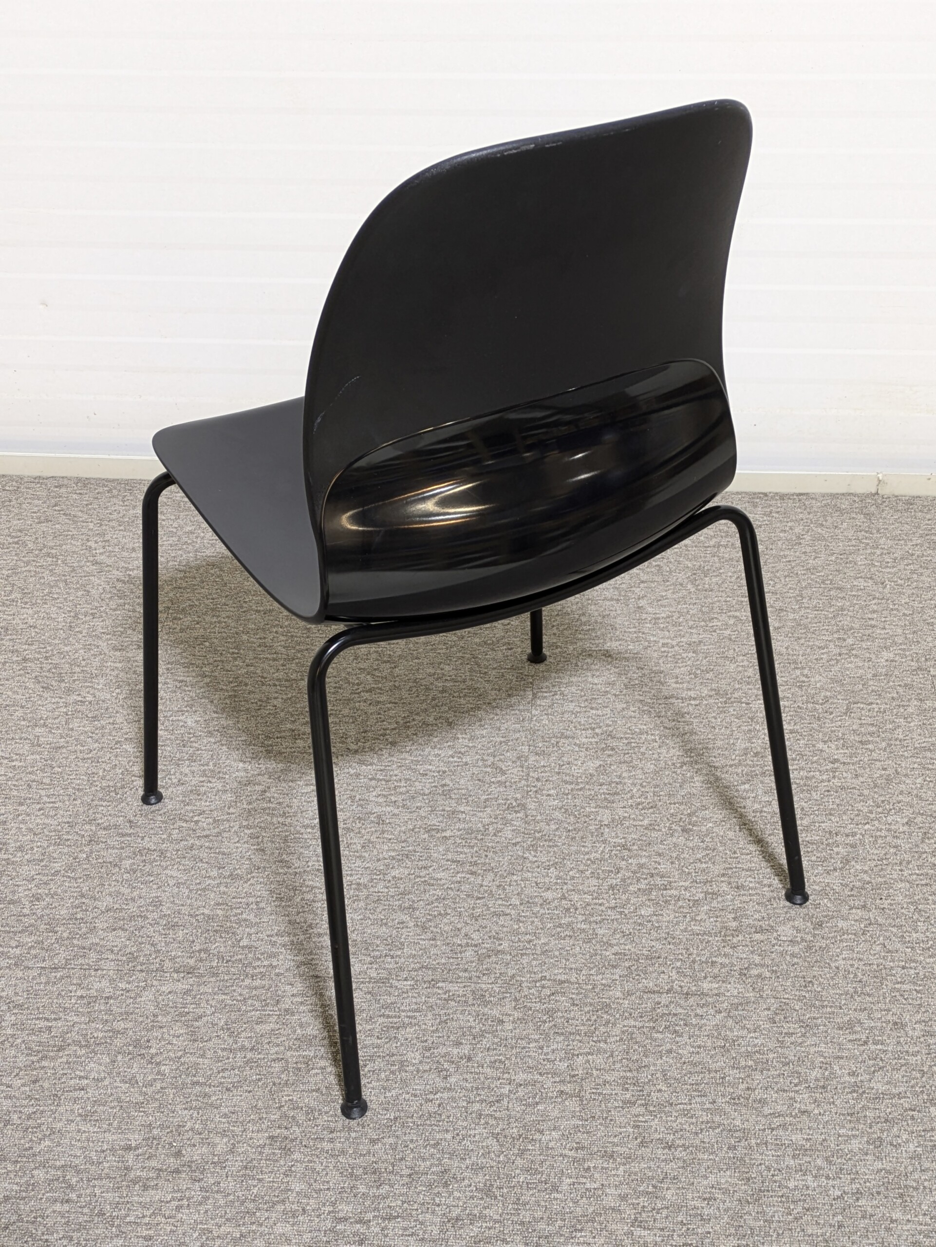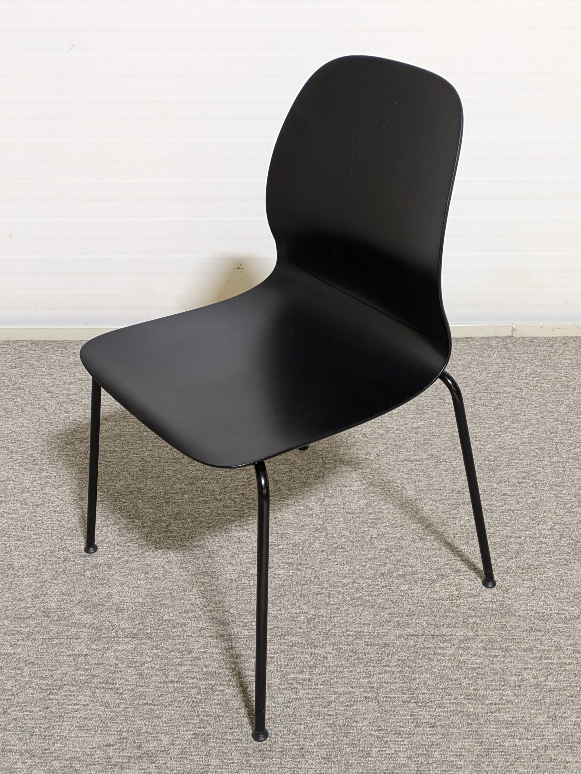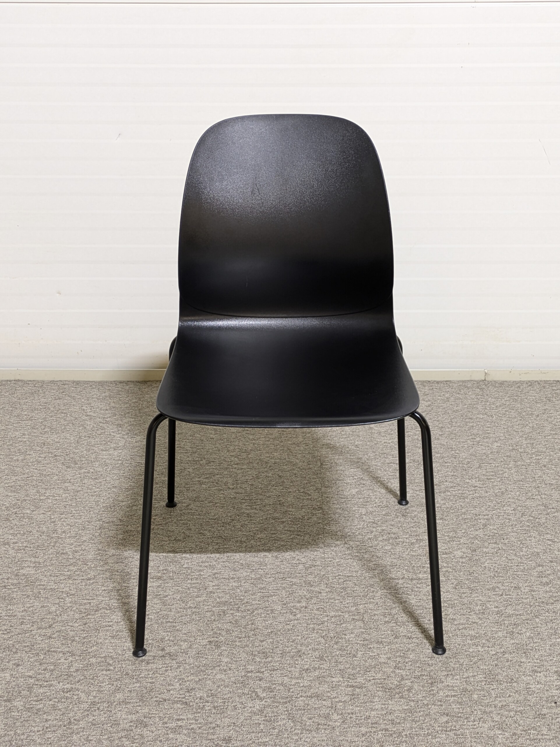 Sæde og ryg i plast (sort). 4-bensstel i metal (sort).