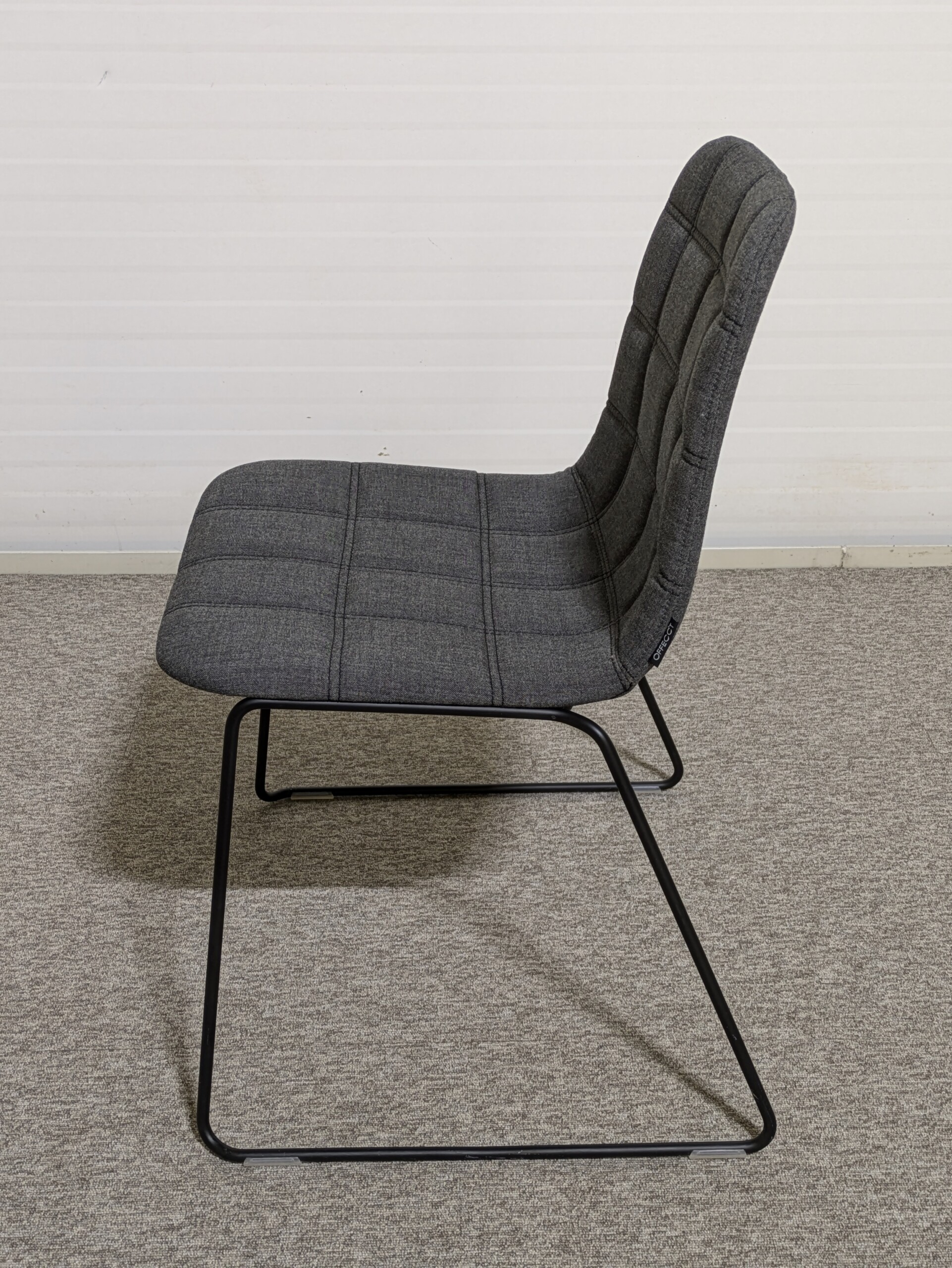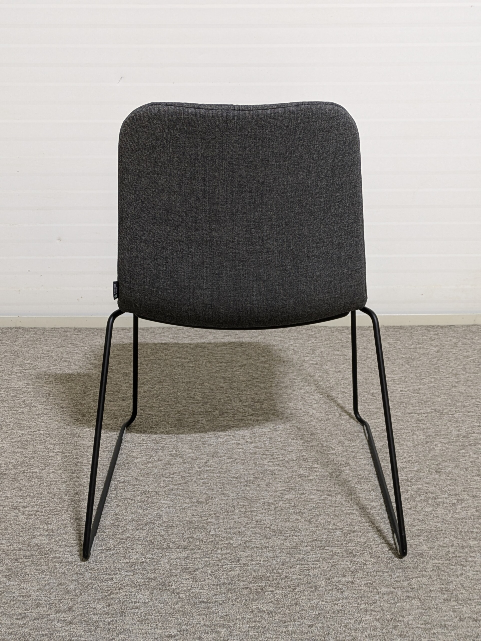 Sæde og ryg i stof (grå). Medestel i metal (sort).