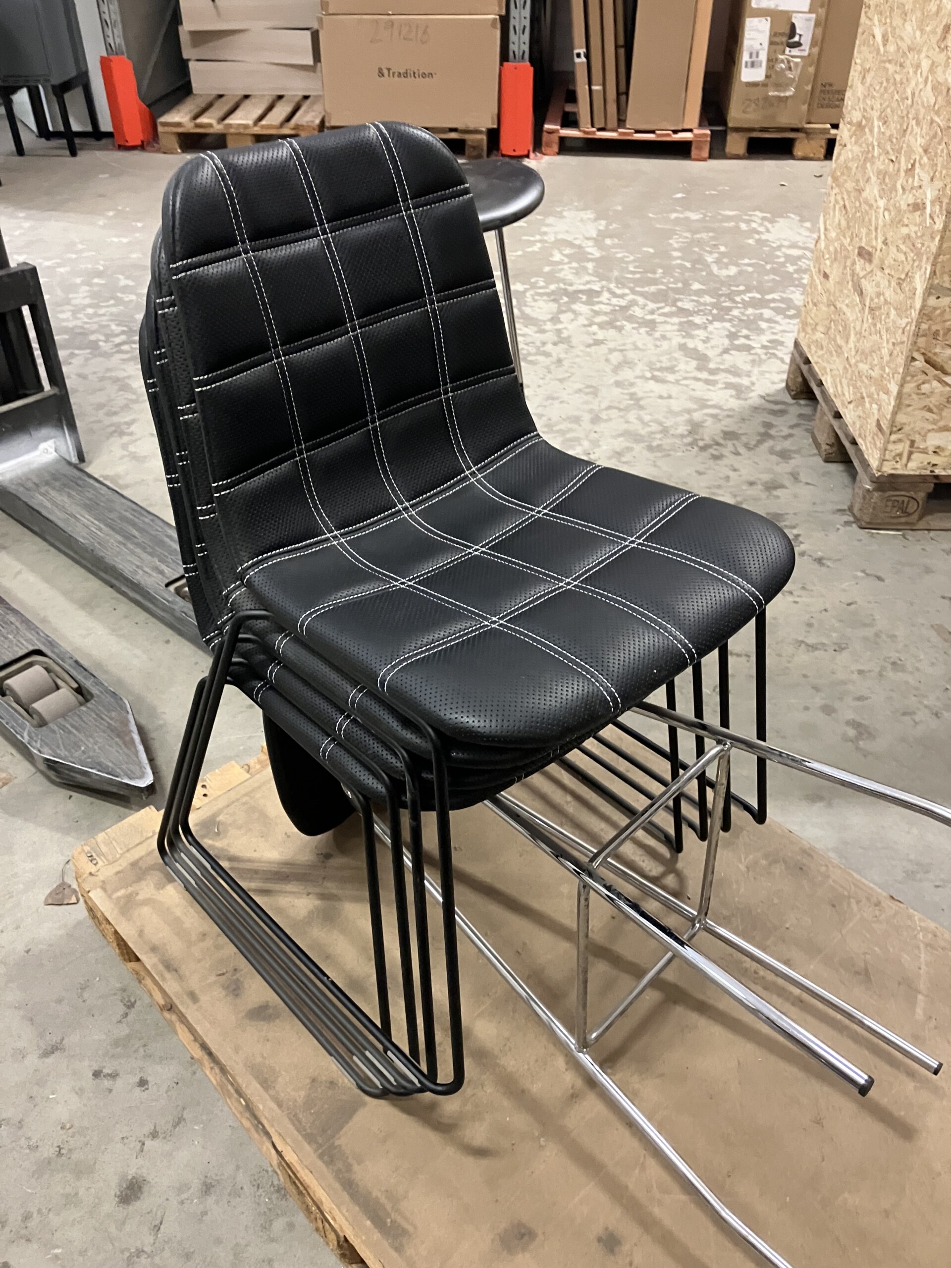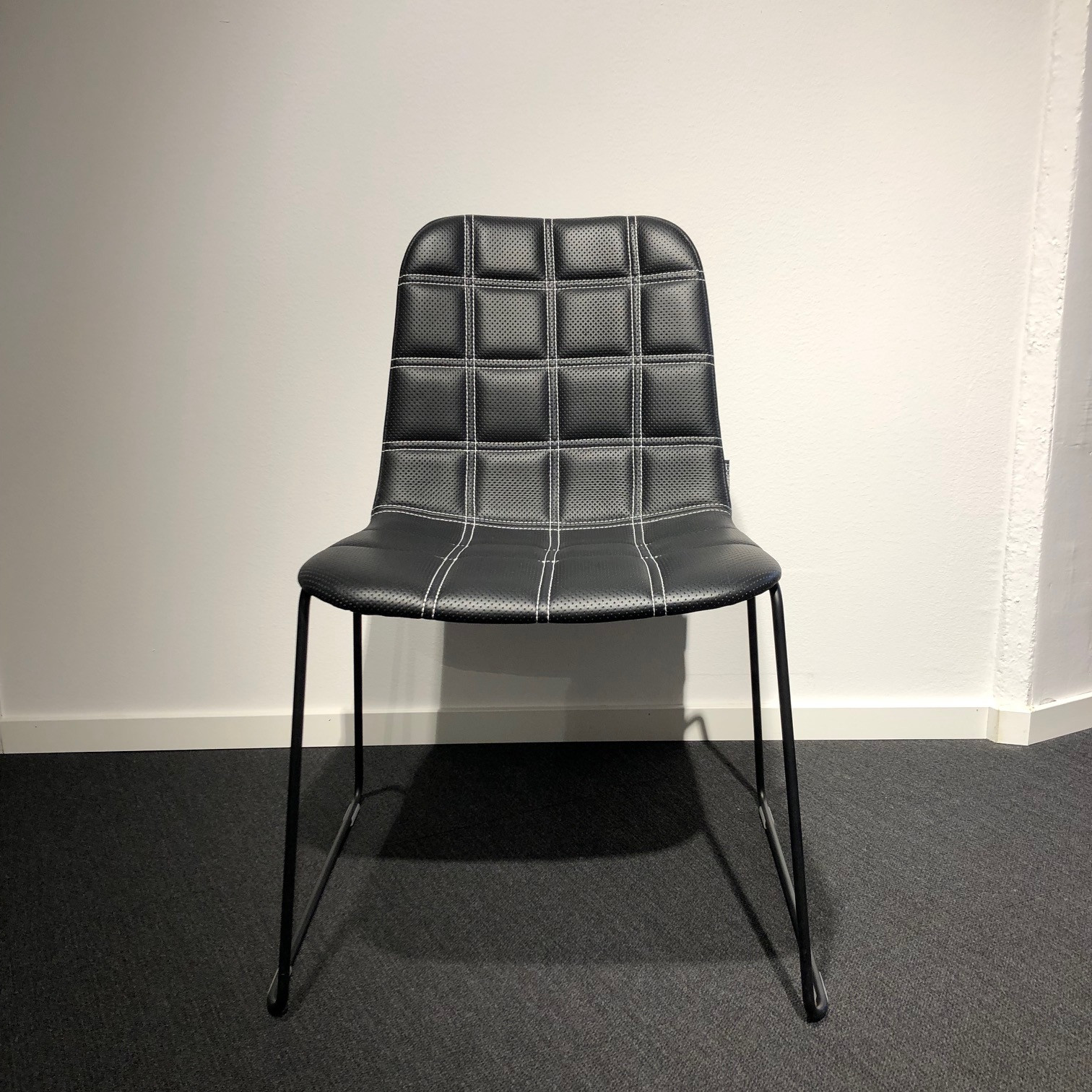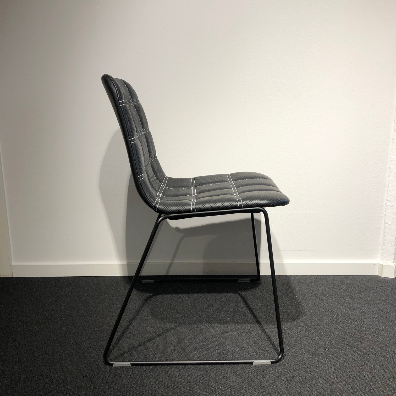 Sæde og ryg i læder (sort). Medestel i metal (sort).