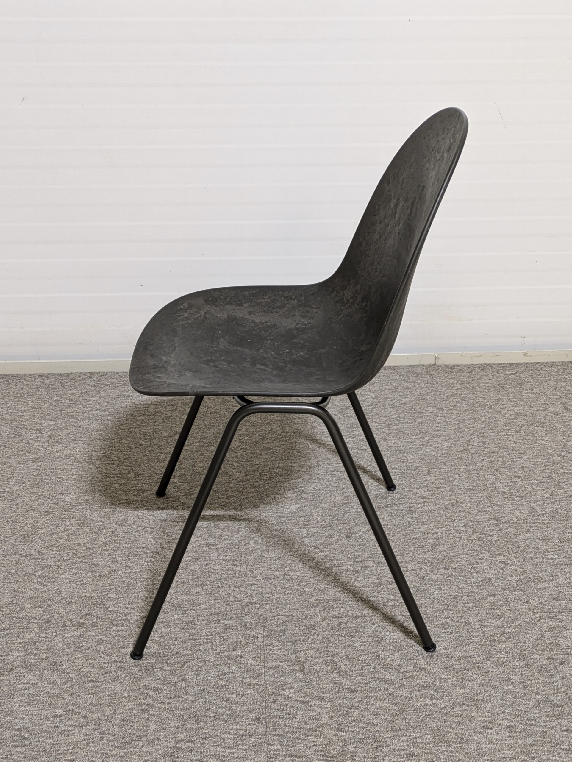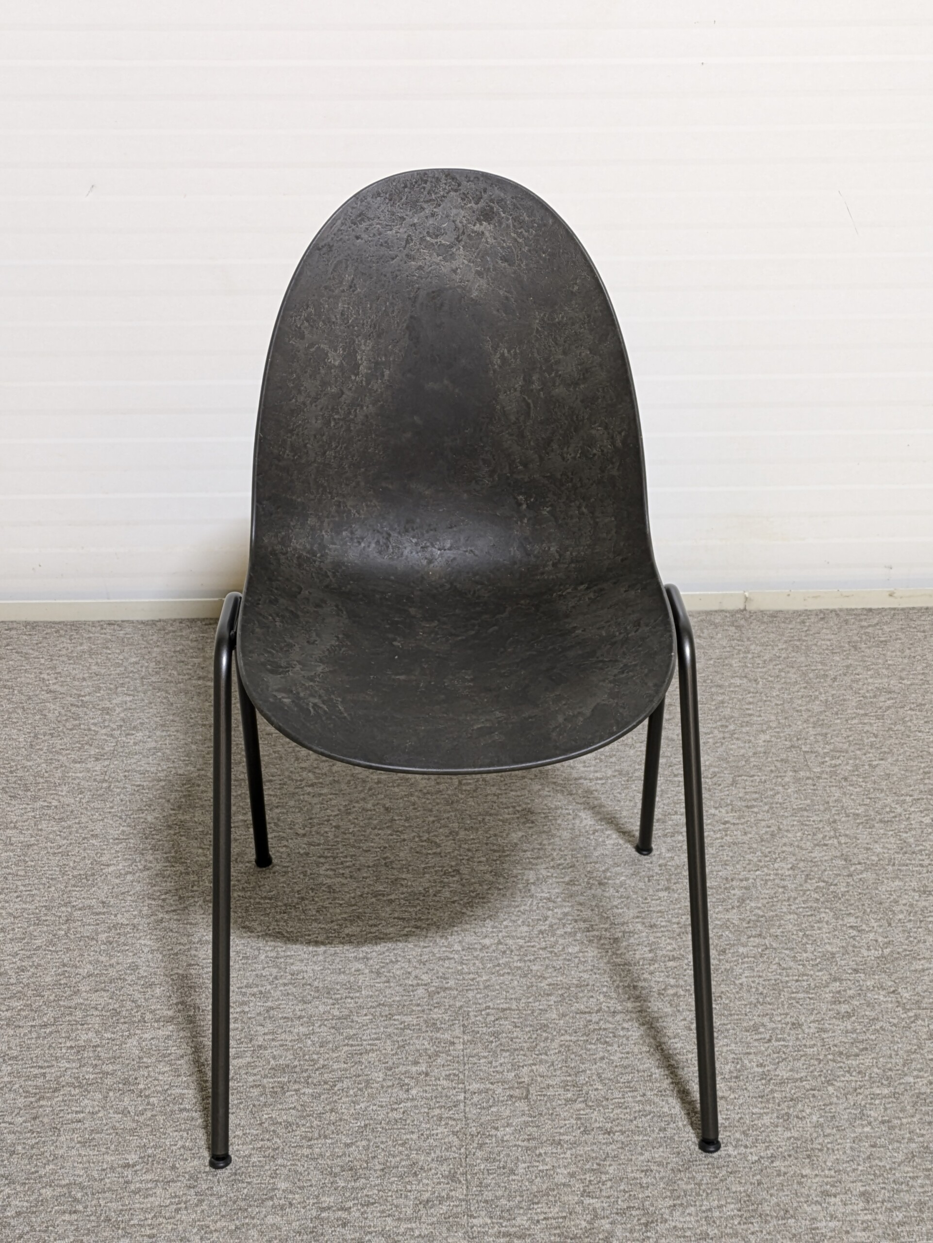 Sæde og ryg i plast (sort). 4-bensstel i metal (sort).