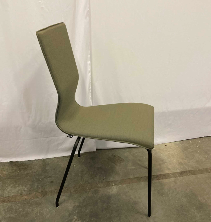 Sæde og ryg i stof (grøn). 4-bensstel i metal (sort).