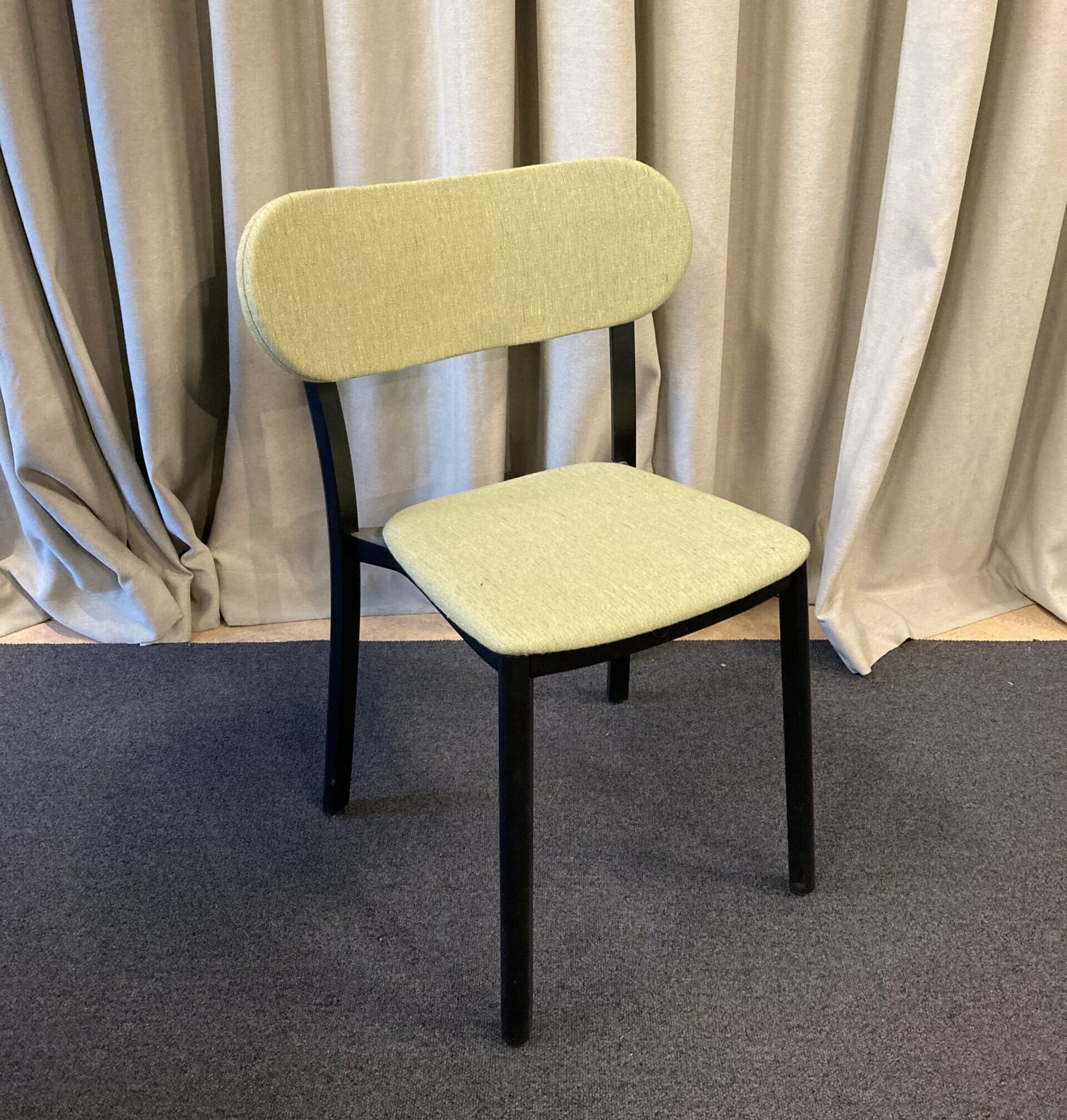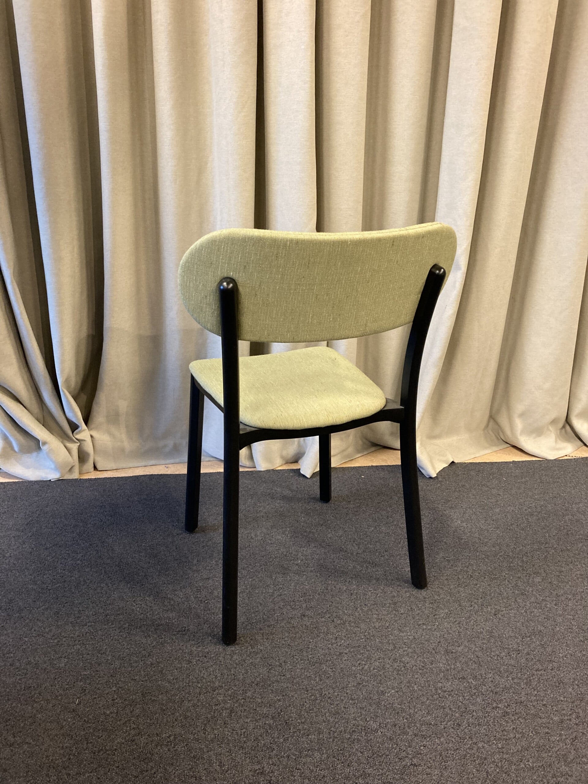 Sæde og ryg i stof (grøn). 4-bensstel i træ (sort).