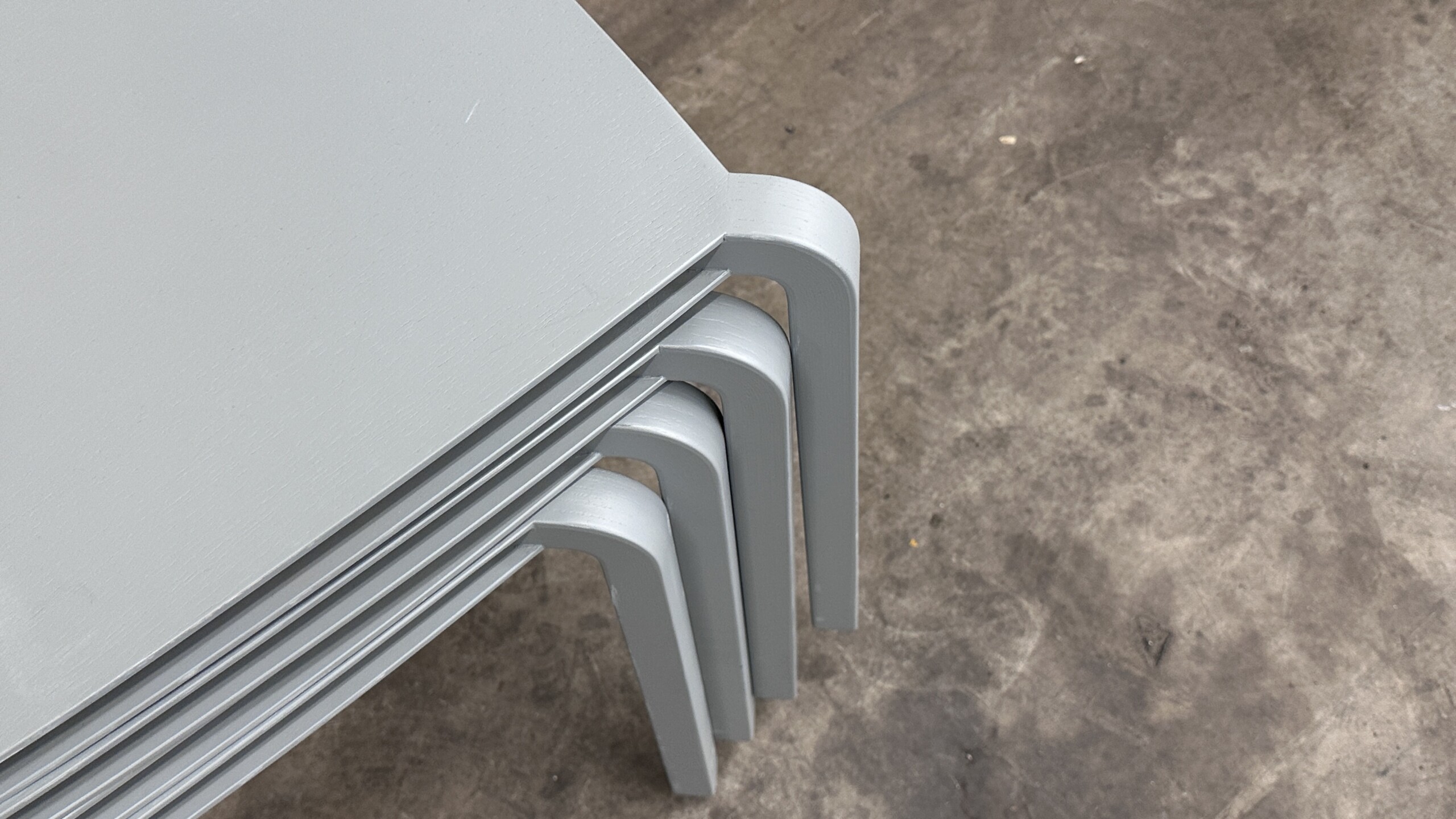 Sæde, ryg og 4-bensstel i træ (grå).