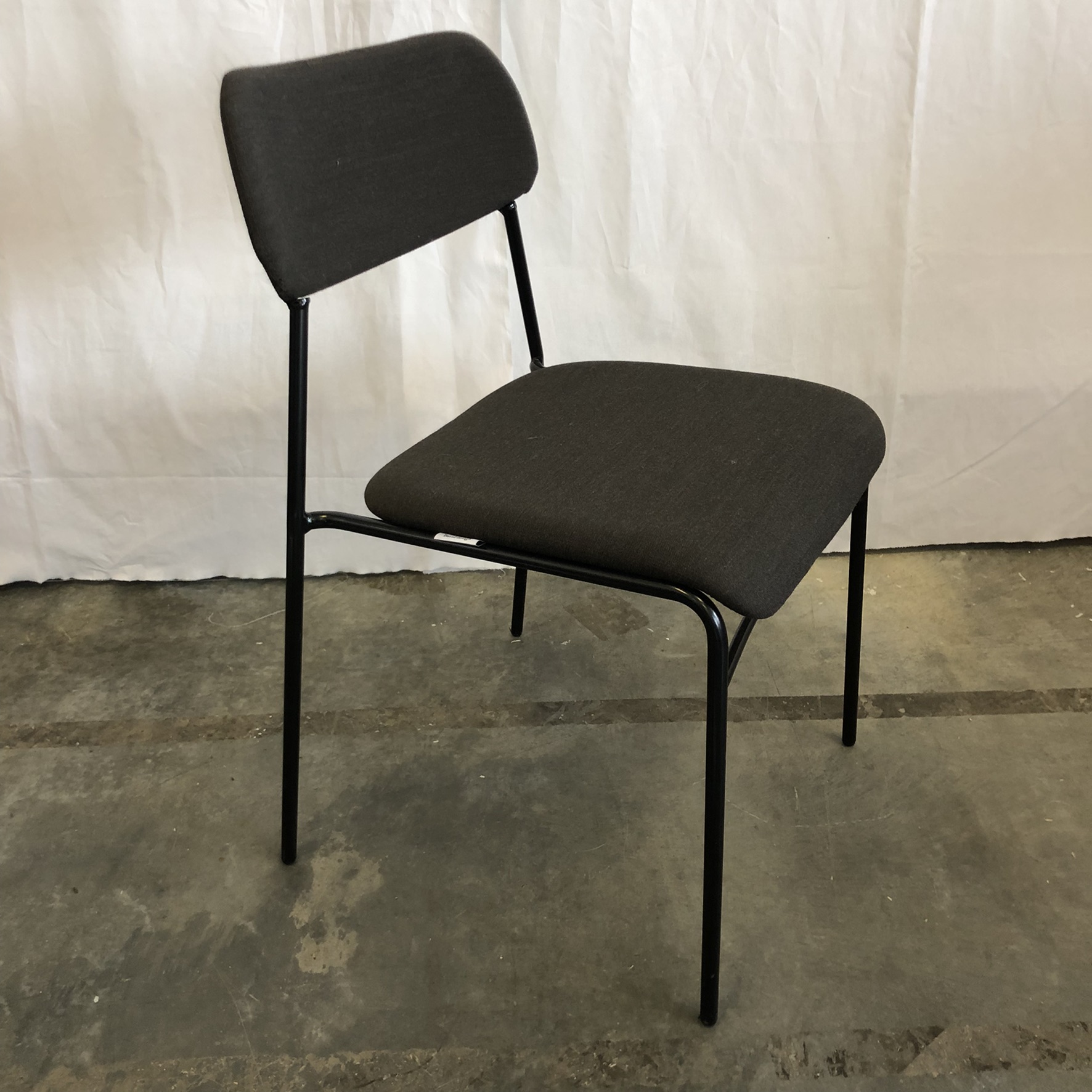 Sæde og ryg i stof (sort). 4-bensstel i metal (sort).