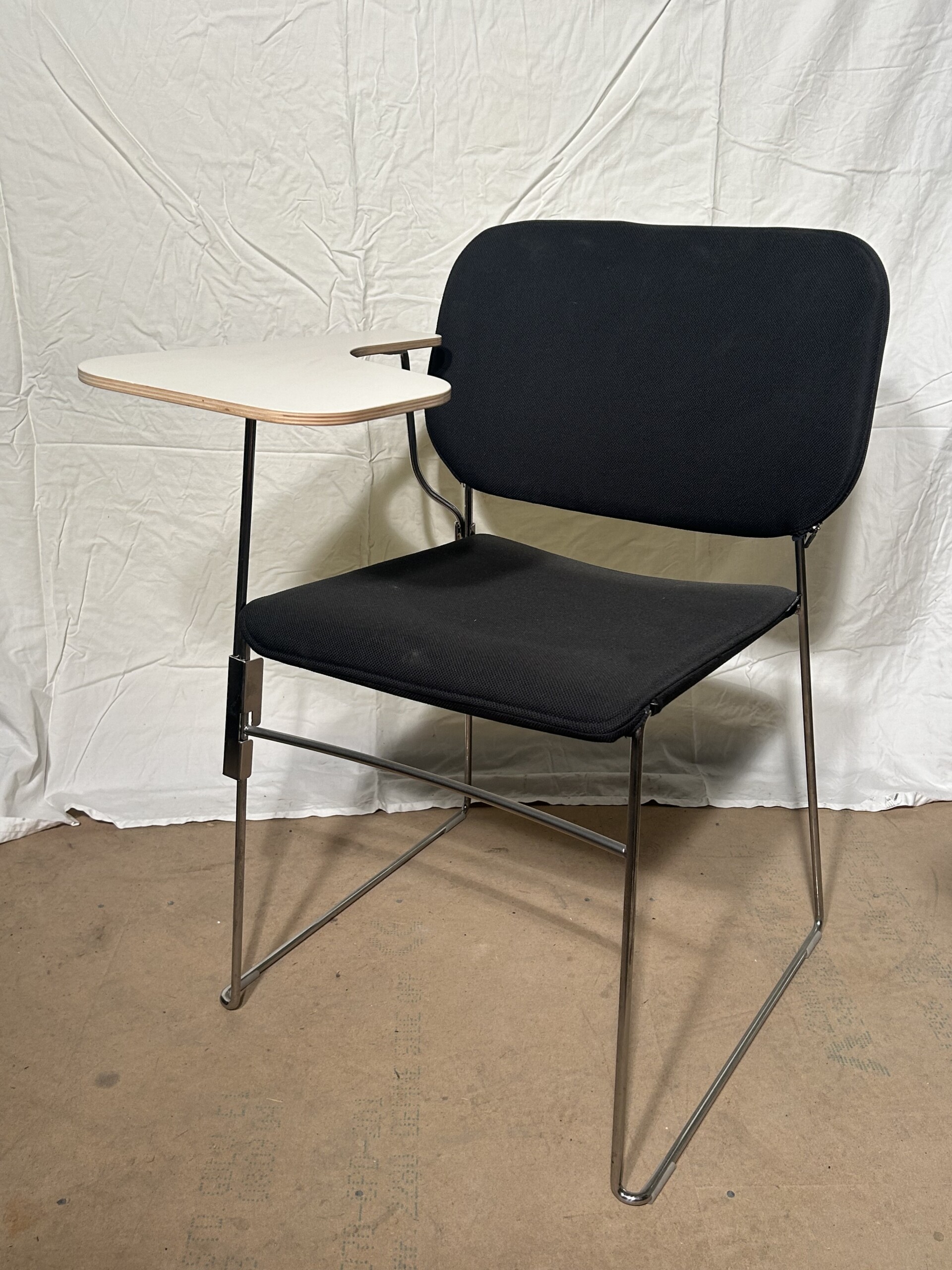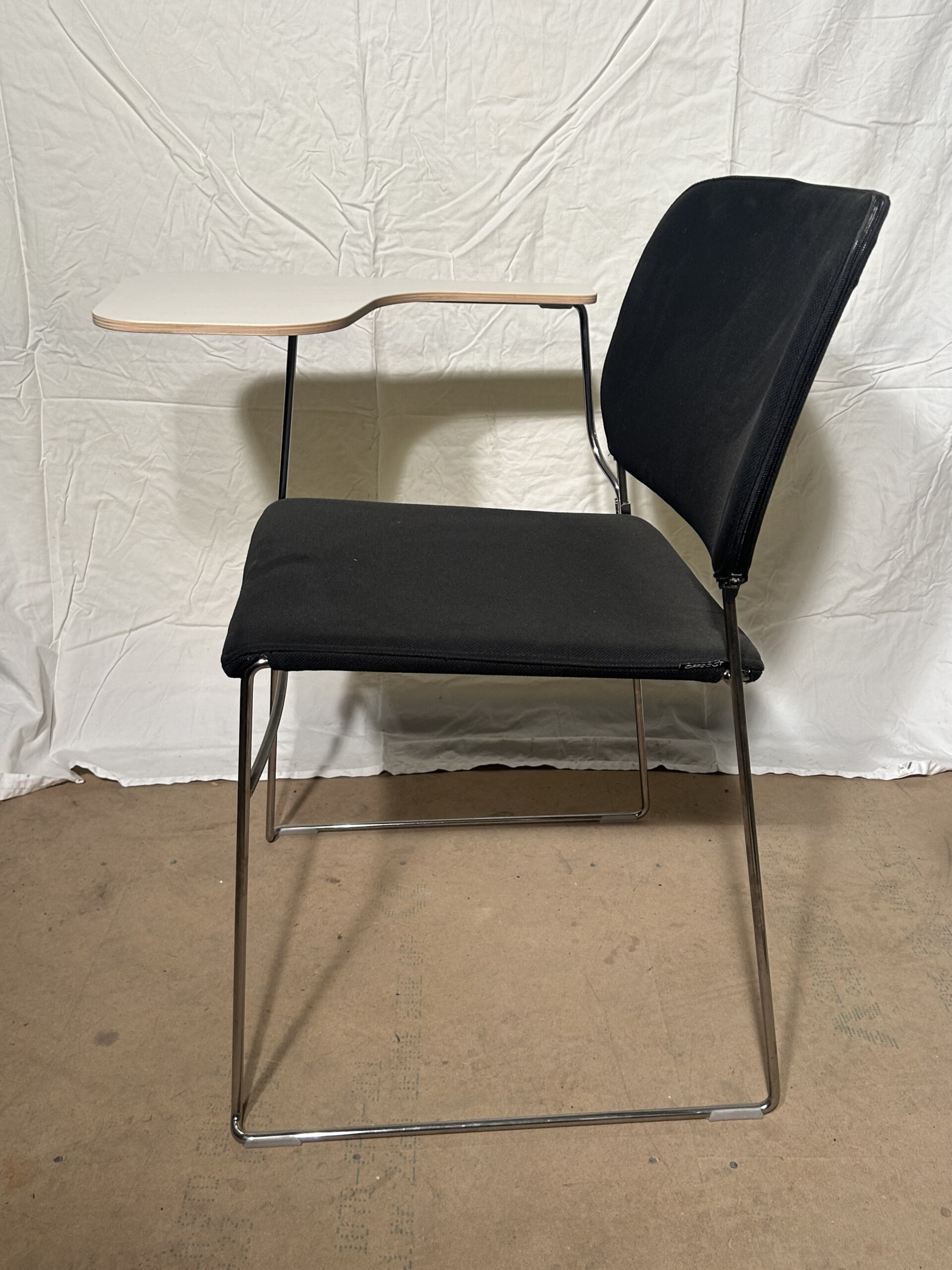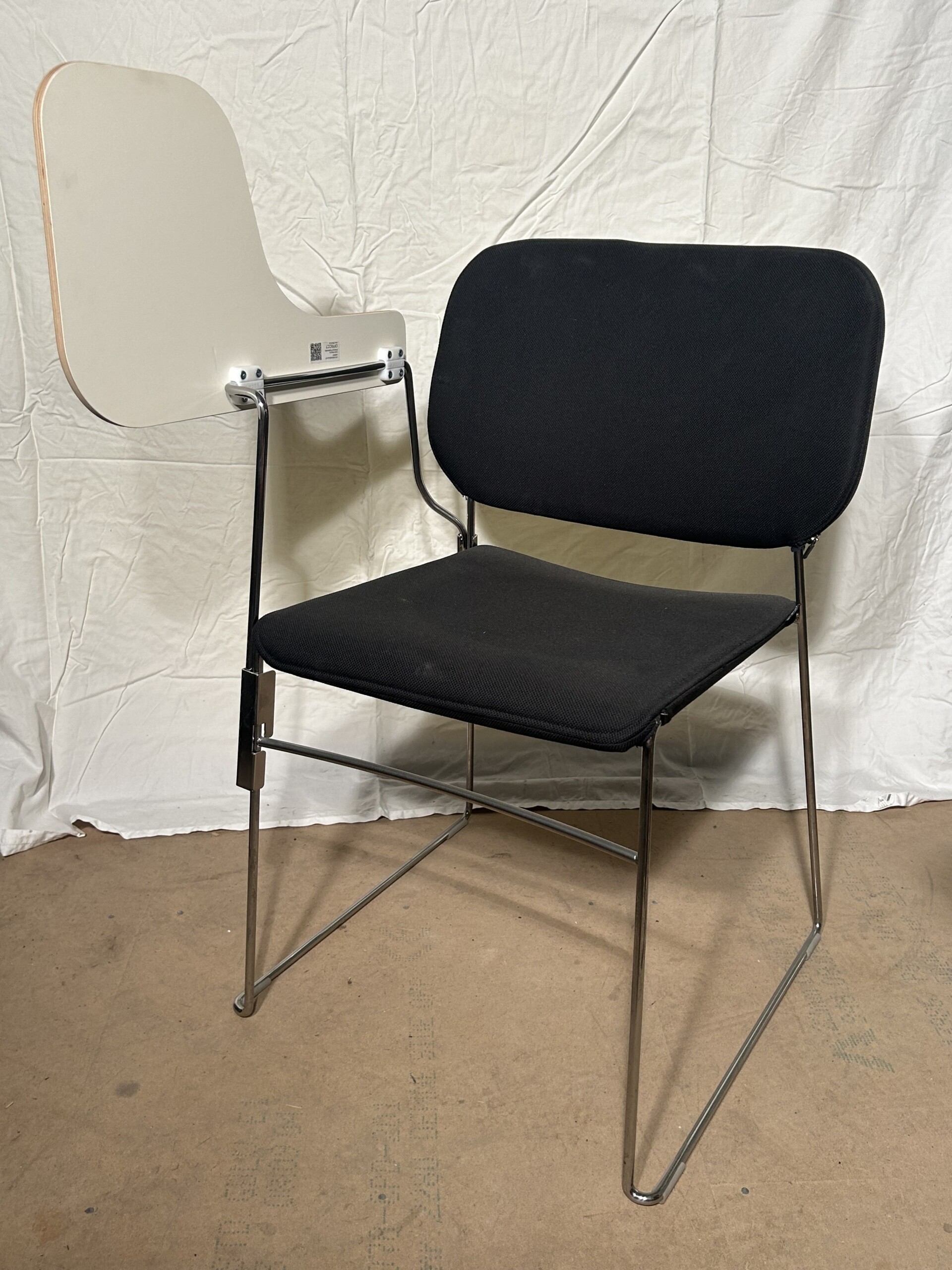 Sæde og ryg i stof (sort). Medestel i metal (krom).