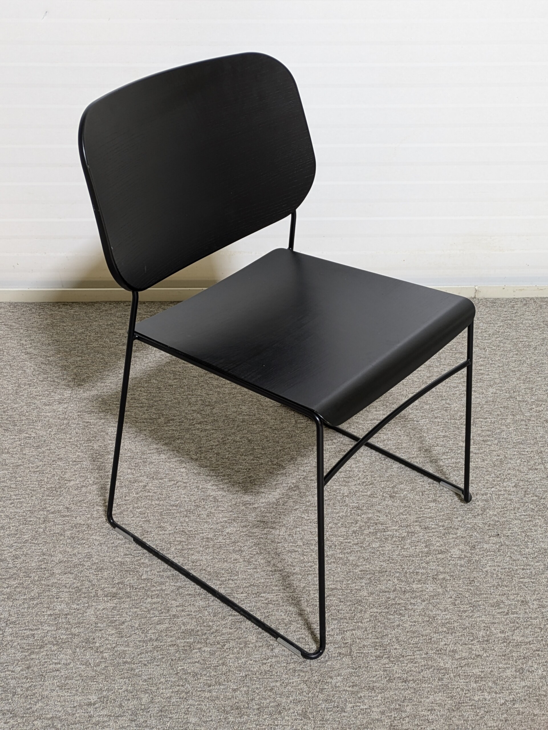 Sæde og ryg i træ (sort). Medestel i metal (sort).