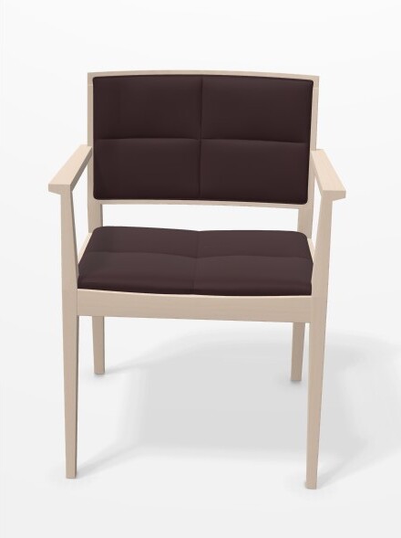 Sæde og ryg i læder (brun). 4-bensstel i træ.
