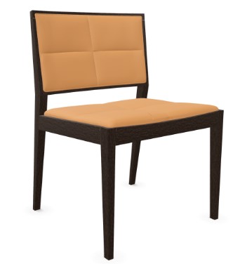 Sæde og ryg i læder. 4-bensstel i træ (brun).