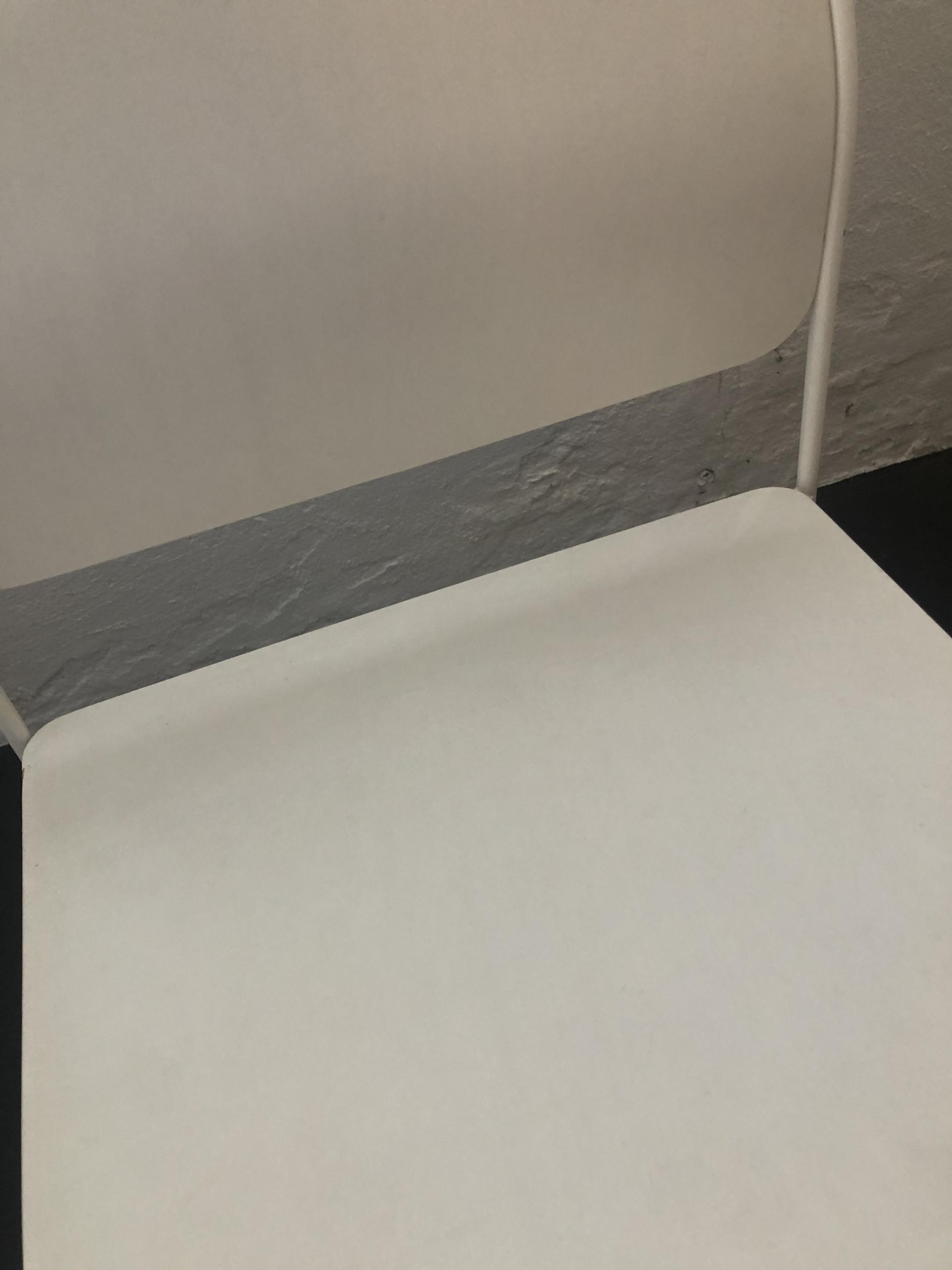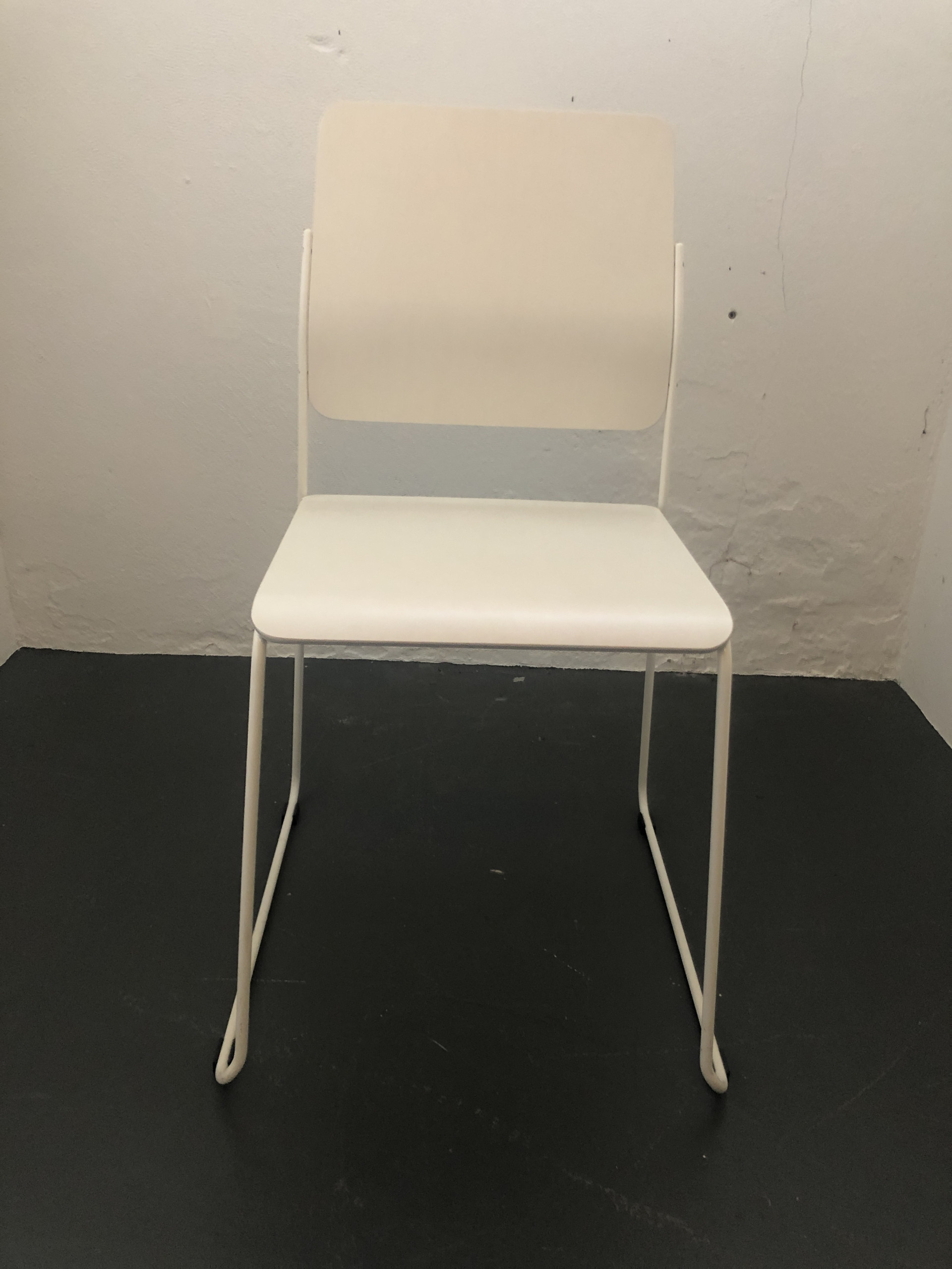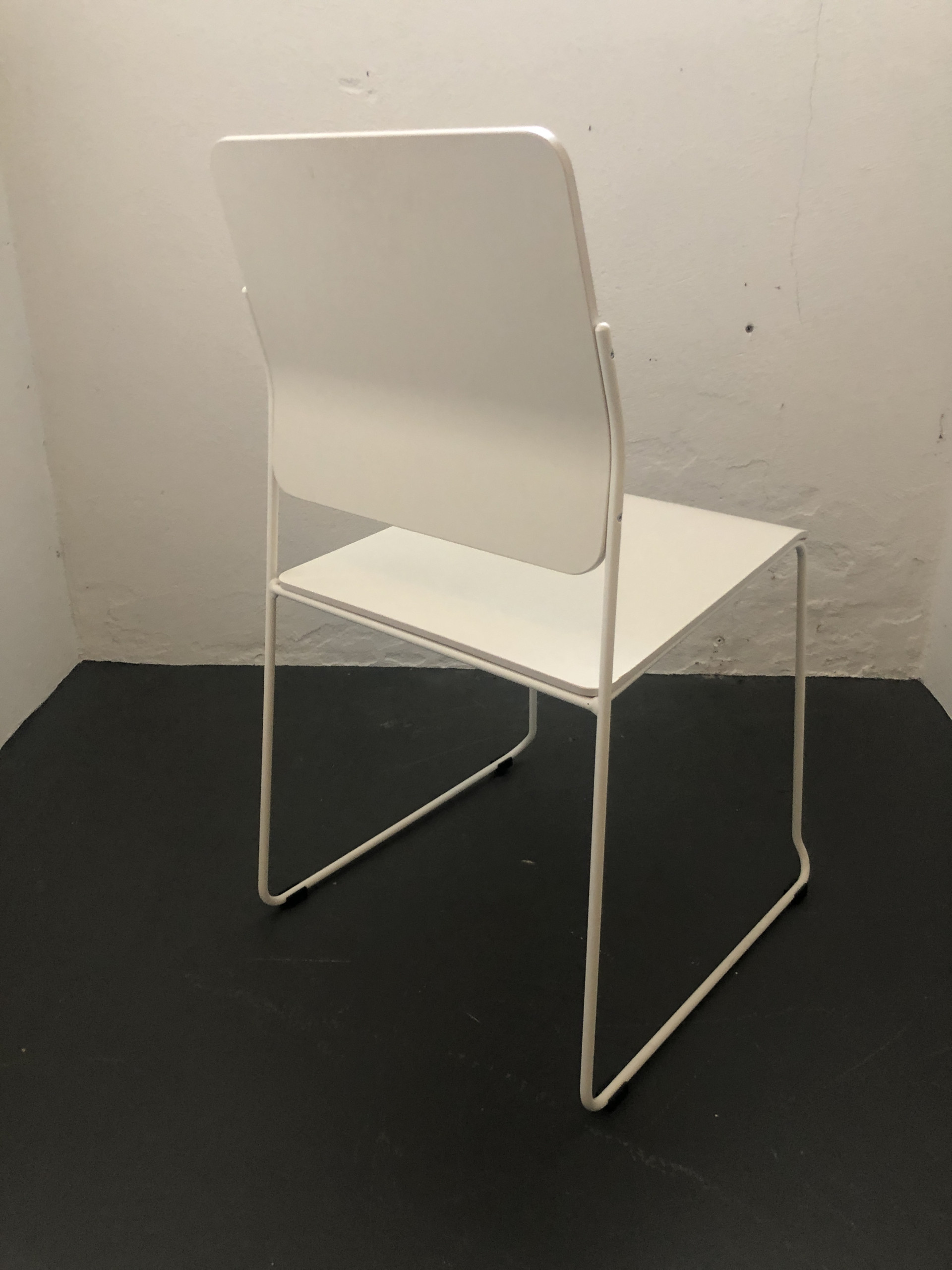 Sæde og ryg i laminat (hvid). Medestel i metal (hvid).