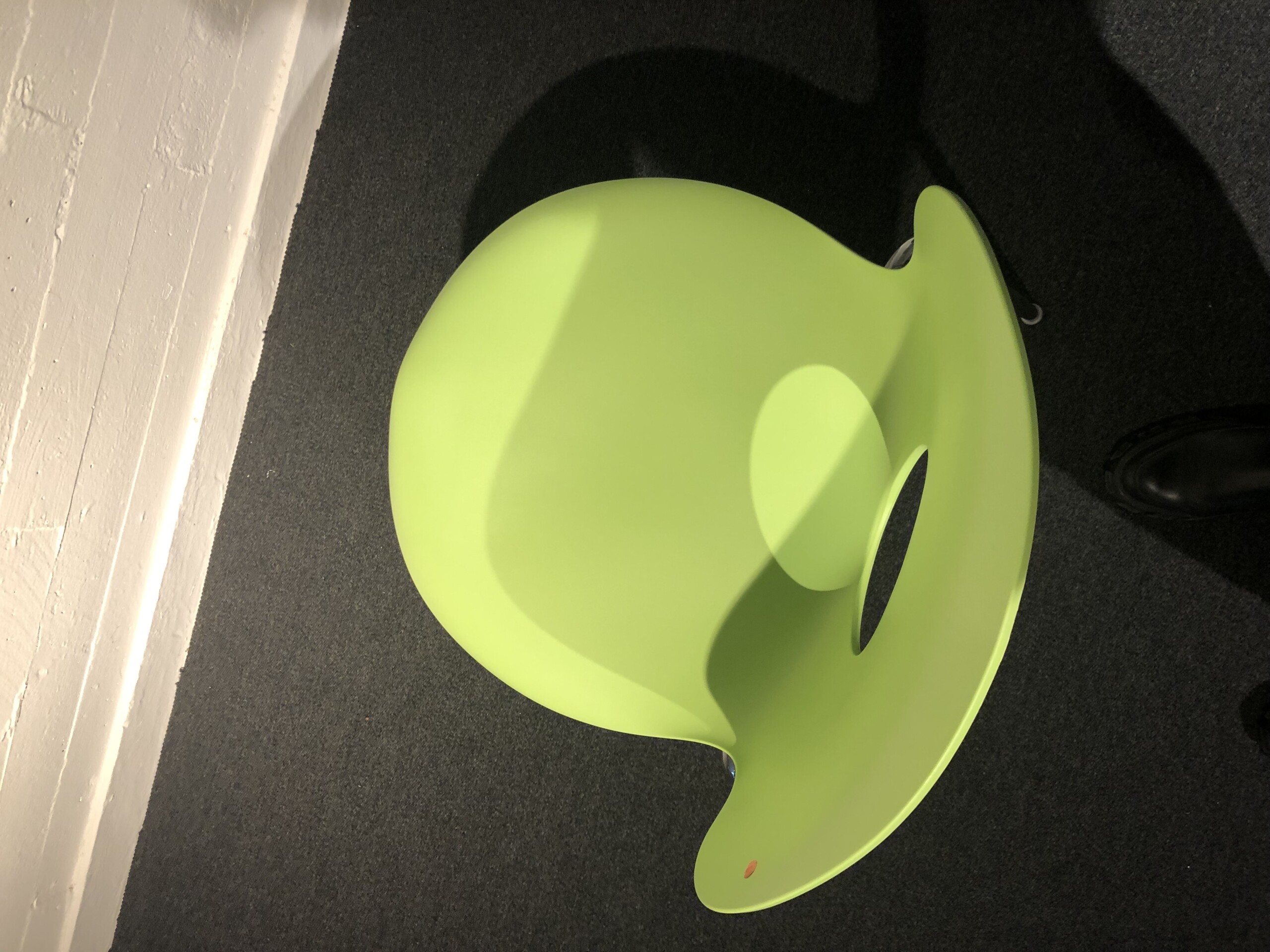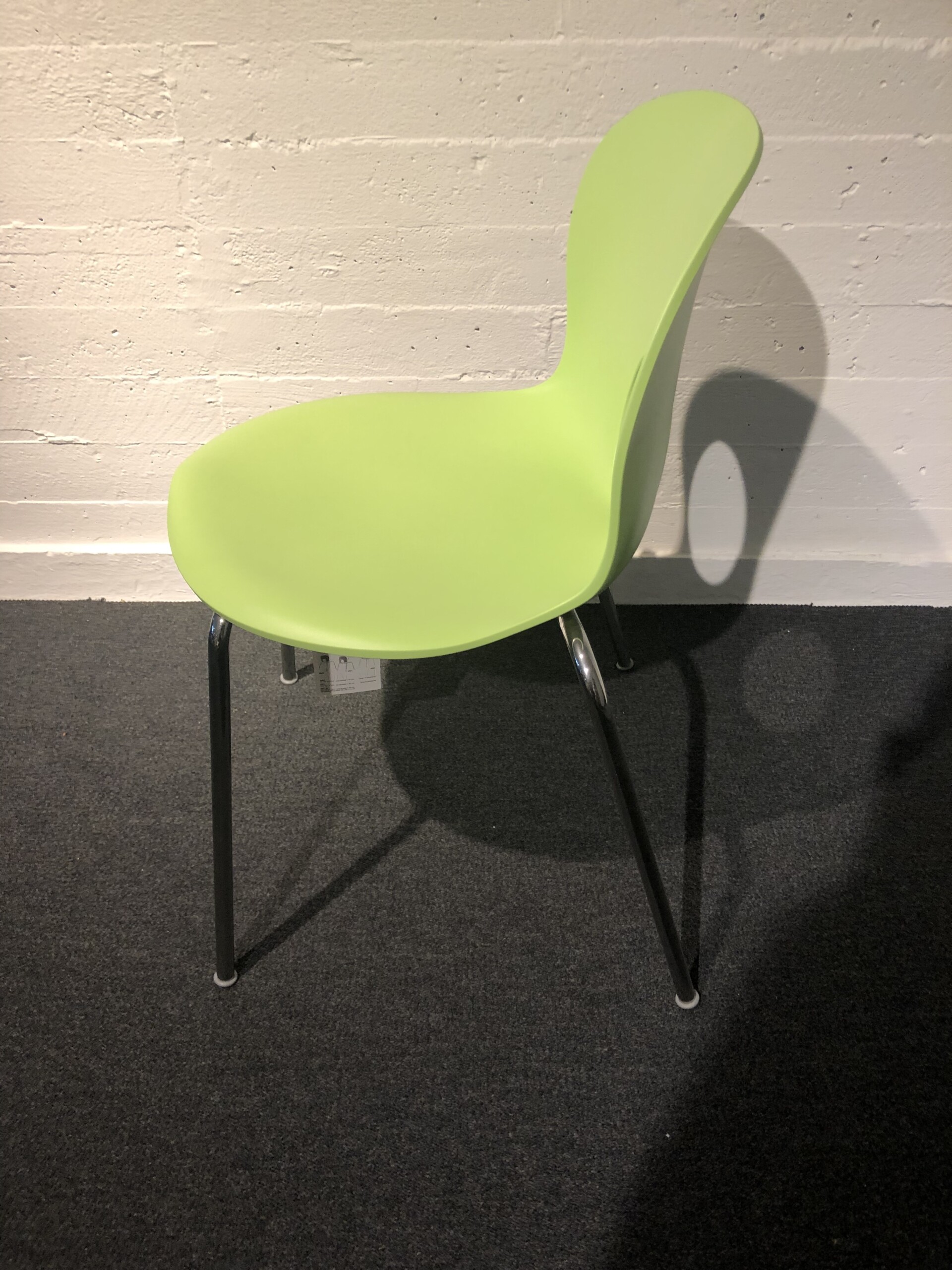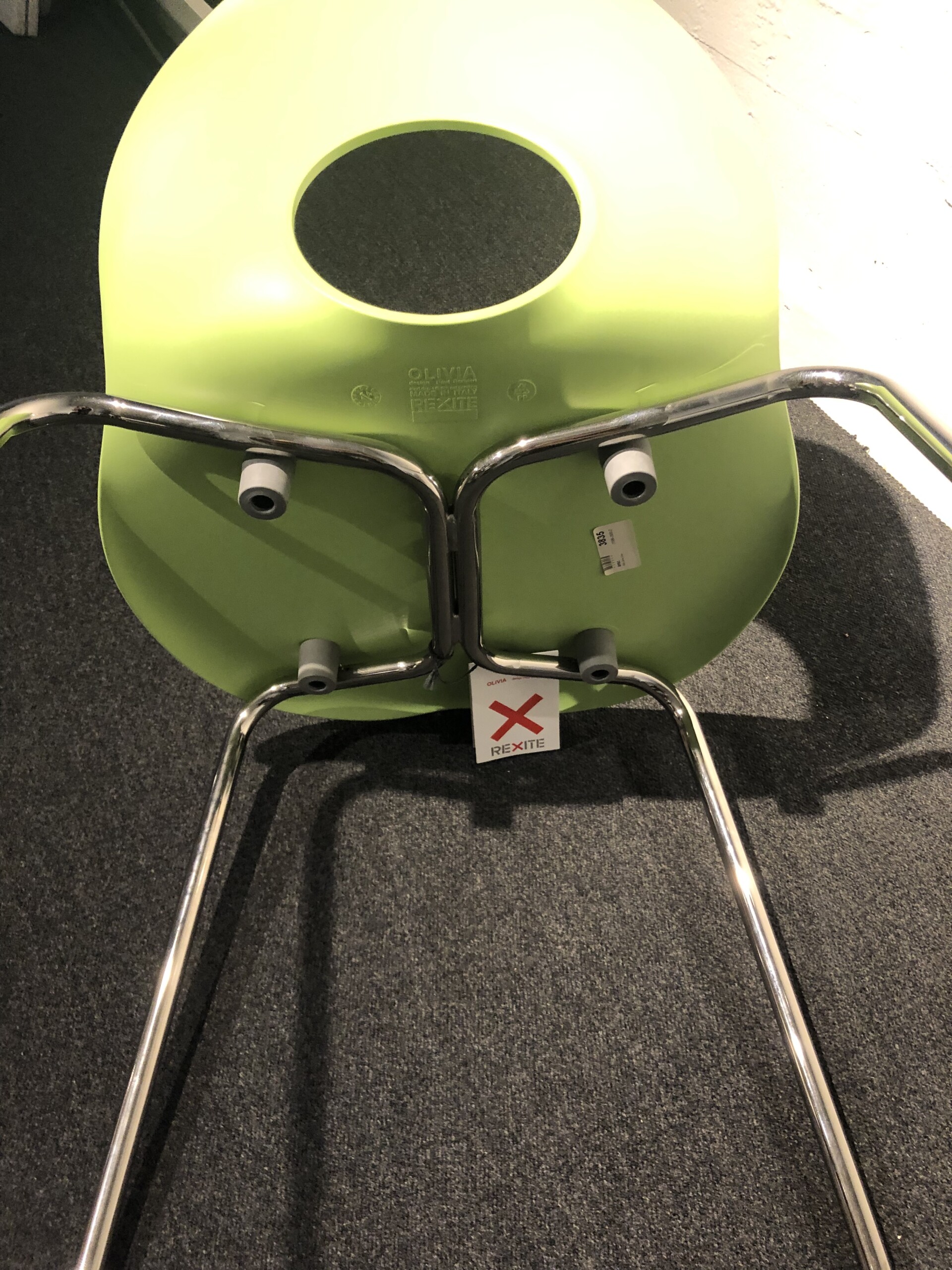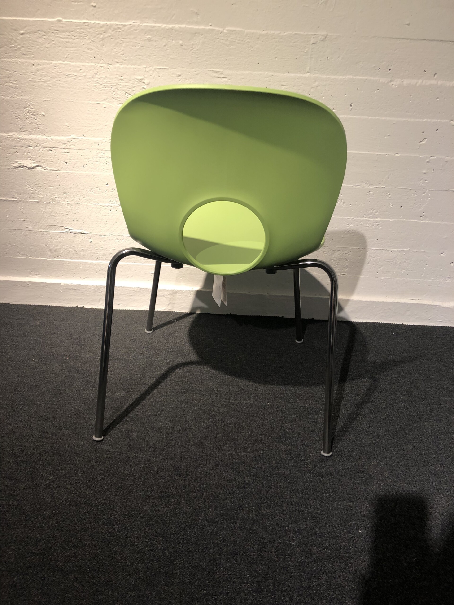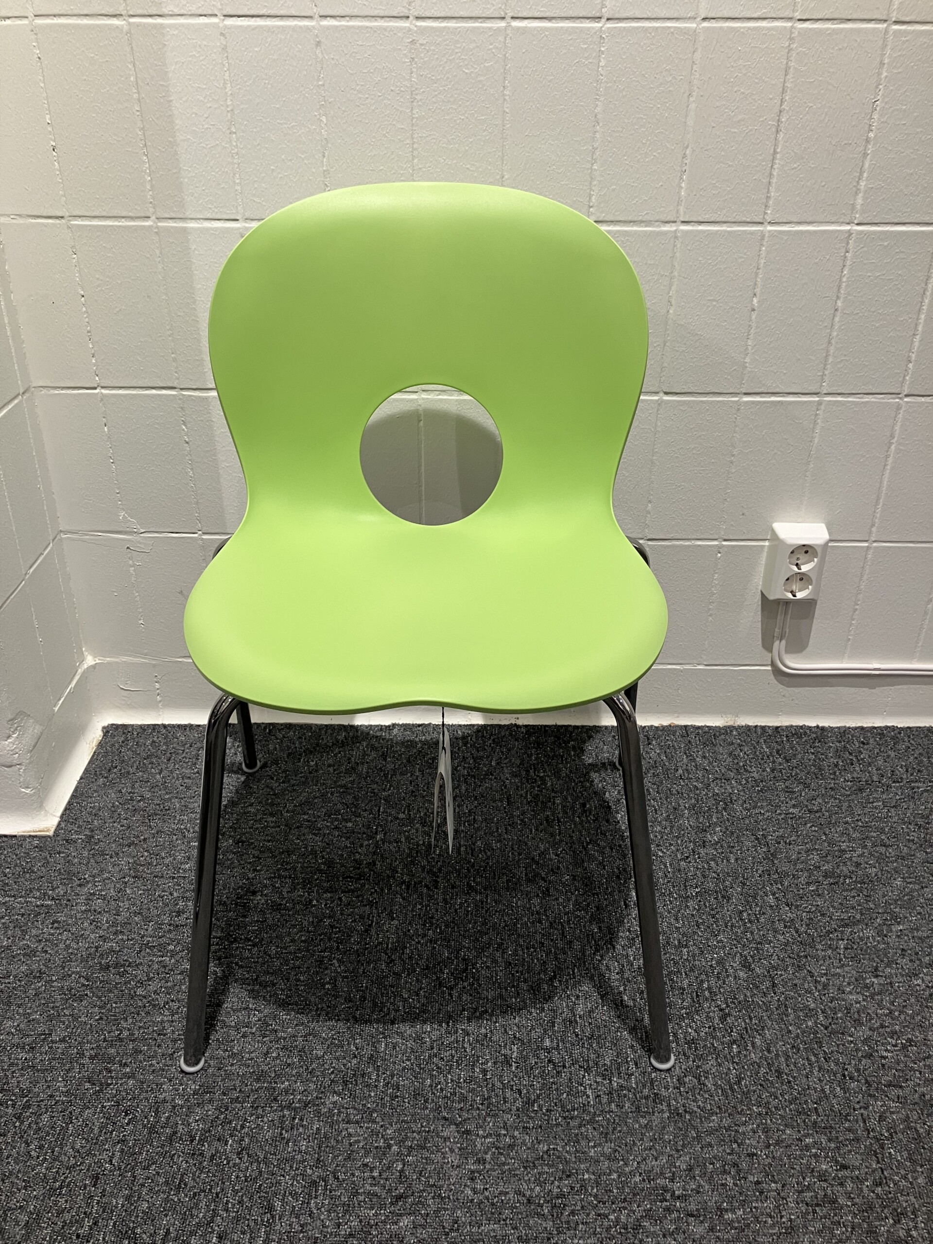 Sæde og ryg i plast (grøn). 4-bensstel i metal (grøn).