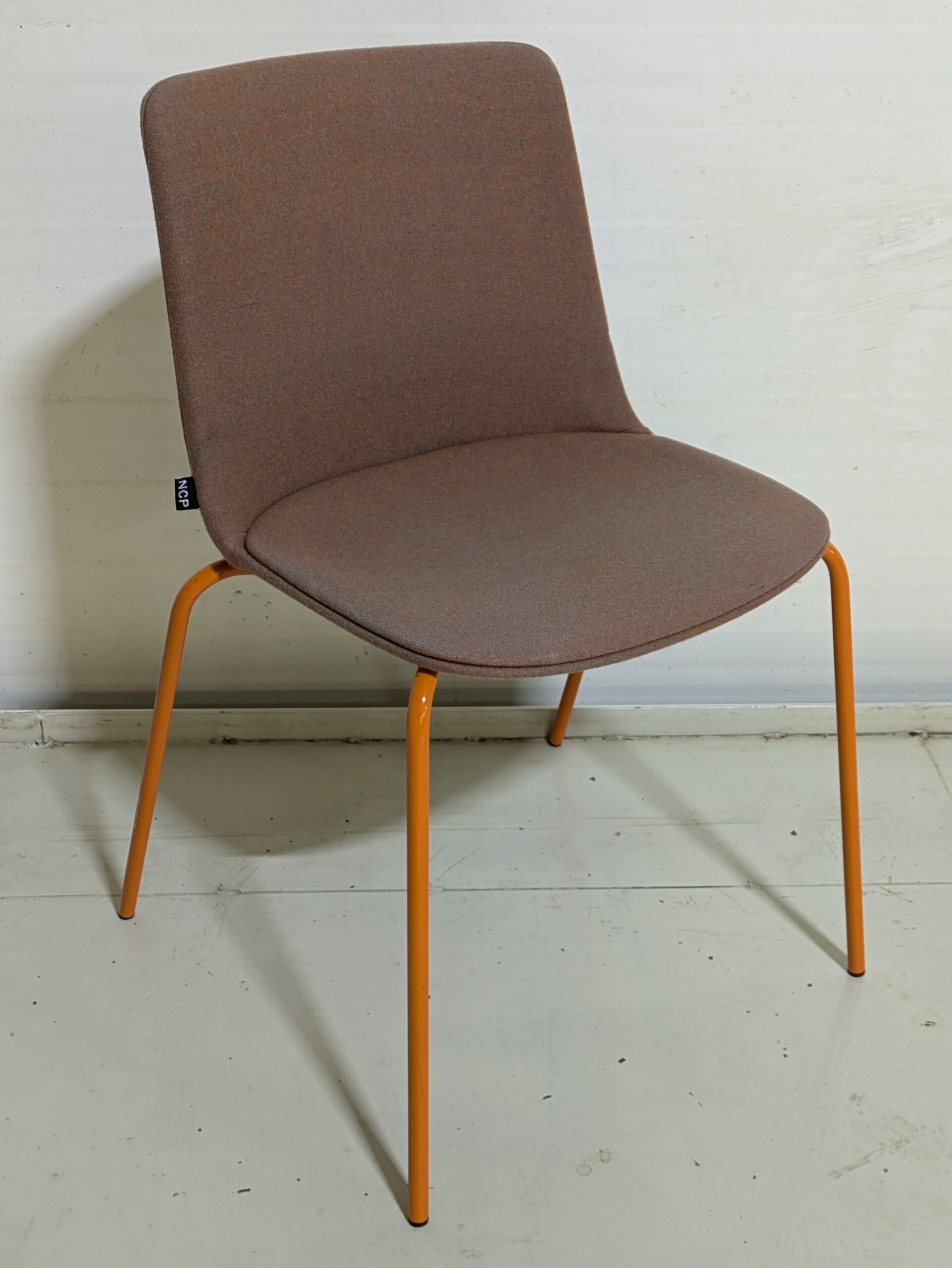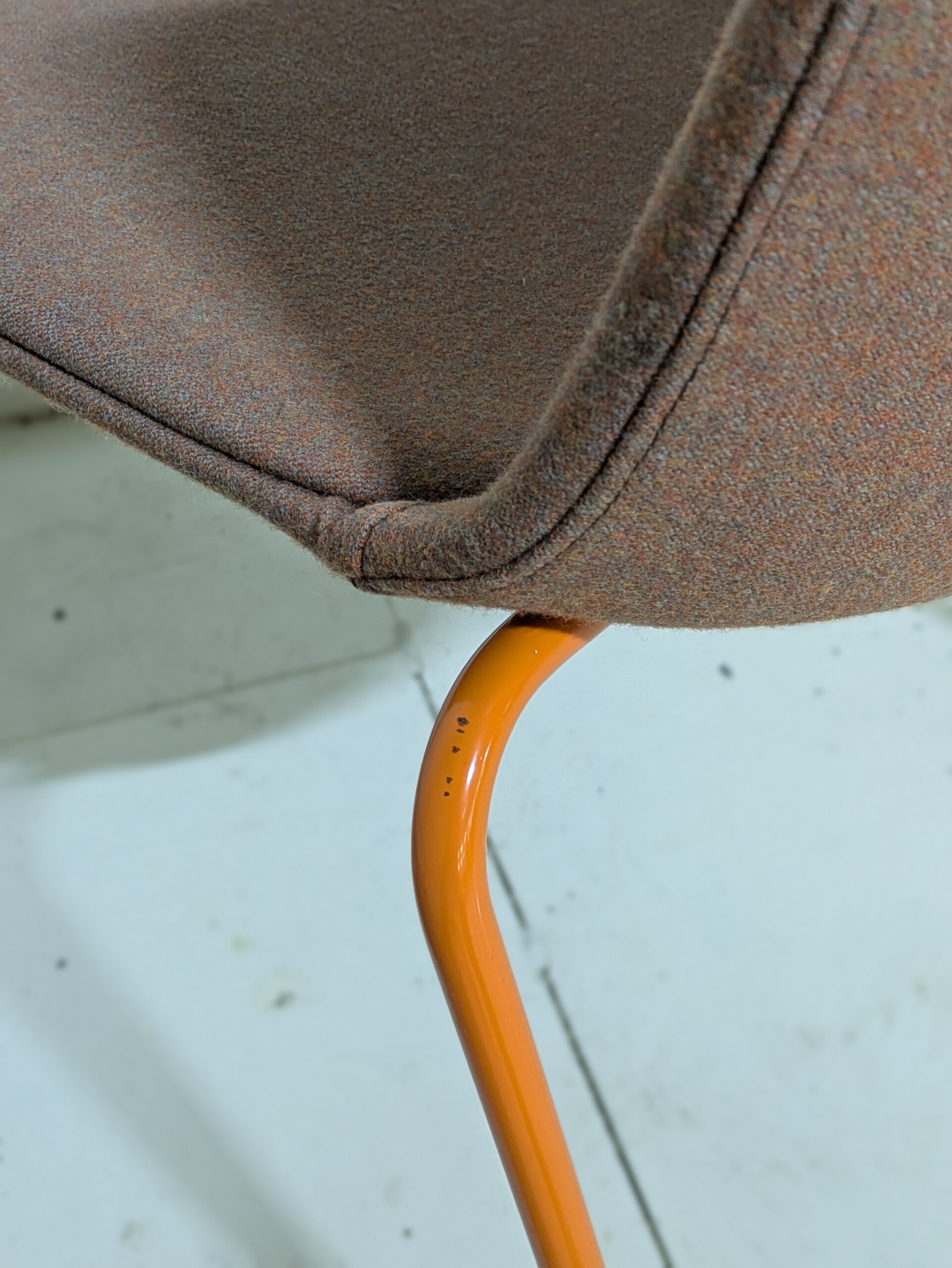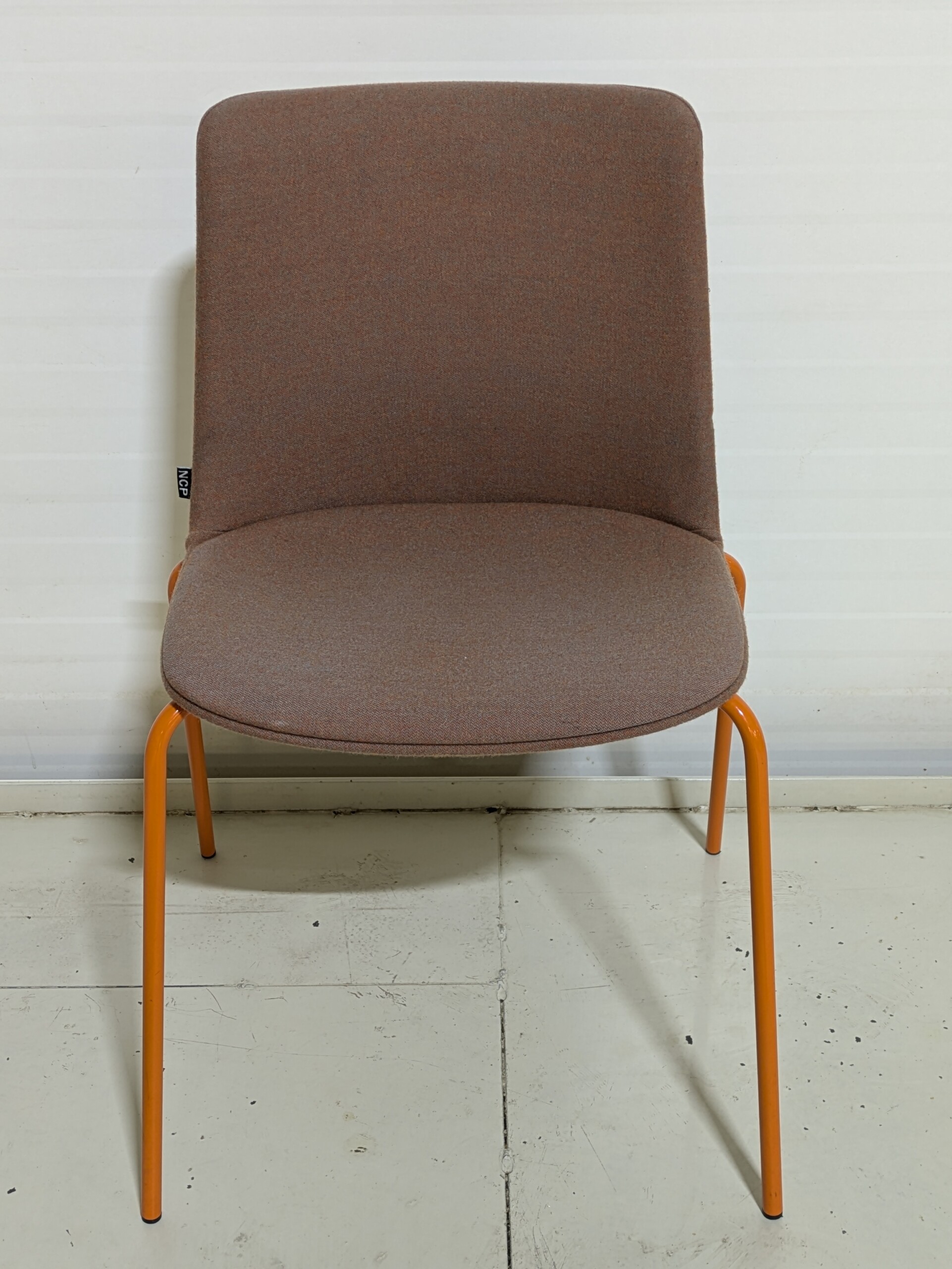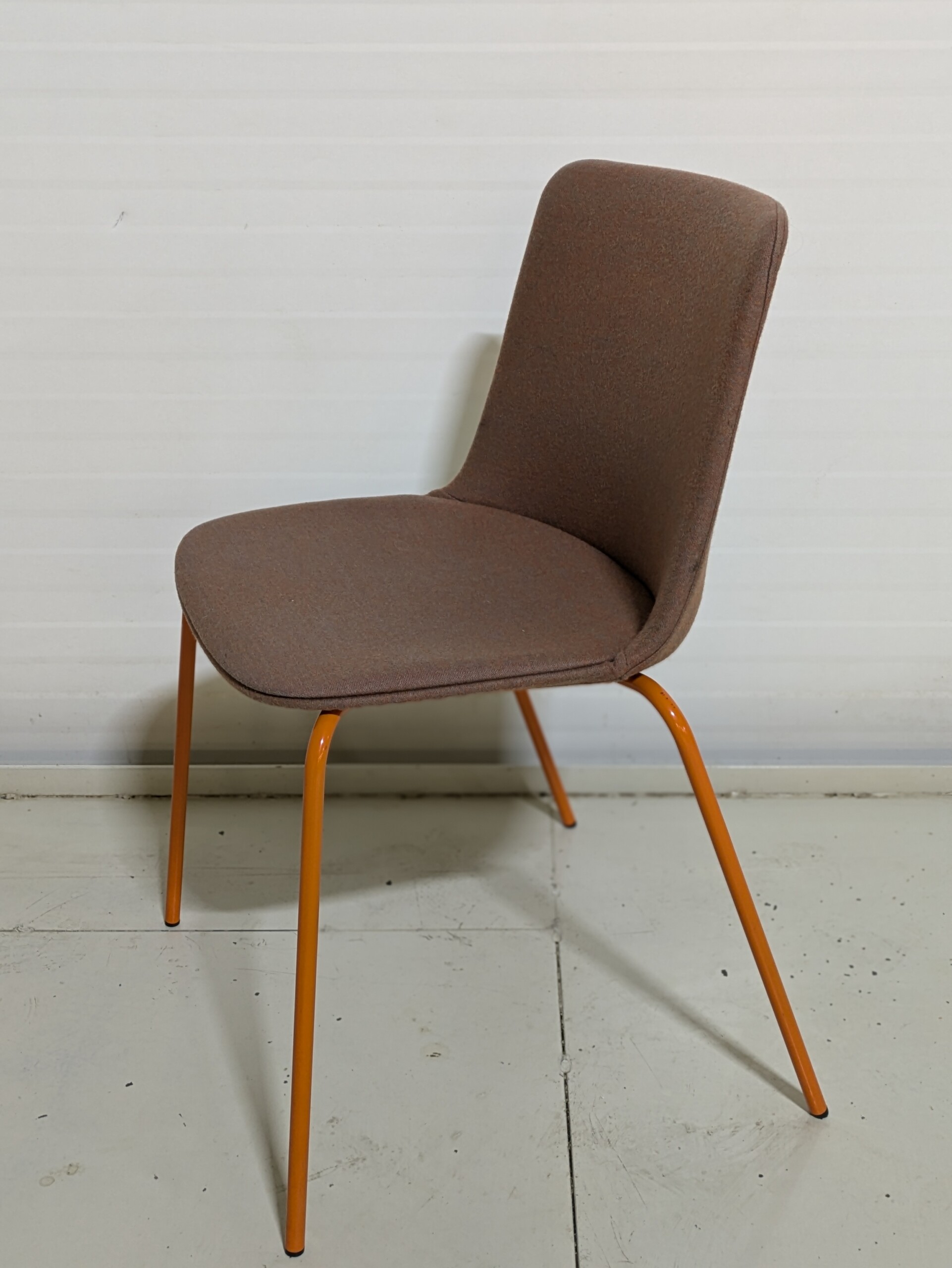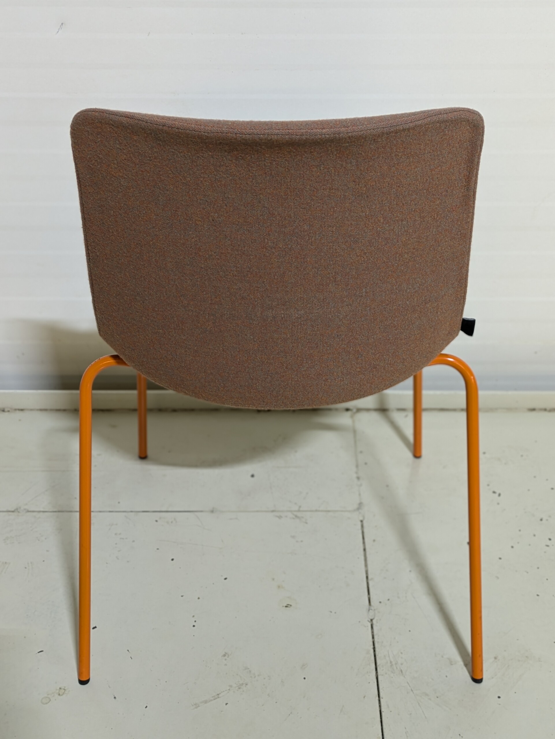Sæde og ryg i stof (orange). 4-bensstel i metal (orange).
