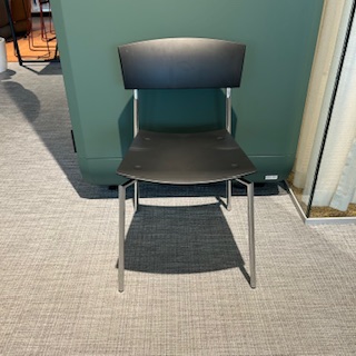 Sæde og ryg i plast (sort). 4-bensstel i metal (krom).
