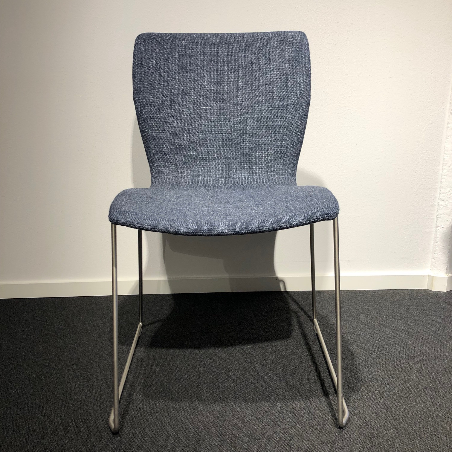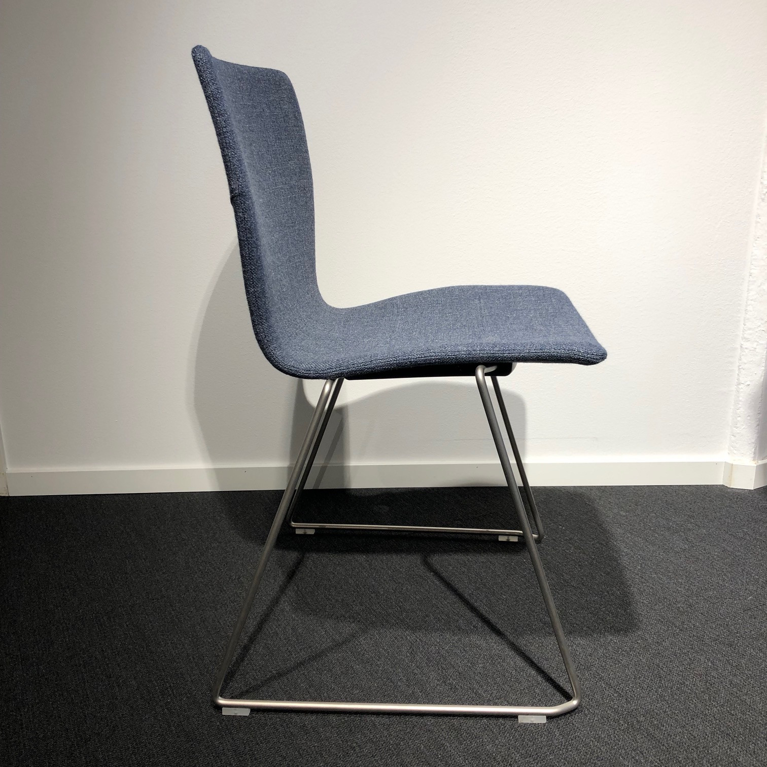 Sæde og ryg i stof (blå). Medestel i metal (rustfri).