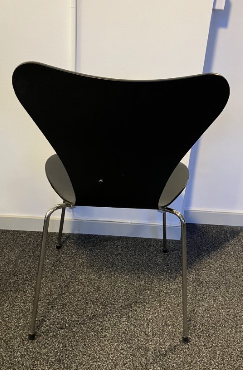 Sæde og ryg i laminat (sort). 4-bensstel i metal (krom).