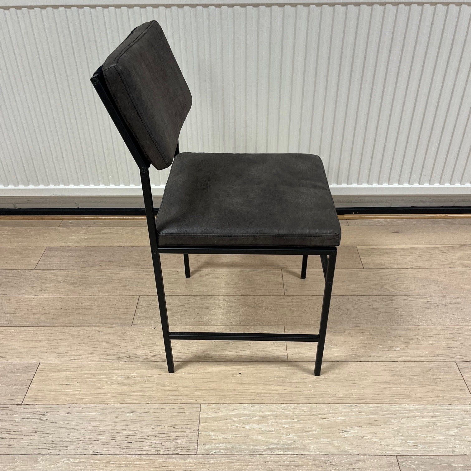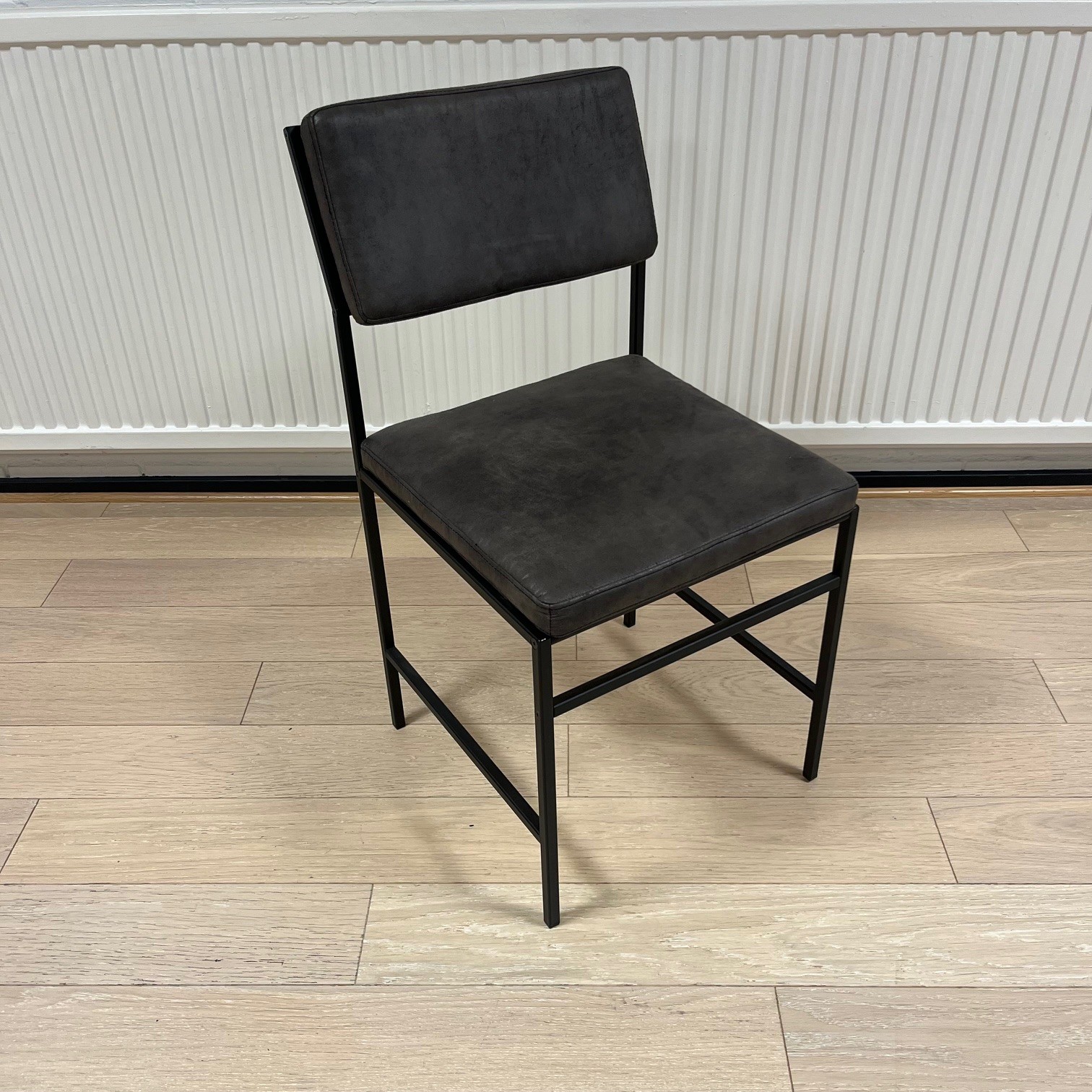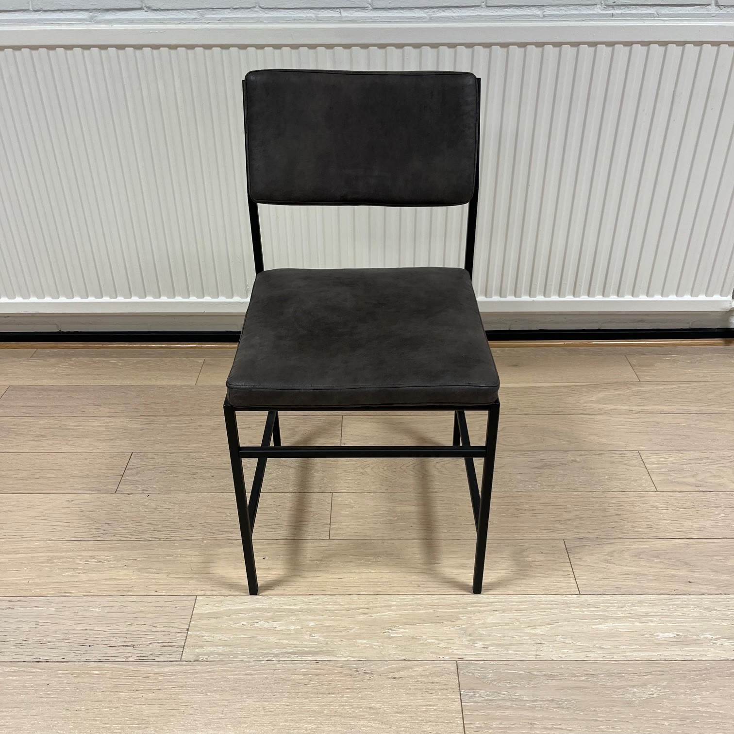 Sæde og ryg i læder (brun). 4-bensstel i metal (sort).
