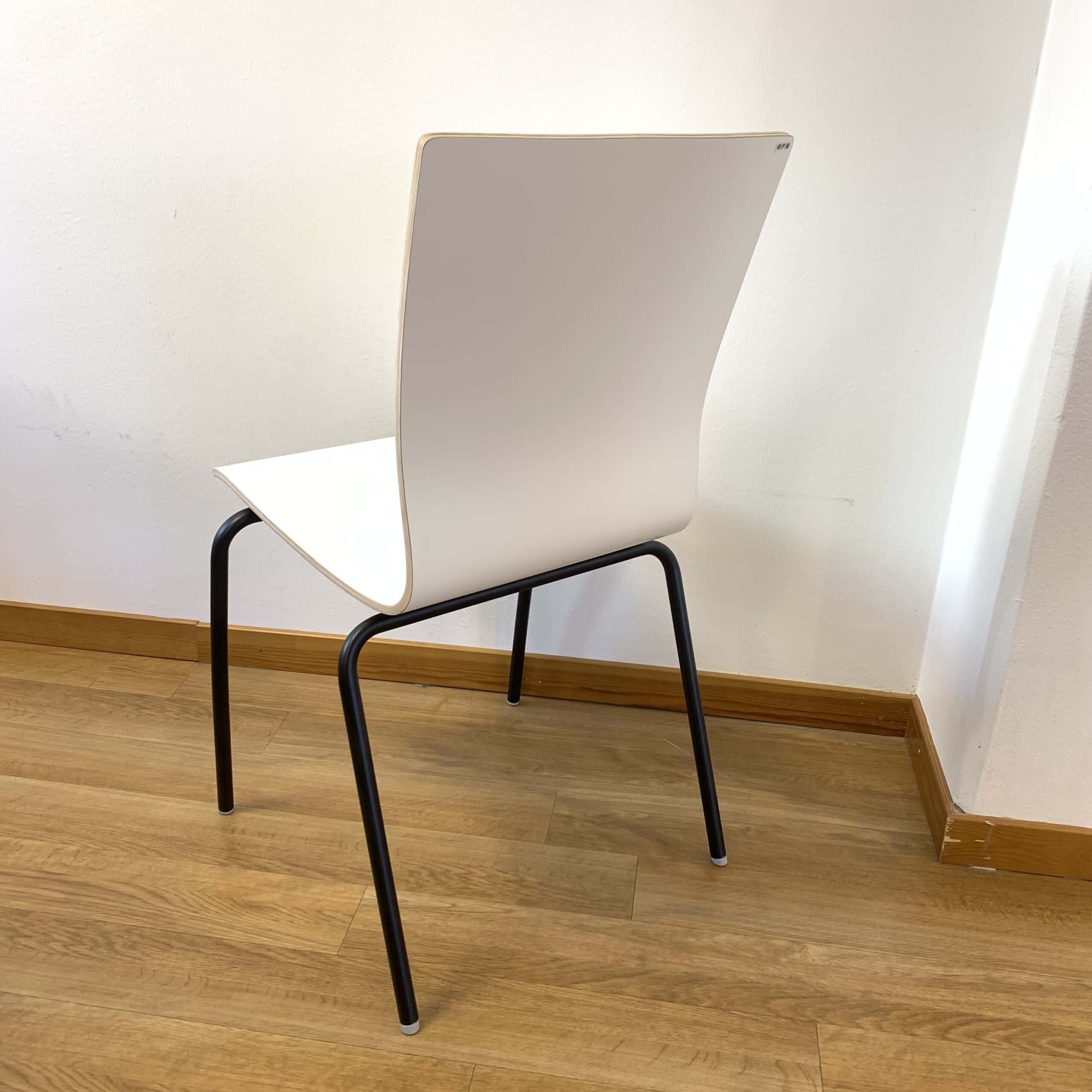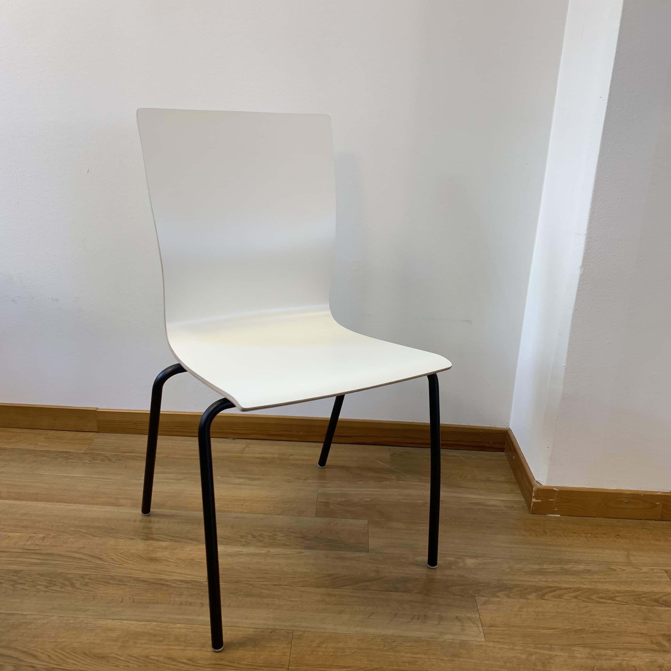 Sæde og ryg i laminat (hvid). 4-bensstel i metal (sort).
