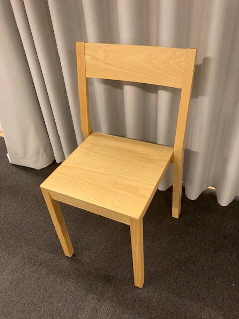 Sæde og ryg i laminat (ask). 4-bensstel i træ (ask).