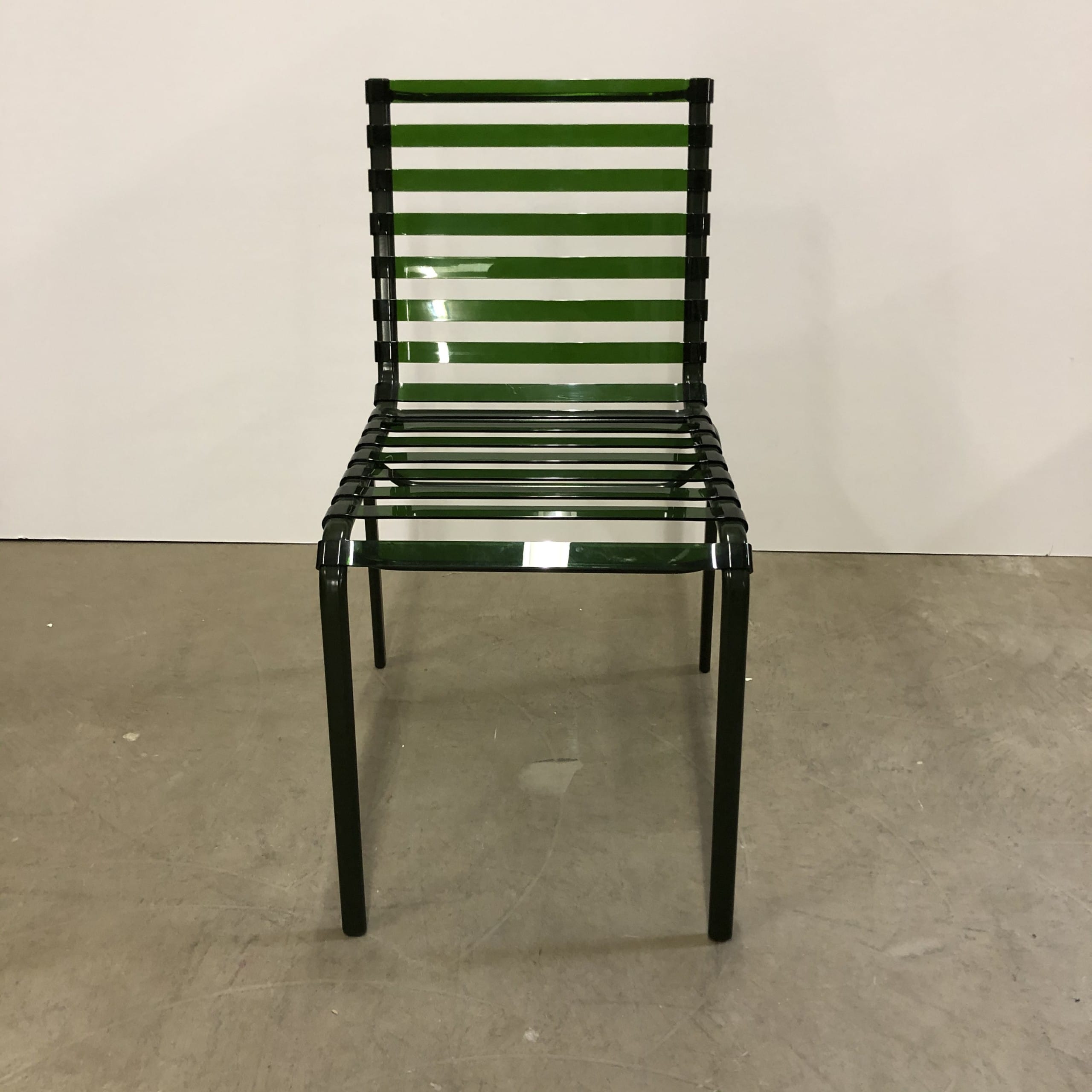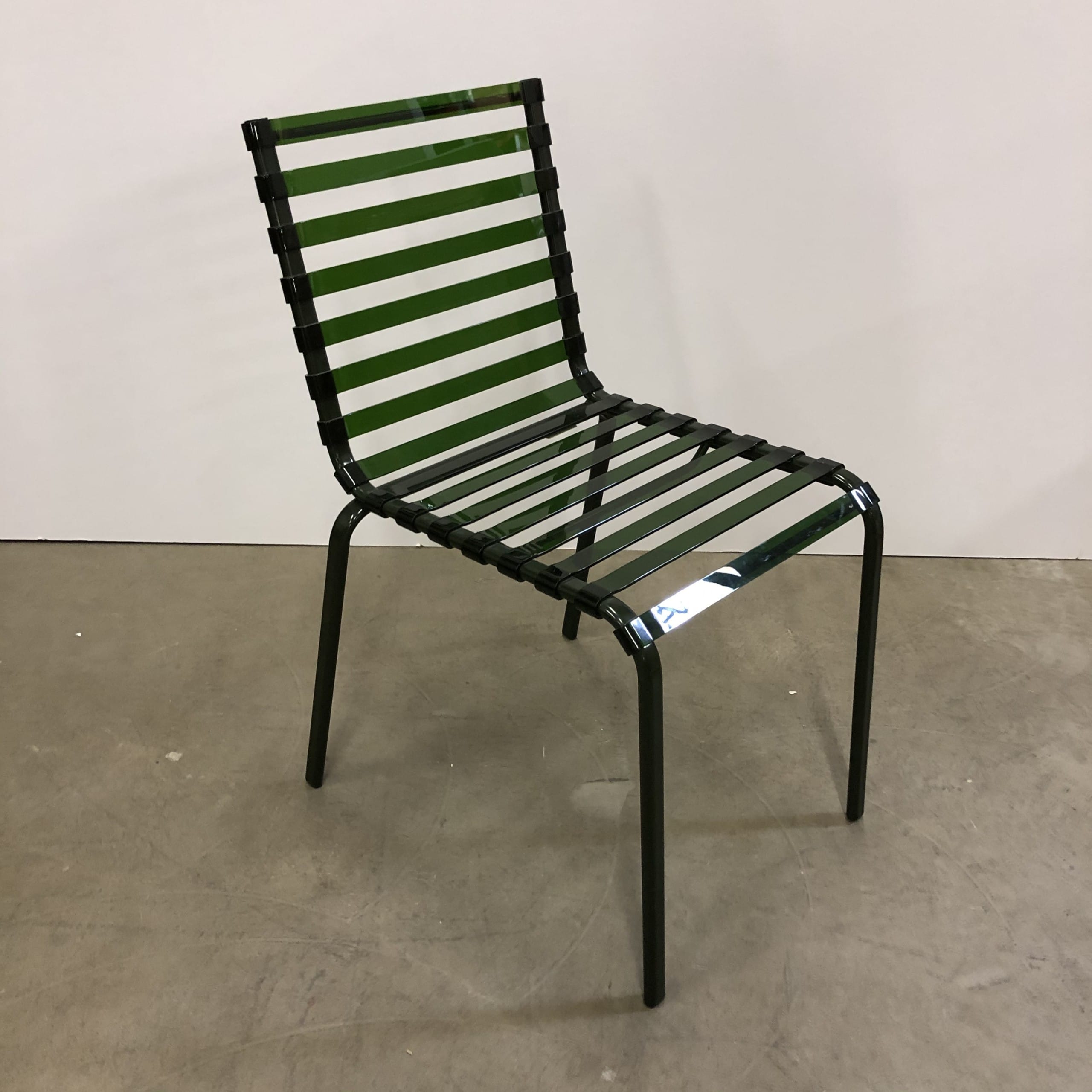 Sæde og ryg i plast (grøn). 4-bensstel i metal (grøn).