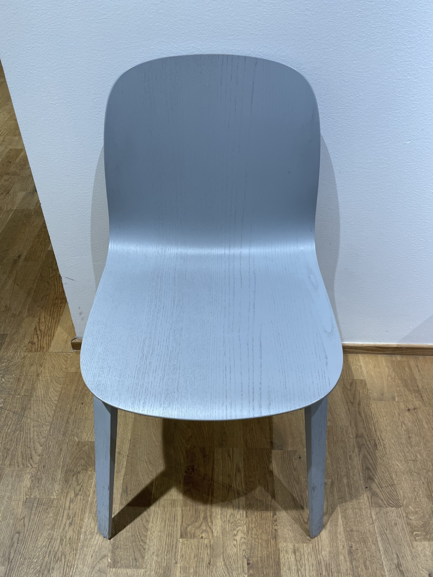 Sæde, ryg og 4-bensstel i træ (grå).