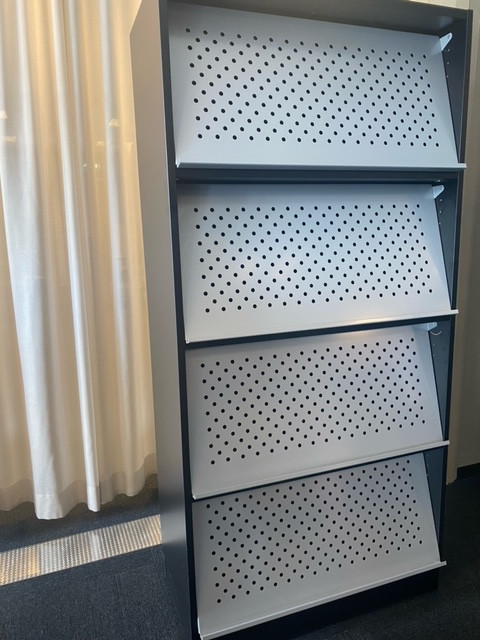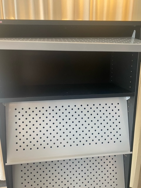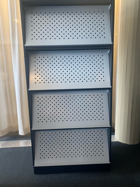 Stamme i laminat (sort). Front i metall (aluminium).