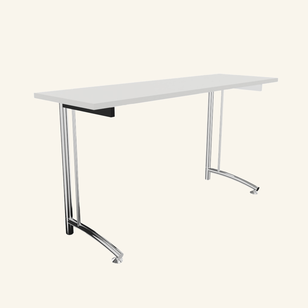 Bordplade i laminat (hvid). Understel i metal (krom).