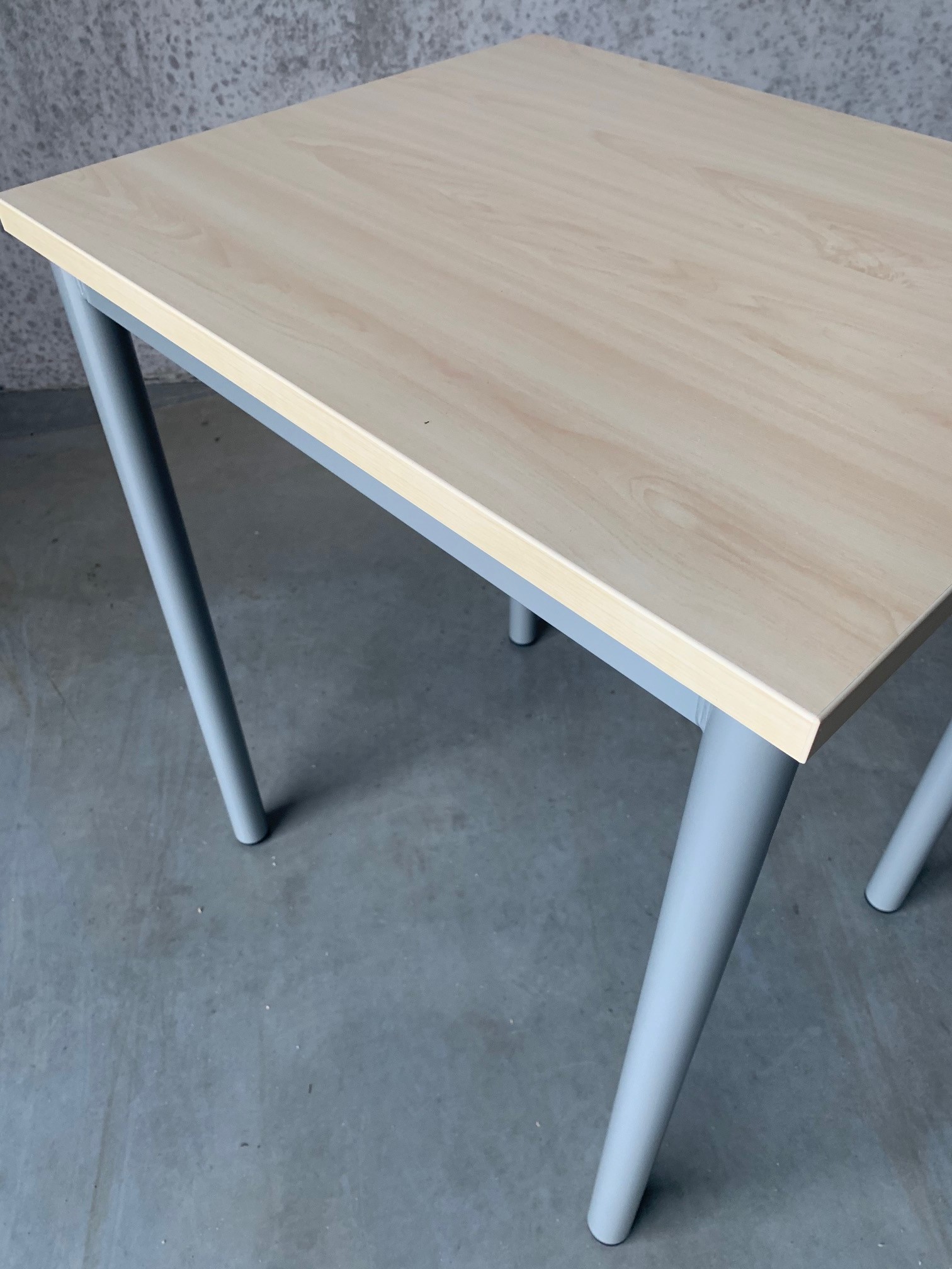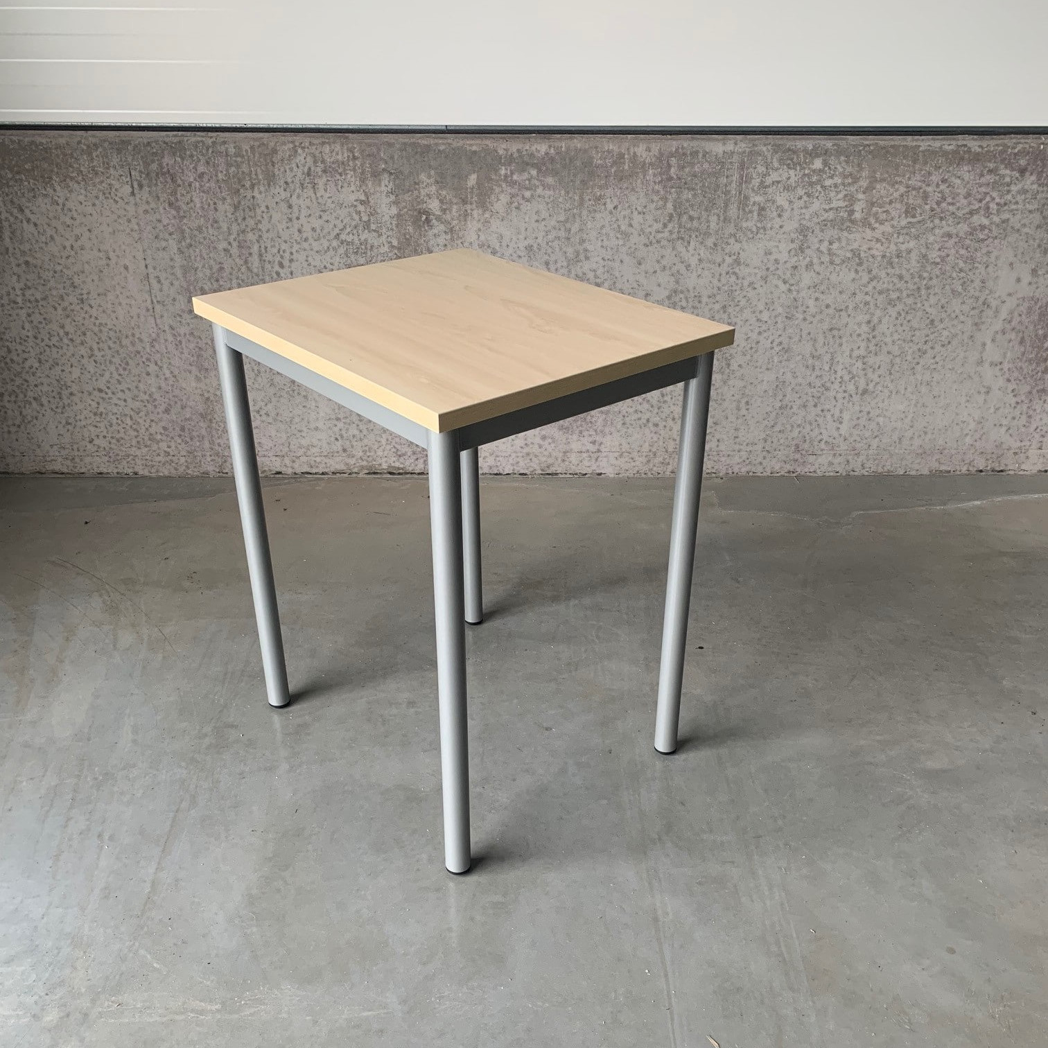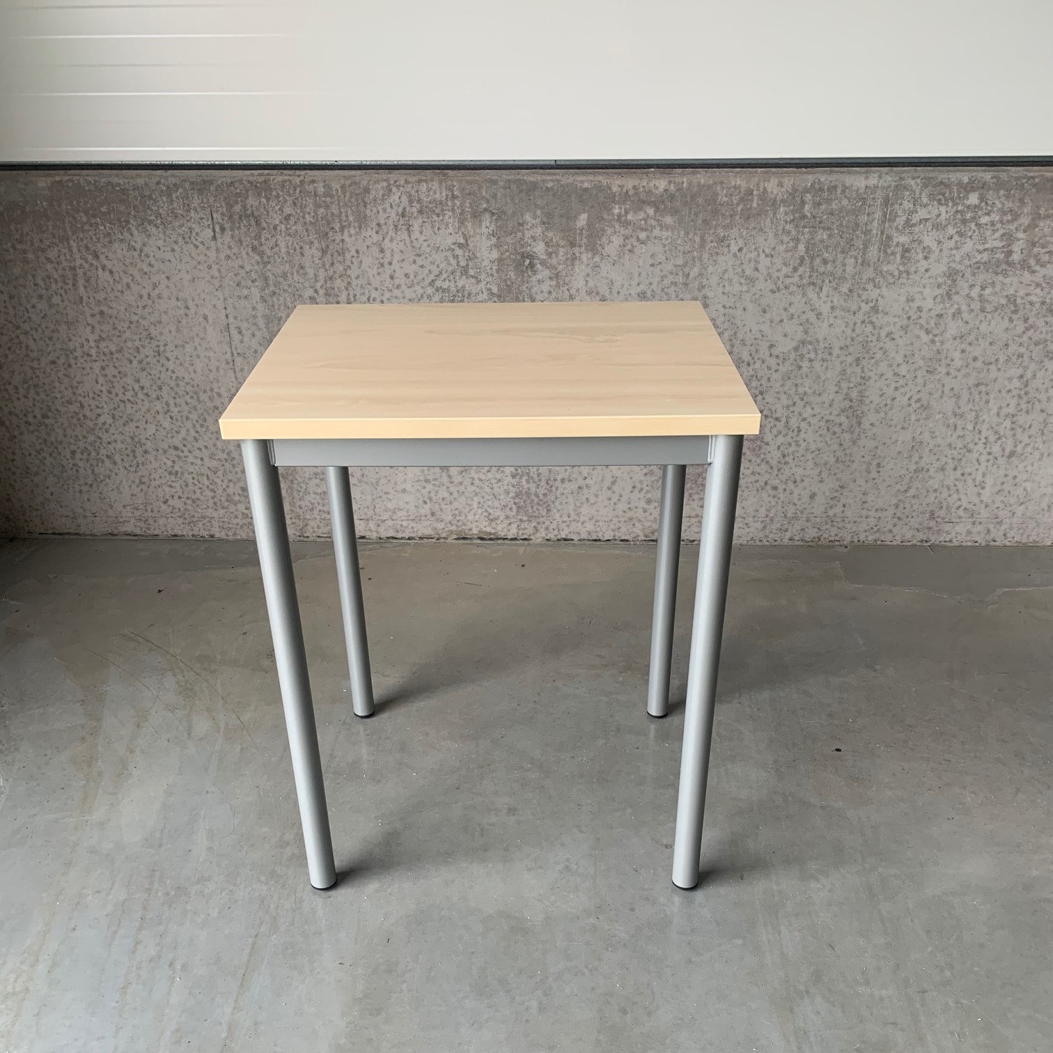 Bordplade i laminat (birk). Understel i metal (sølv).